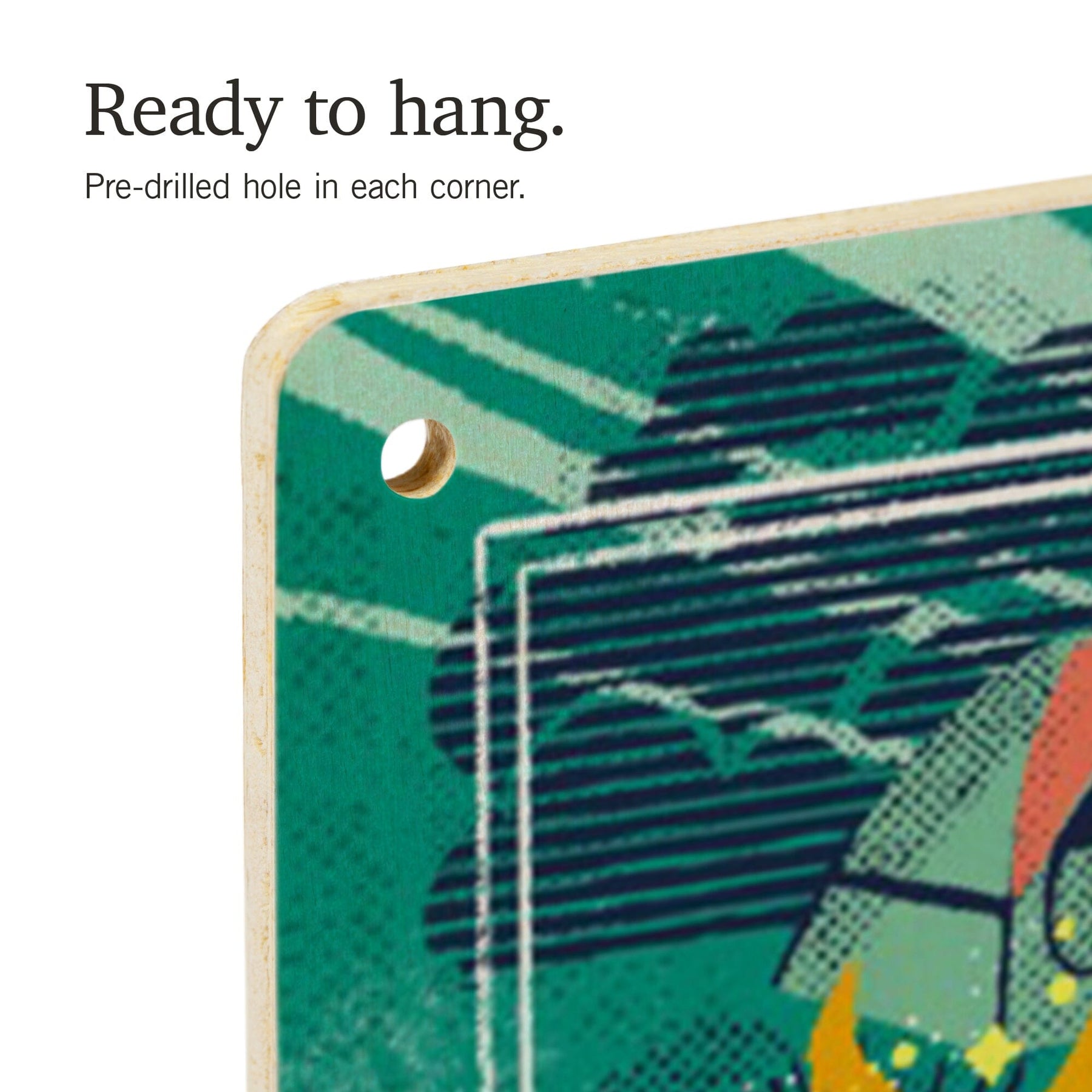 • Hole in each corner, ready to hang