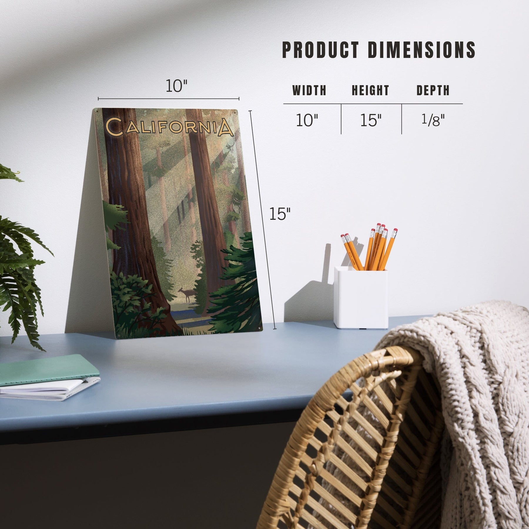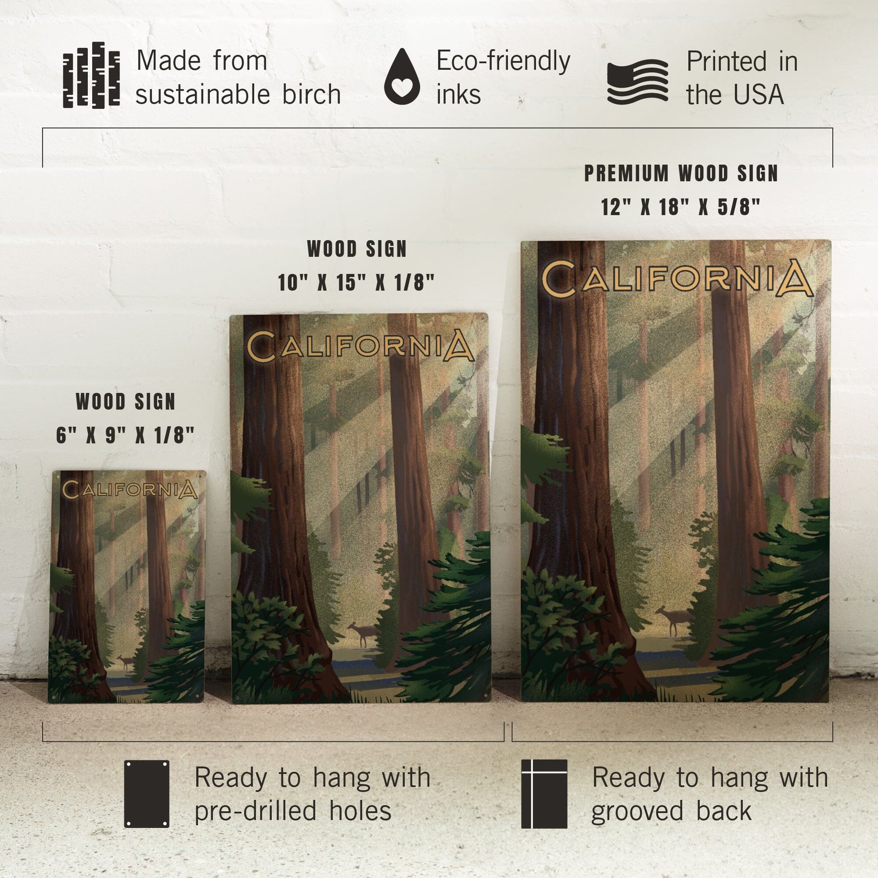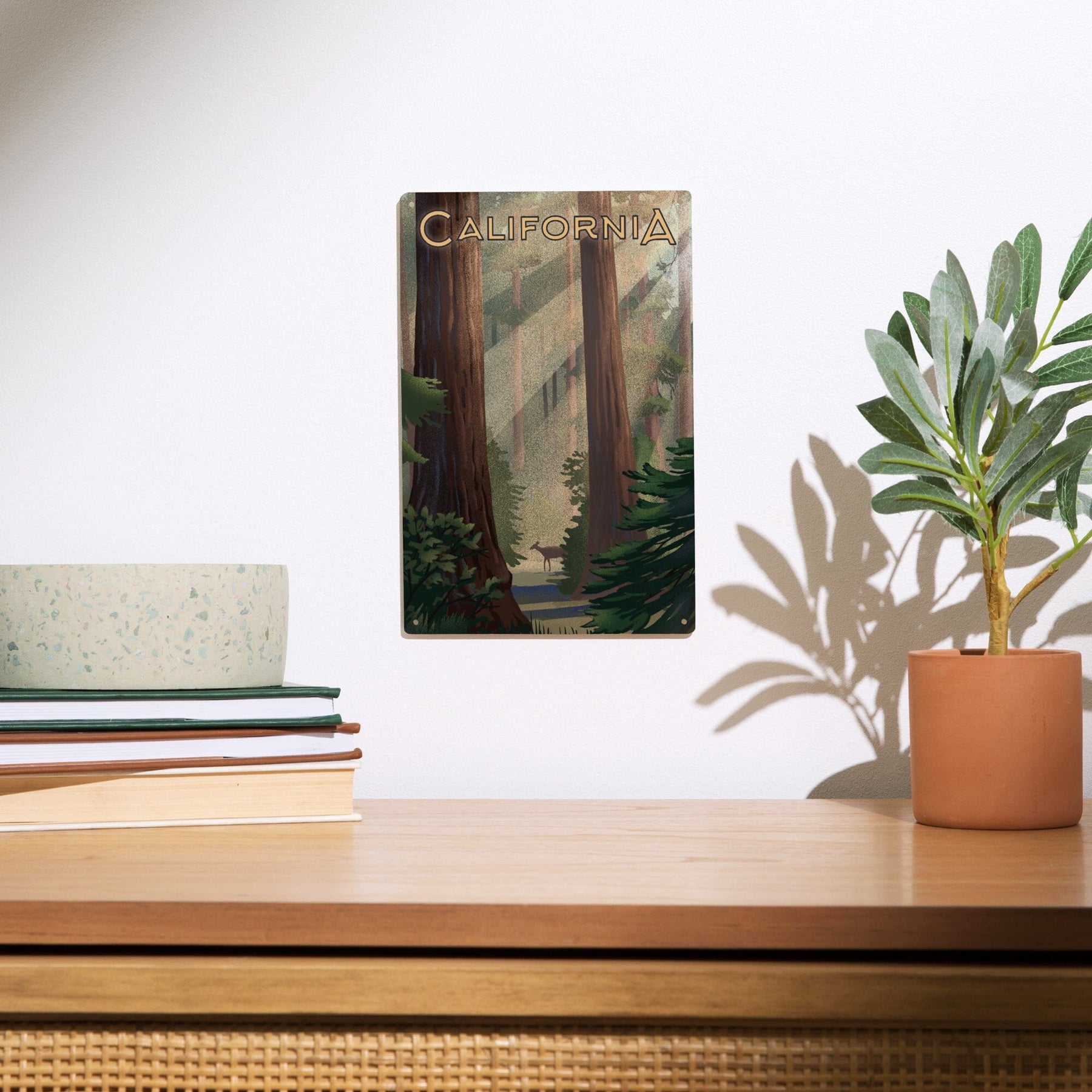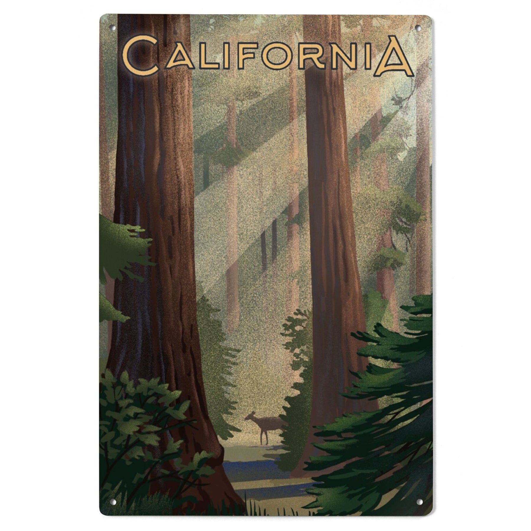 California, Lithograph, Deer in Forest, Wood Signs and Postcards