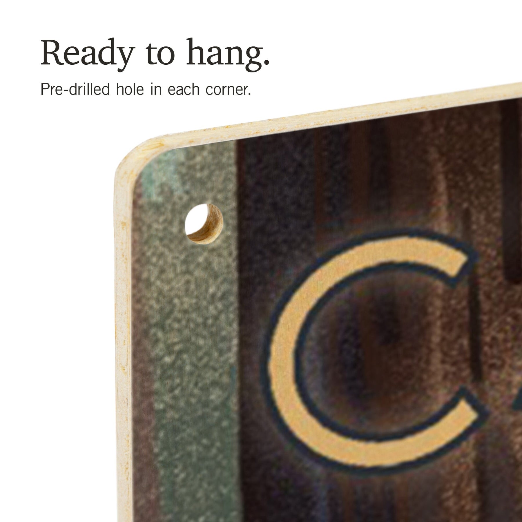 • Hole in each corner, ready to hang