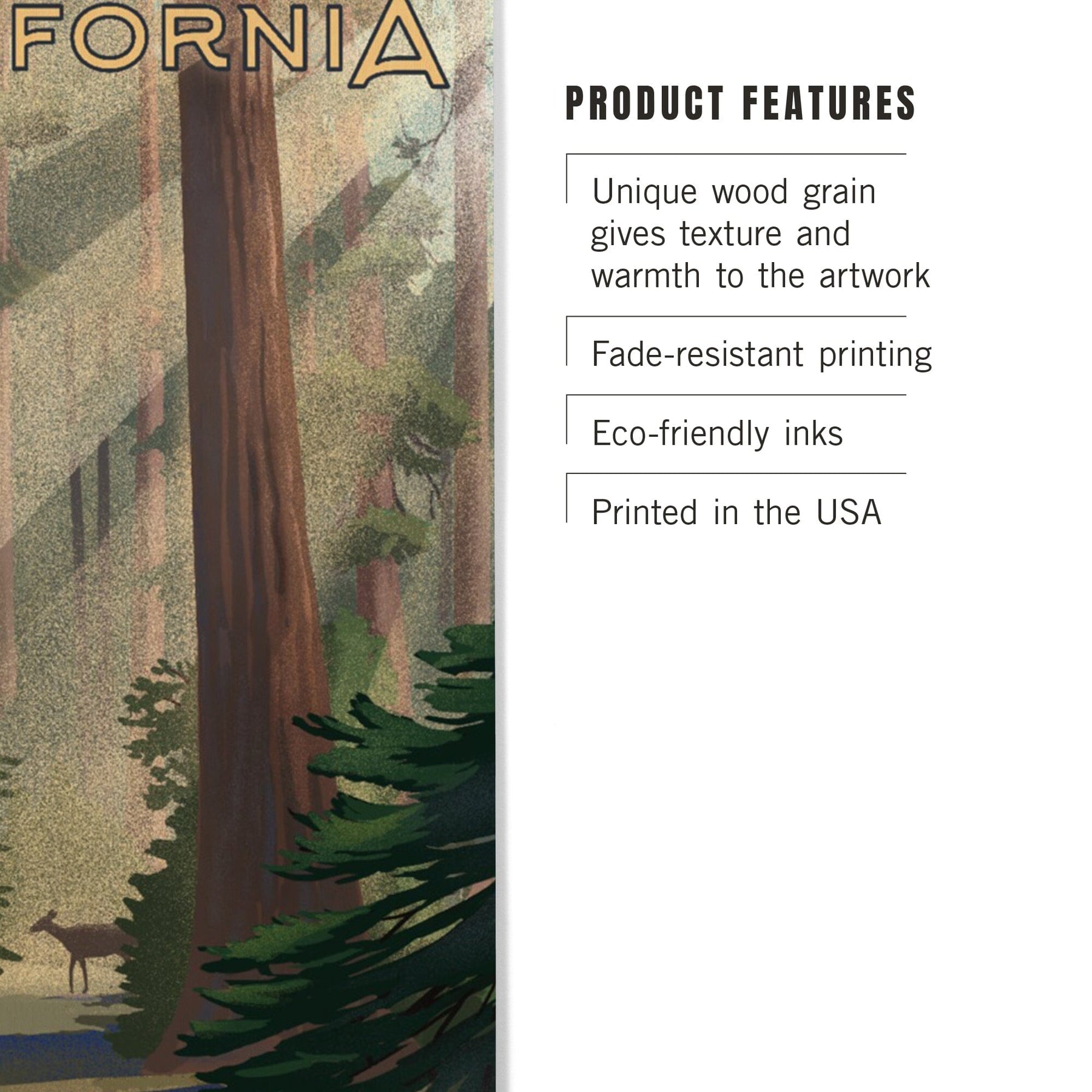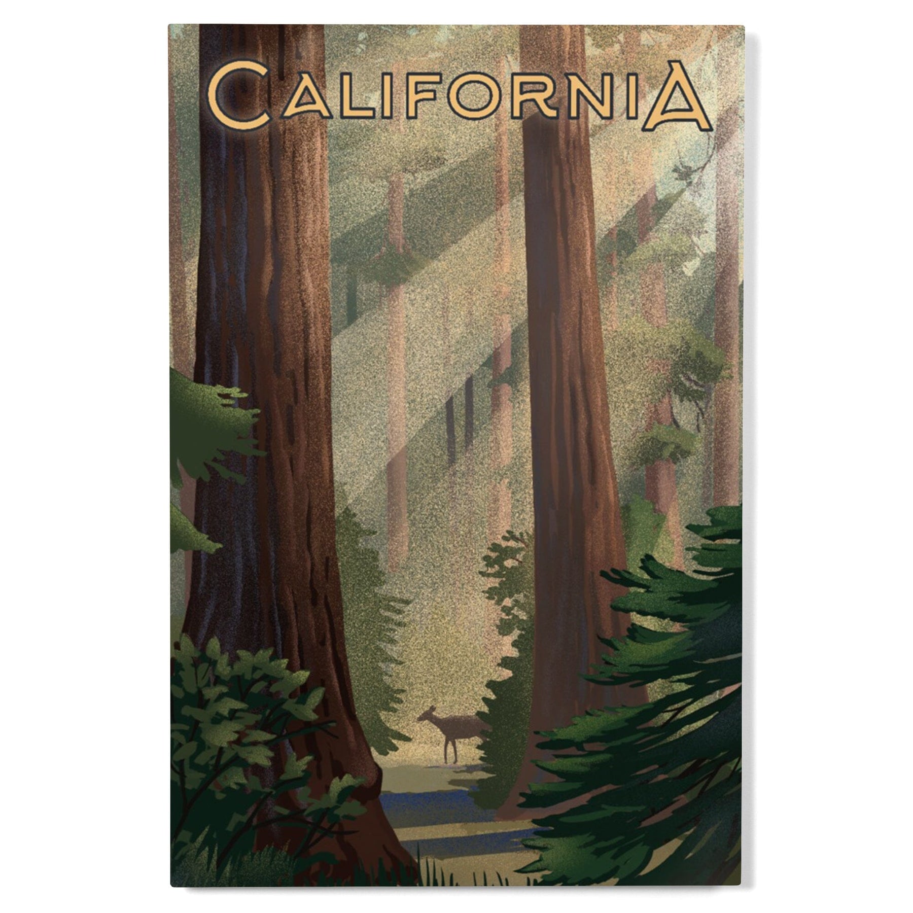 California, Lithograph, Deer in Forest, Wood Signs and Postcards Wood Lantern Press