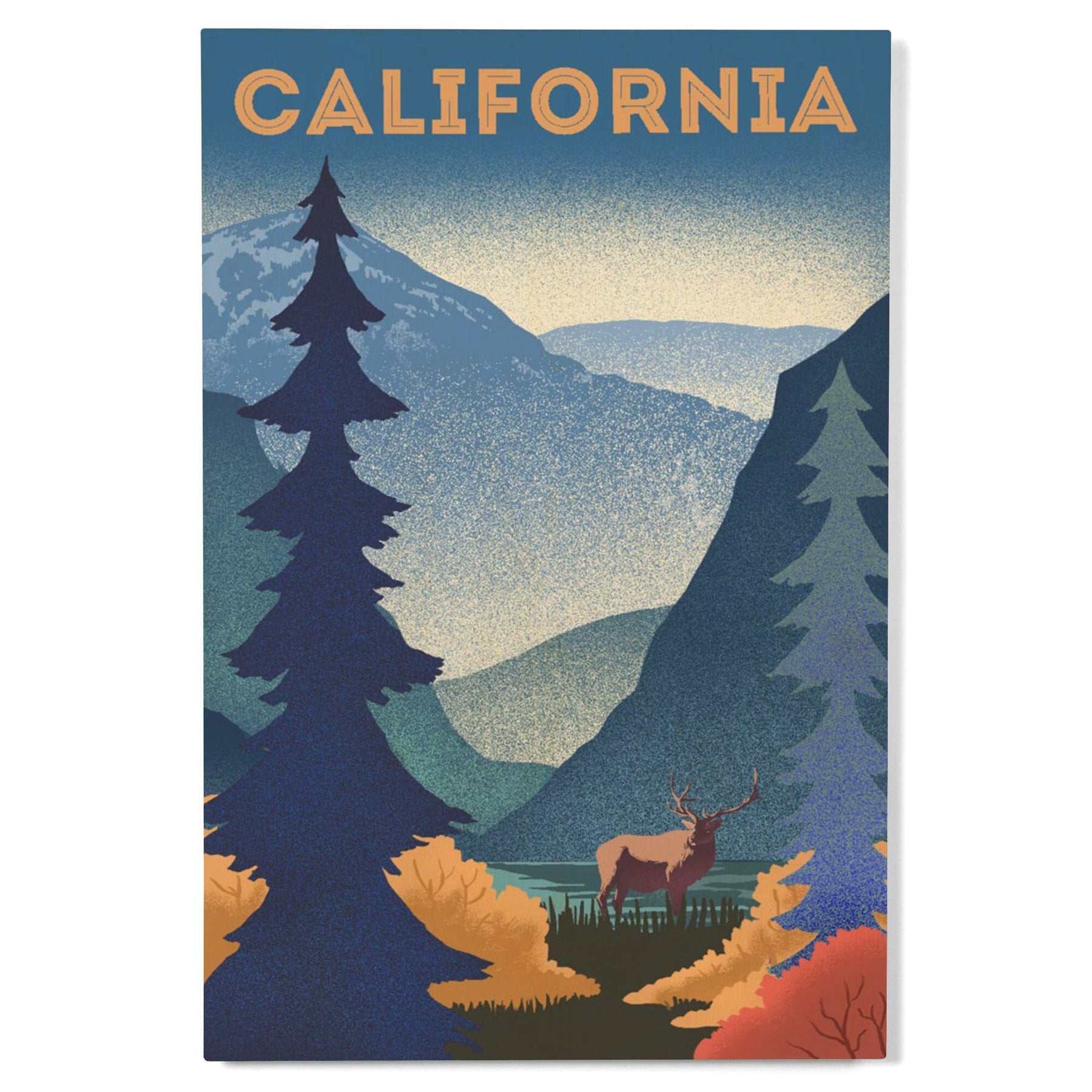 California, Lithograph, Elk and Mountain Scene, Wood Signs and Postcards Wood Lantern Press