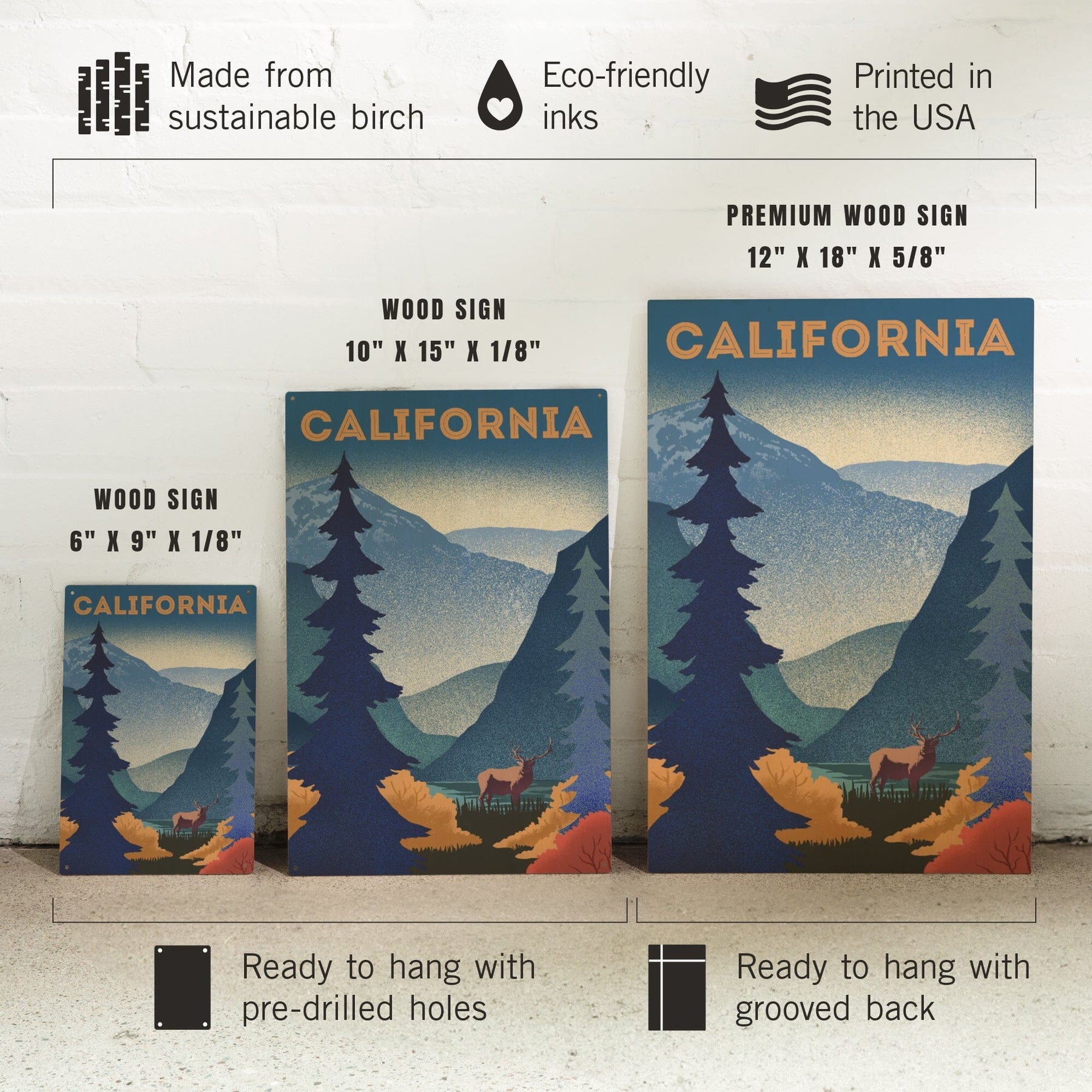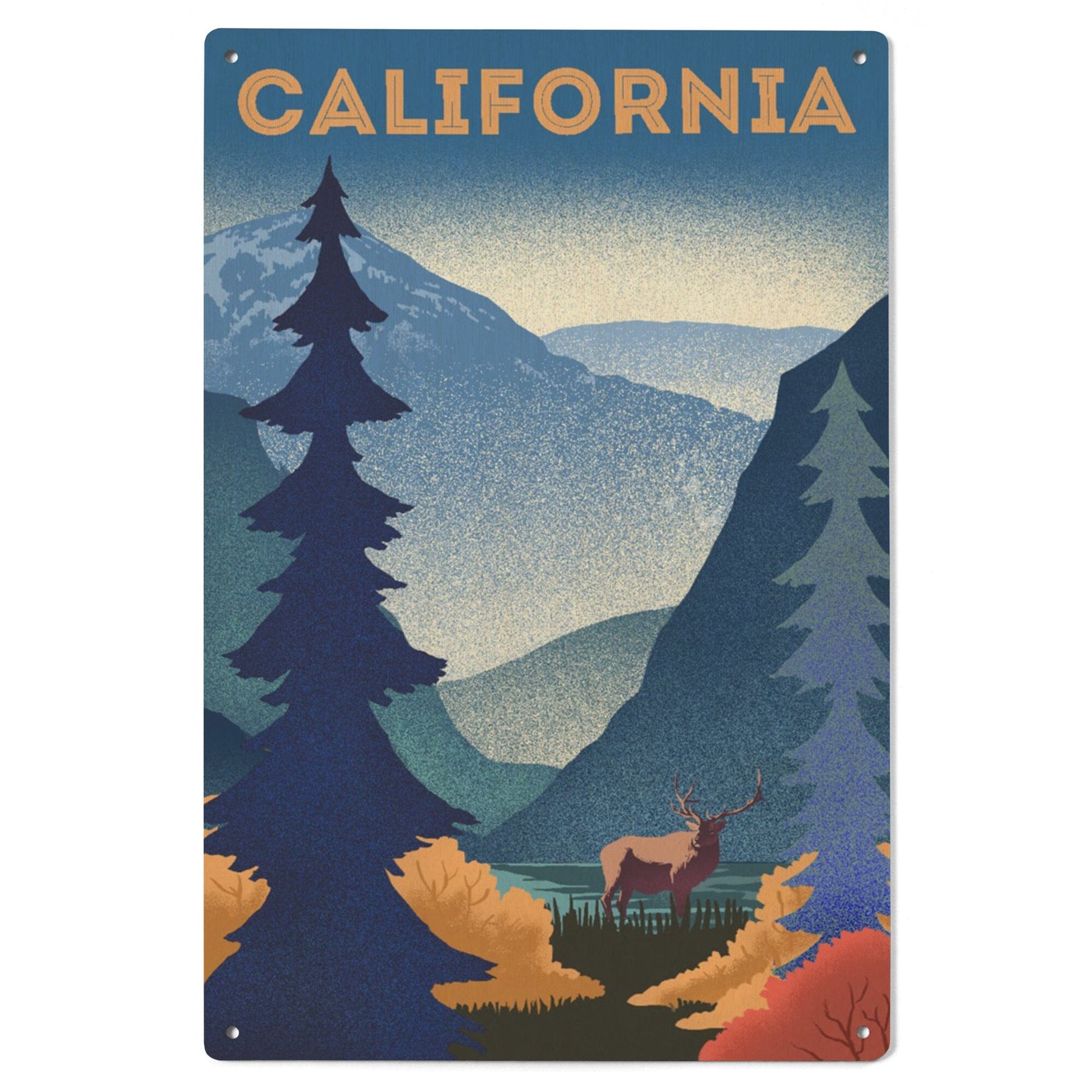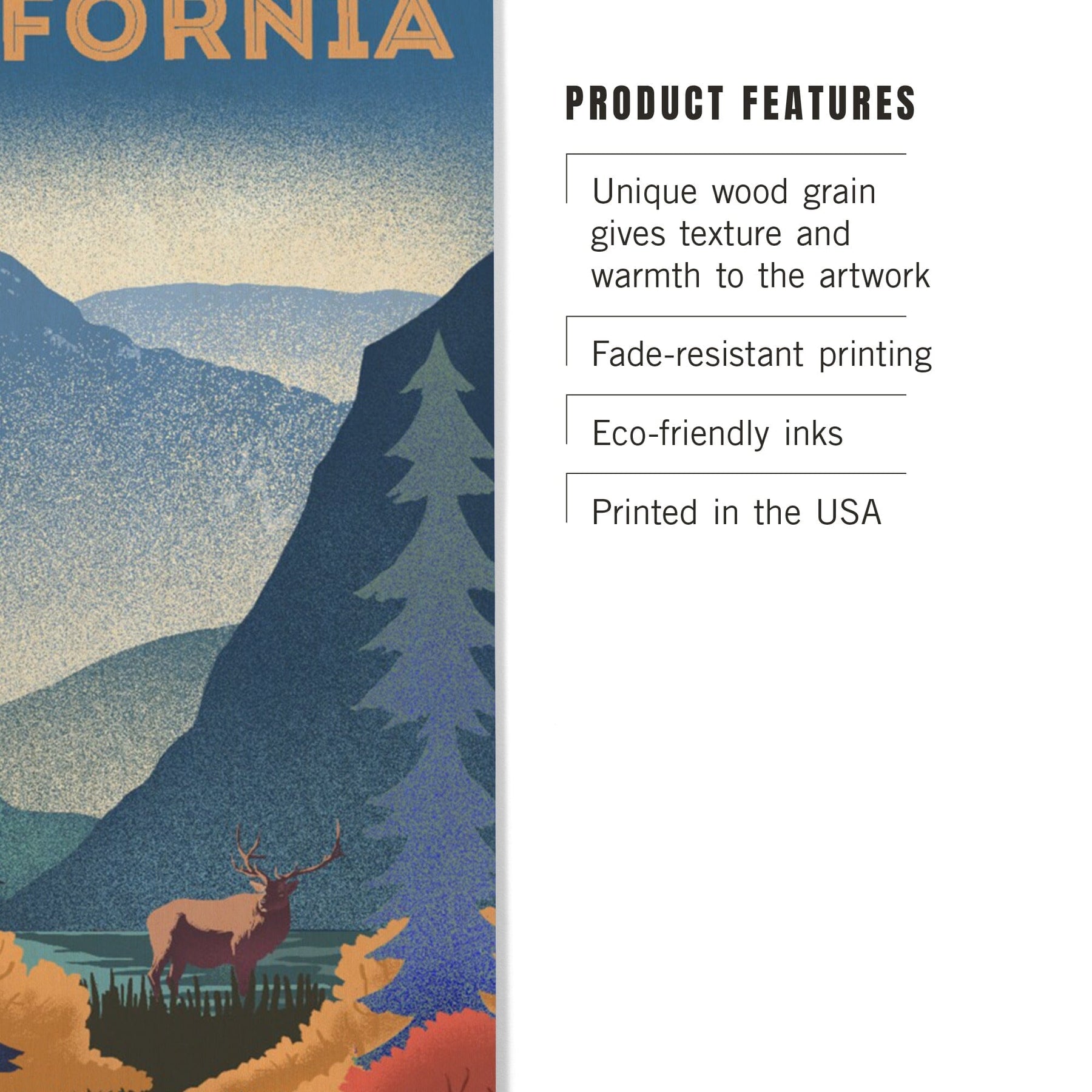 California, Lithograph, Elk and Mountain Scene, Wood Signs and Postcards