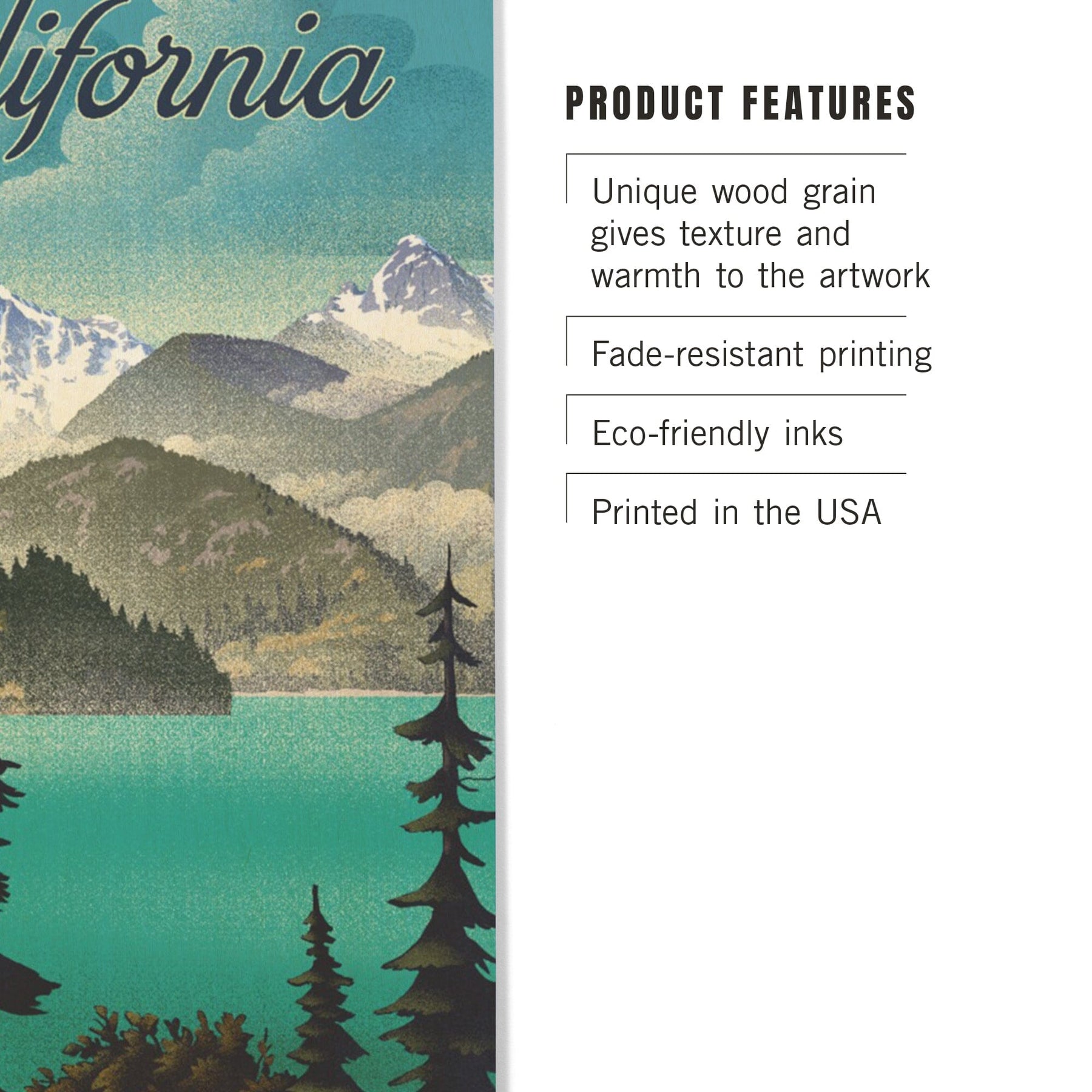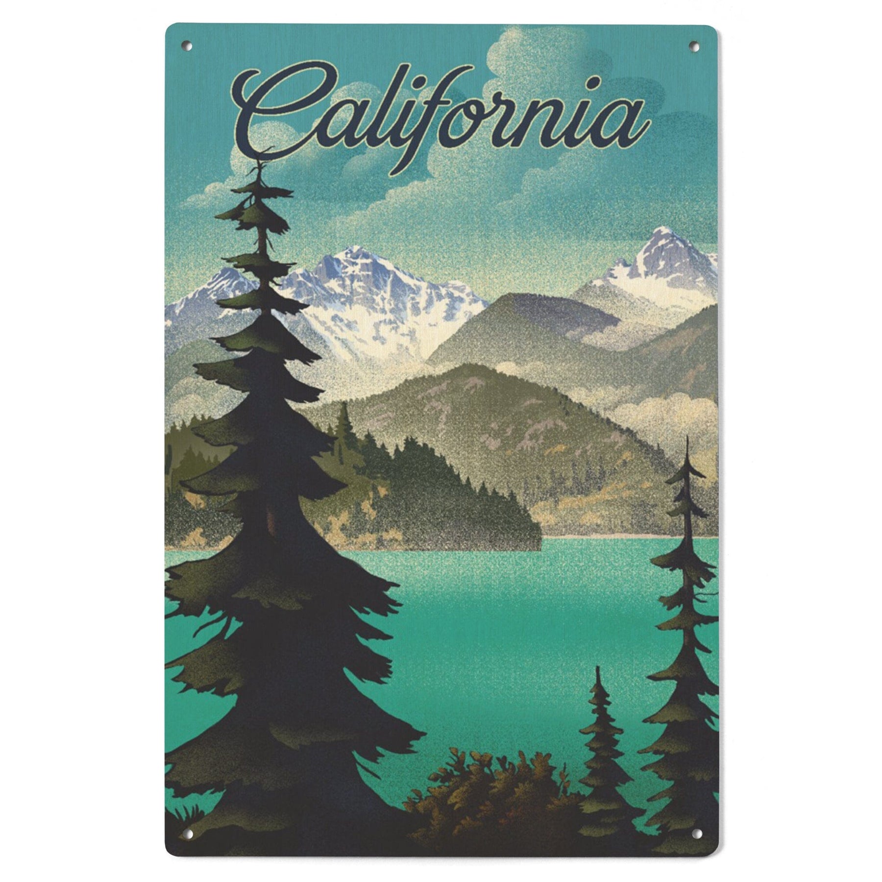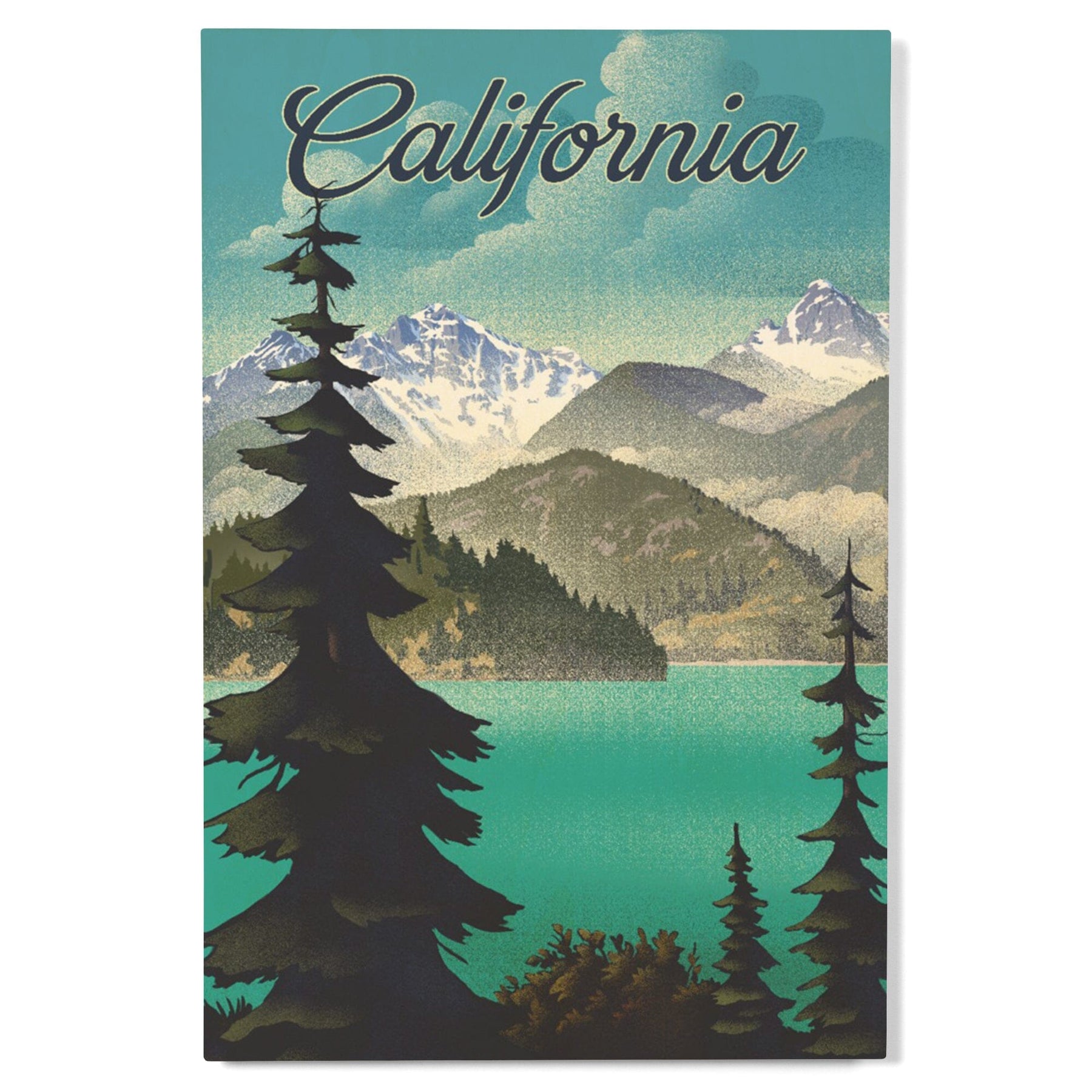 California, Lithograph, Lake and Mountains Scene, Wood Signs and Postcards Wood Lantern Press