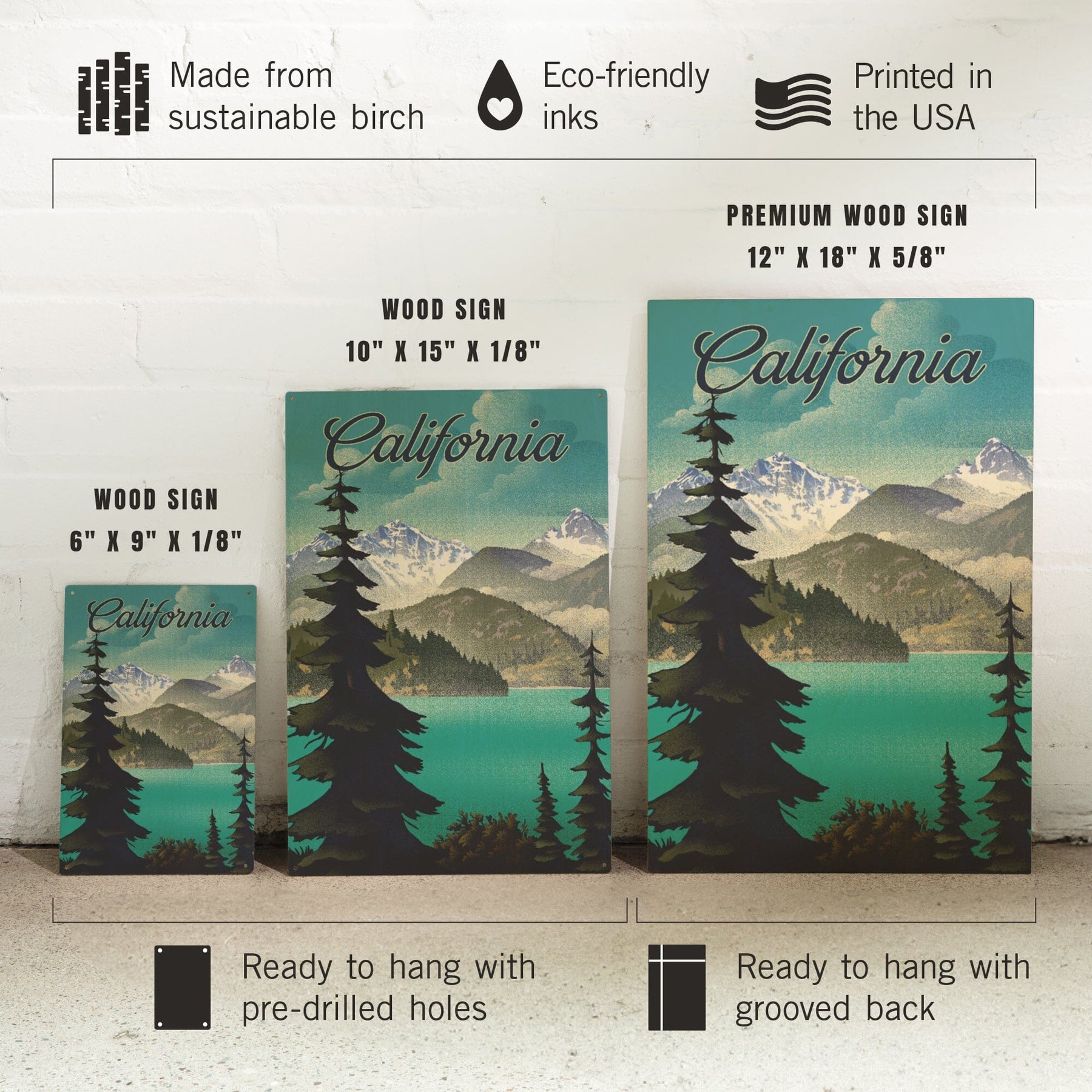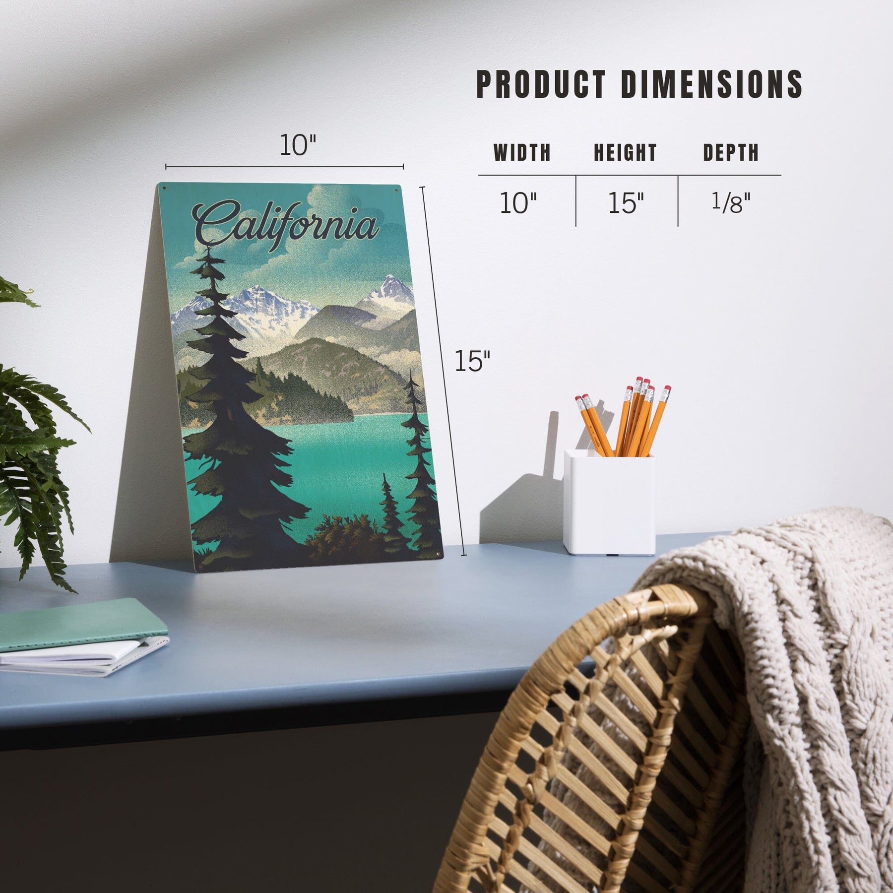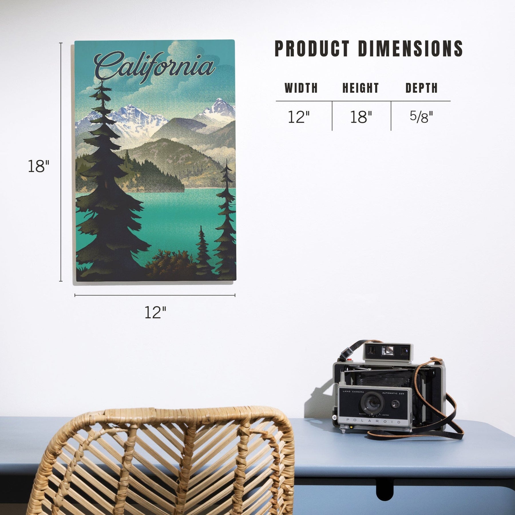 California, Lithograph, Lake and Mountains Scene, Wood Signs and Postcards Wood Lantern Press