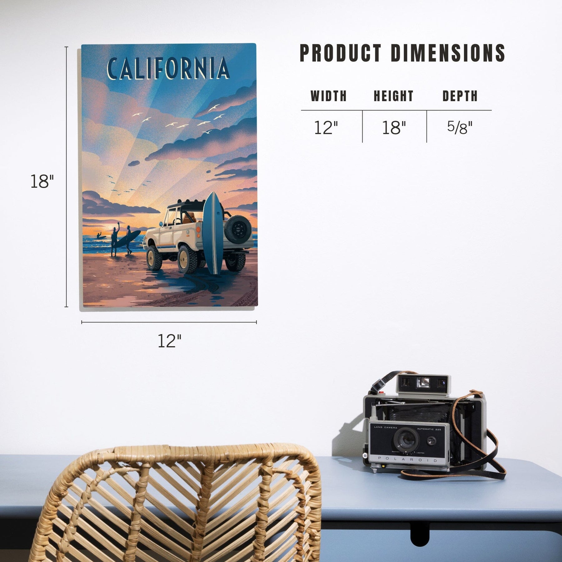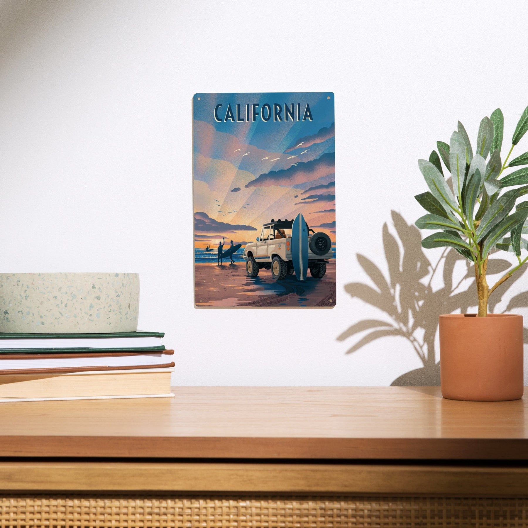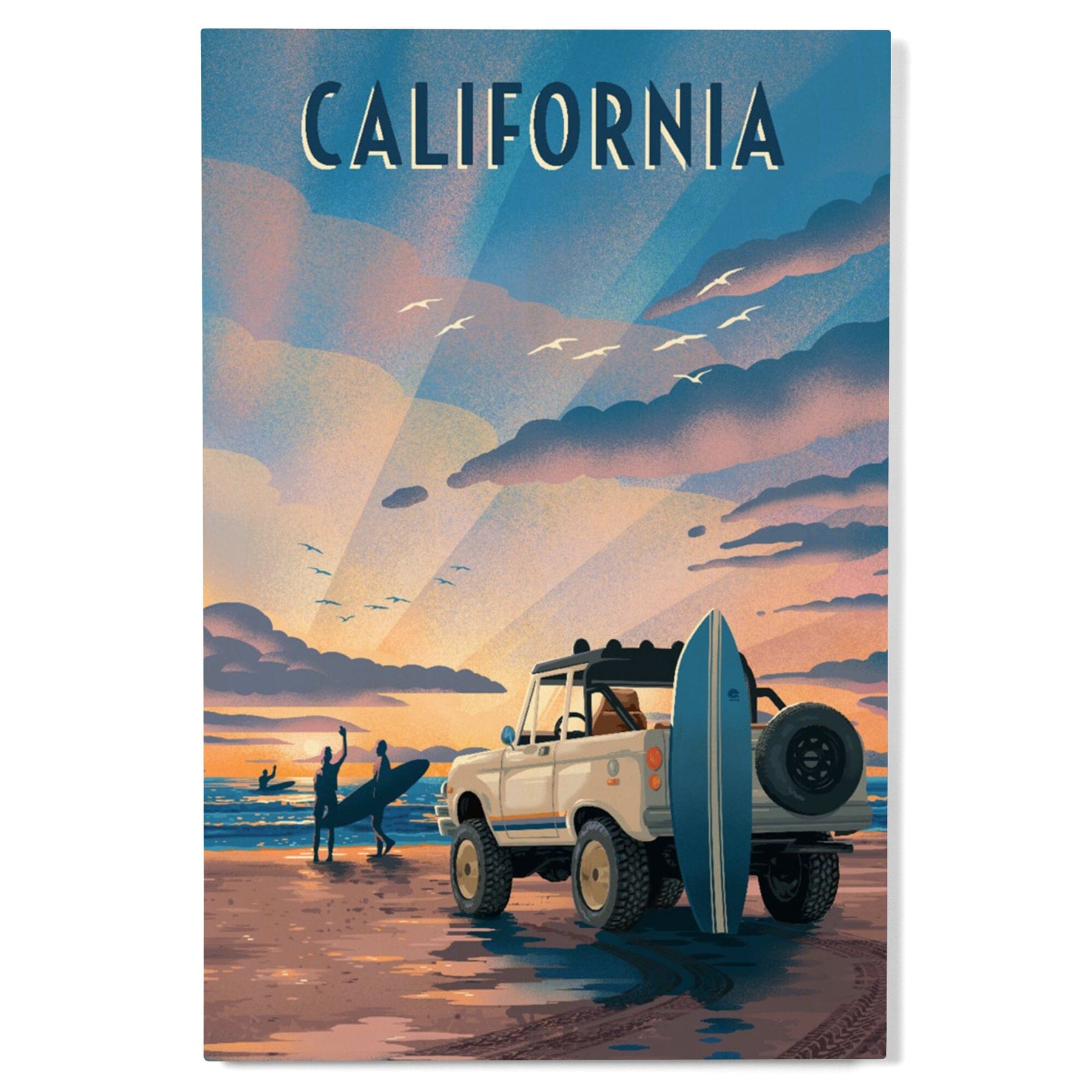 California, Lithograph, Wake Up, Surf's Up, Surfers on Beach, Wood Signs and Postcards Wood Lantern Press