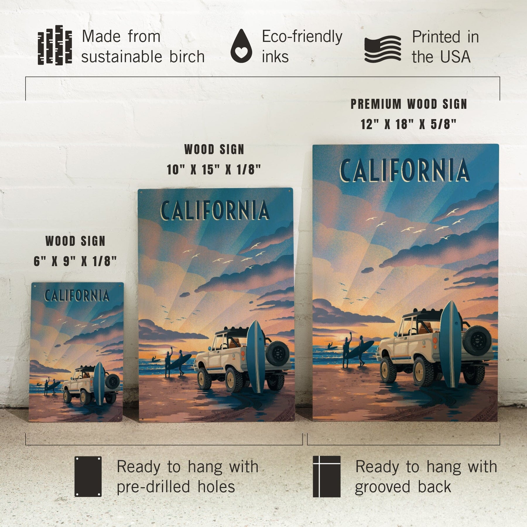 California, Lithograph, Wake Up, Surf's Up, Surfers on Beach, Wood Signs and Postcards