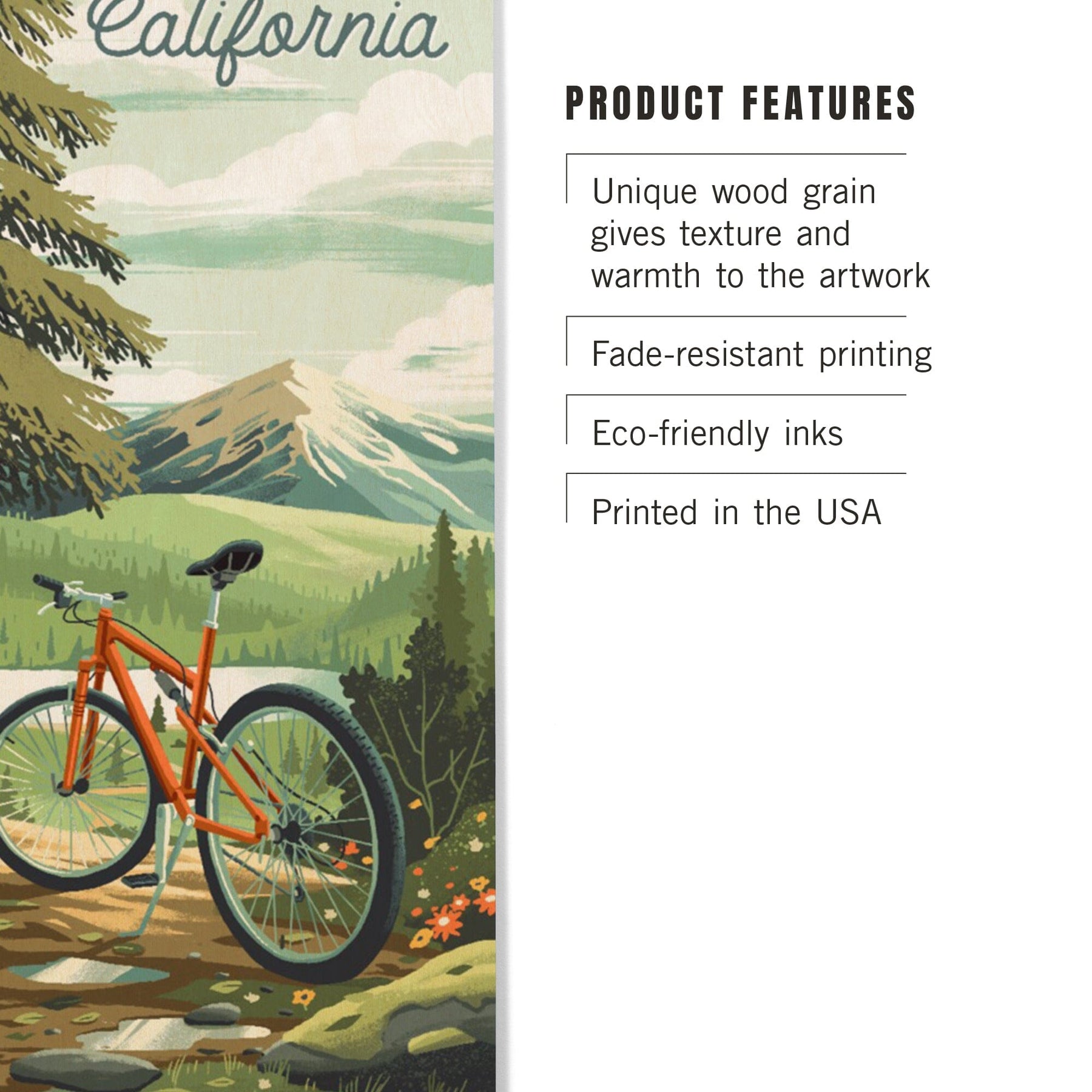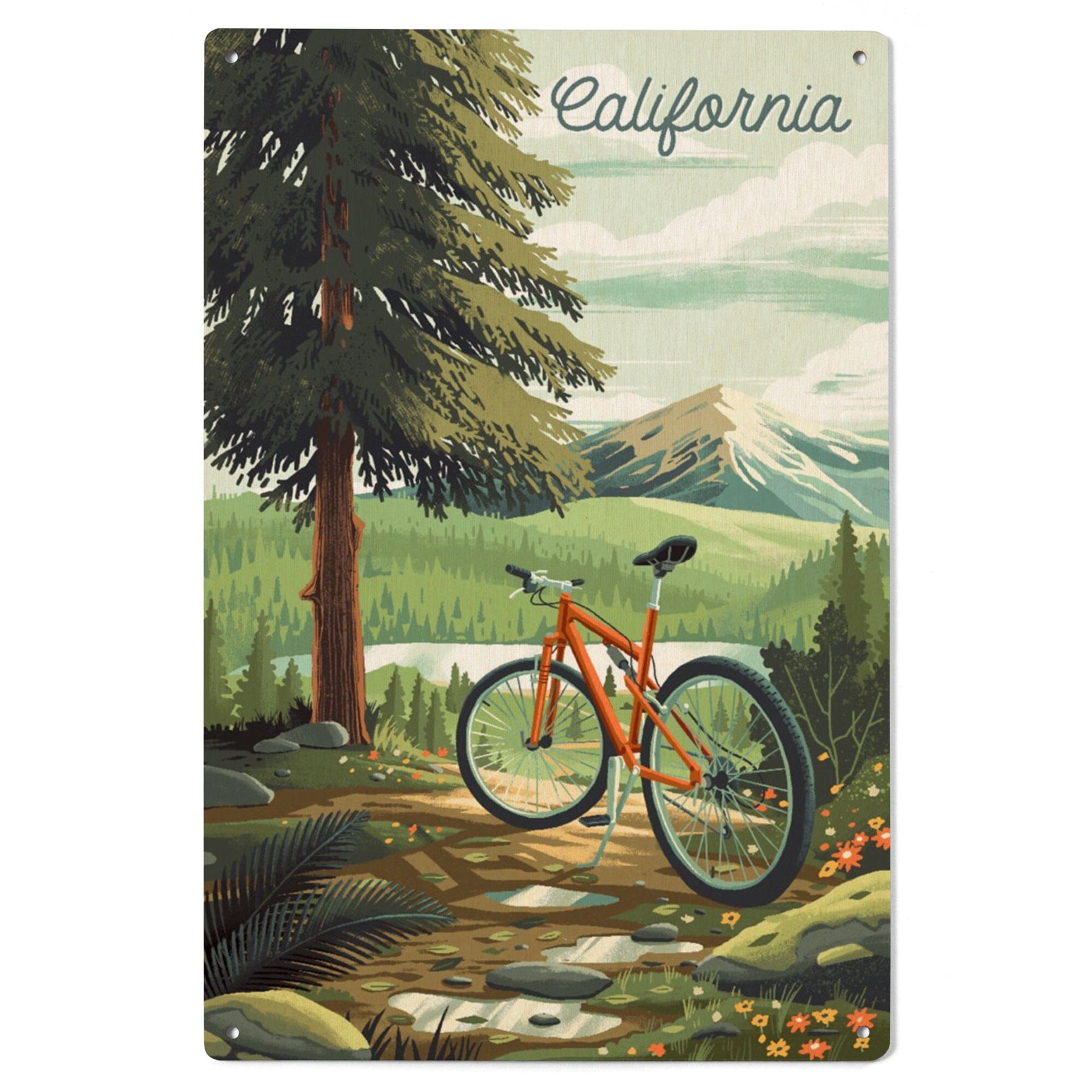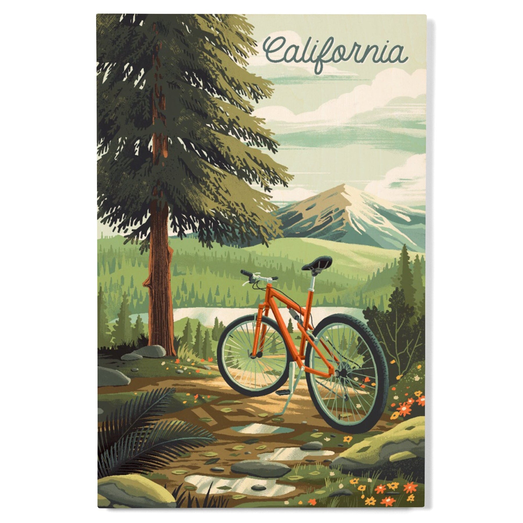 California, Off To Wonder, Cycling with Mountains, Wood Signs and Postcards Wood Lantern Press
