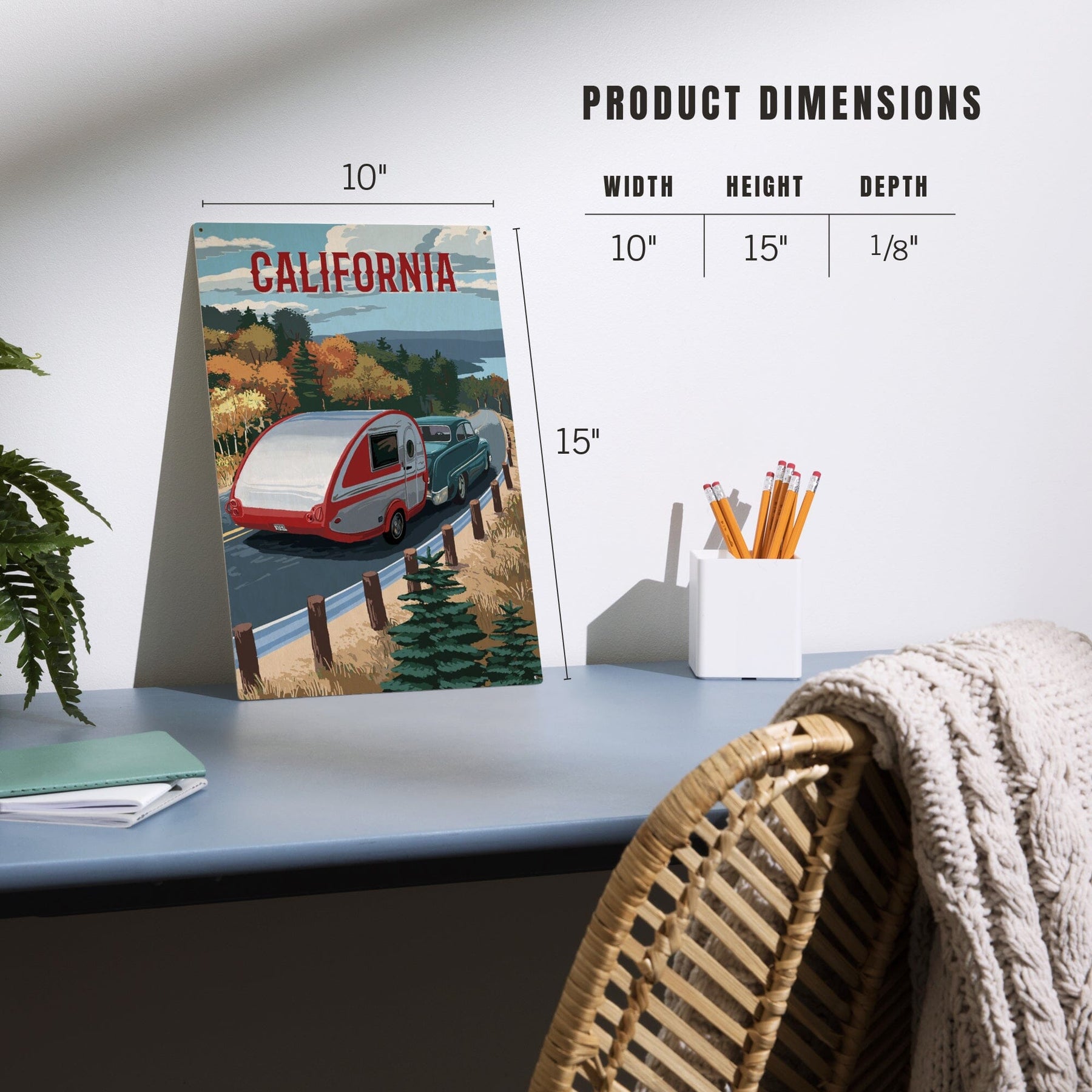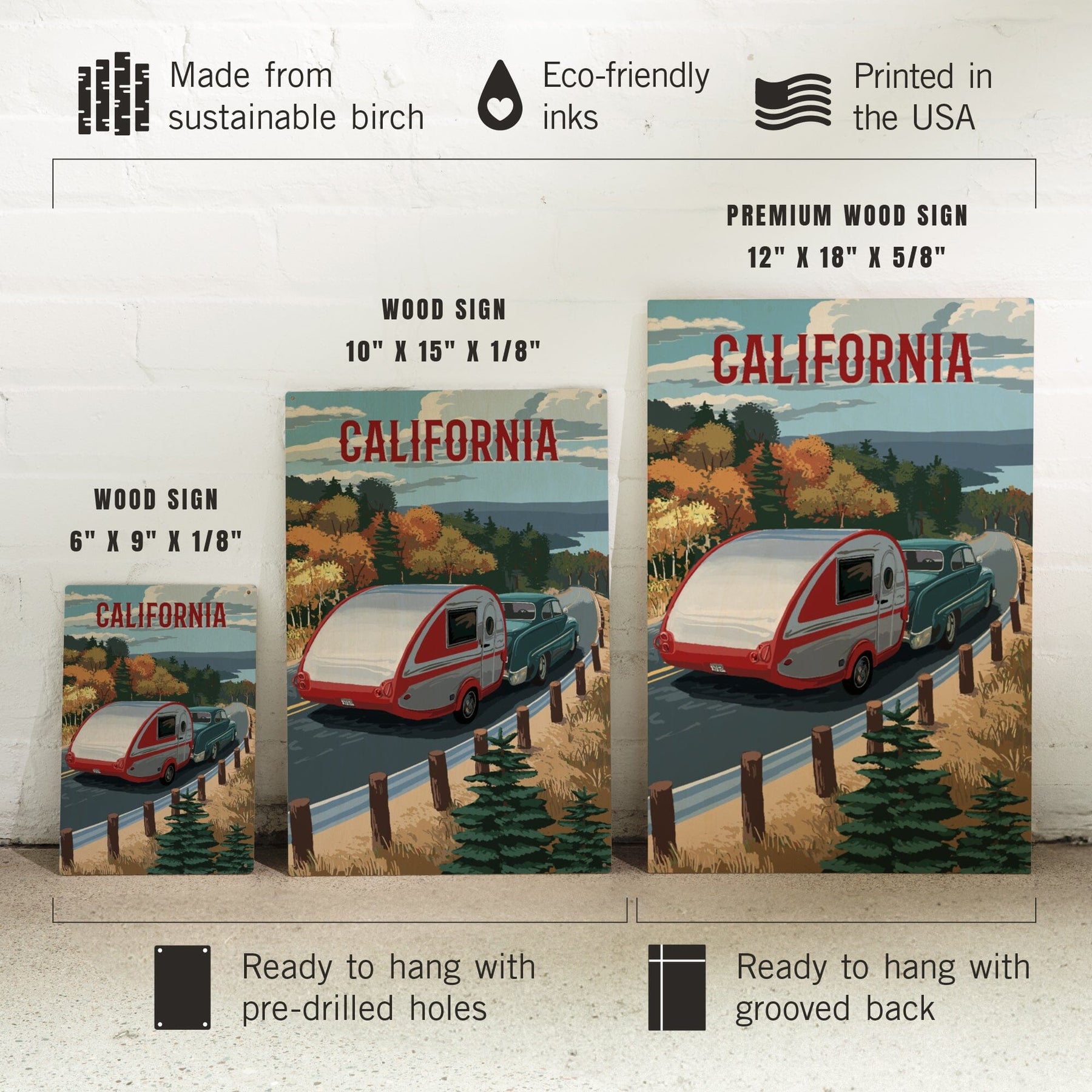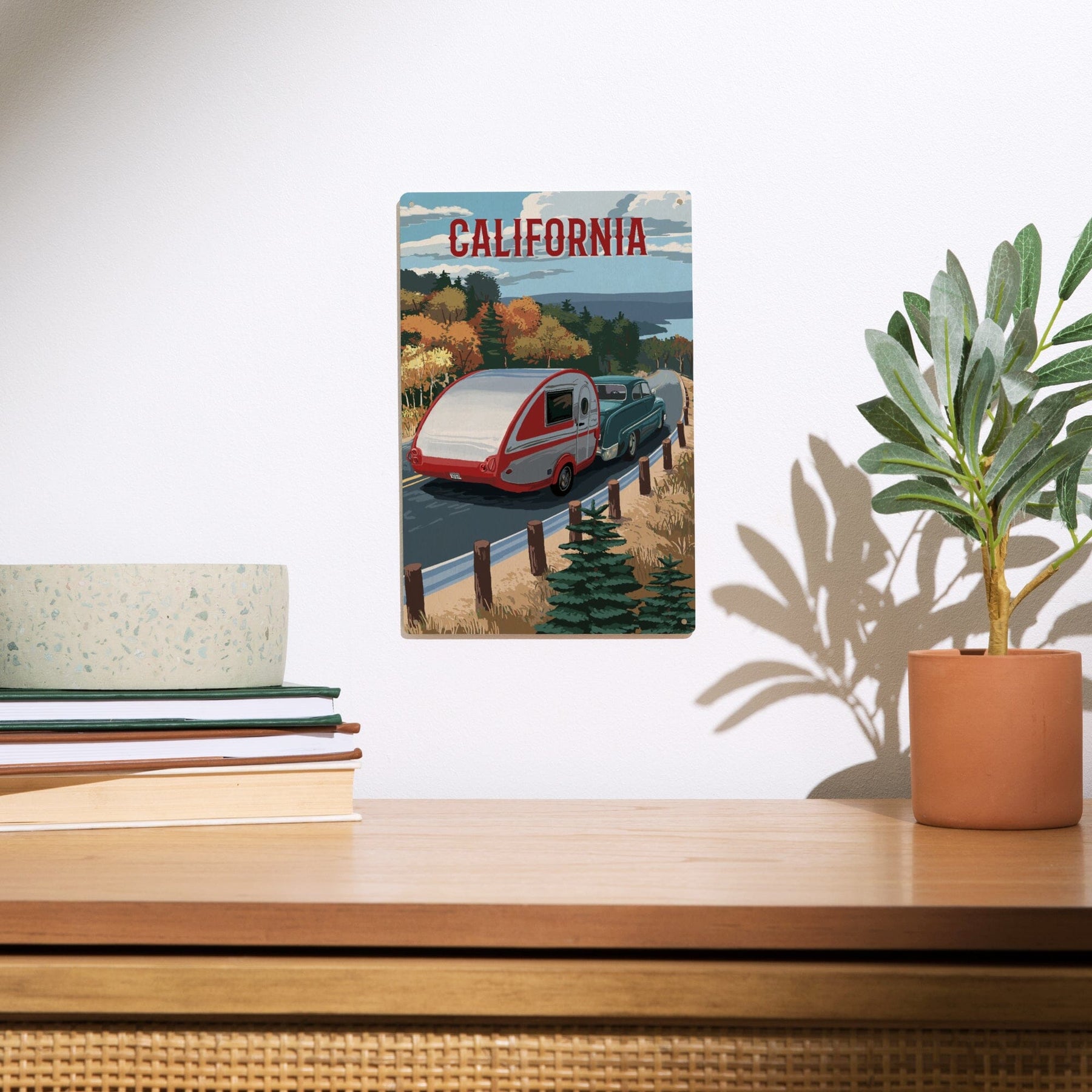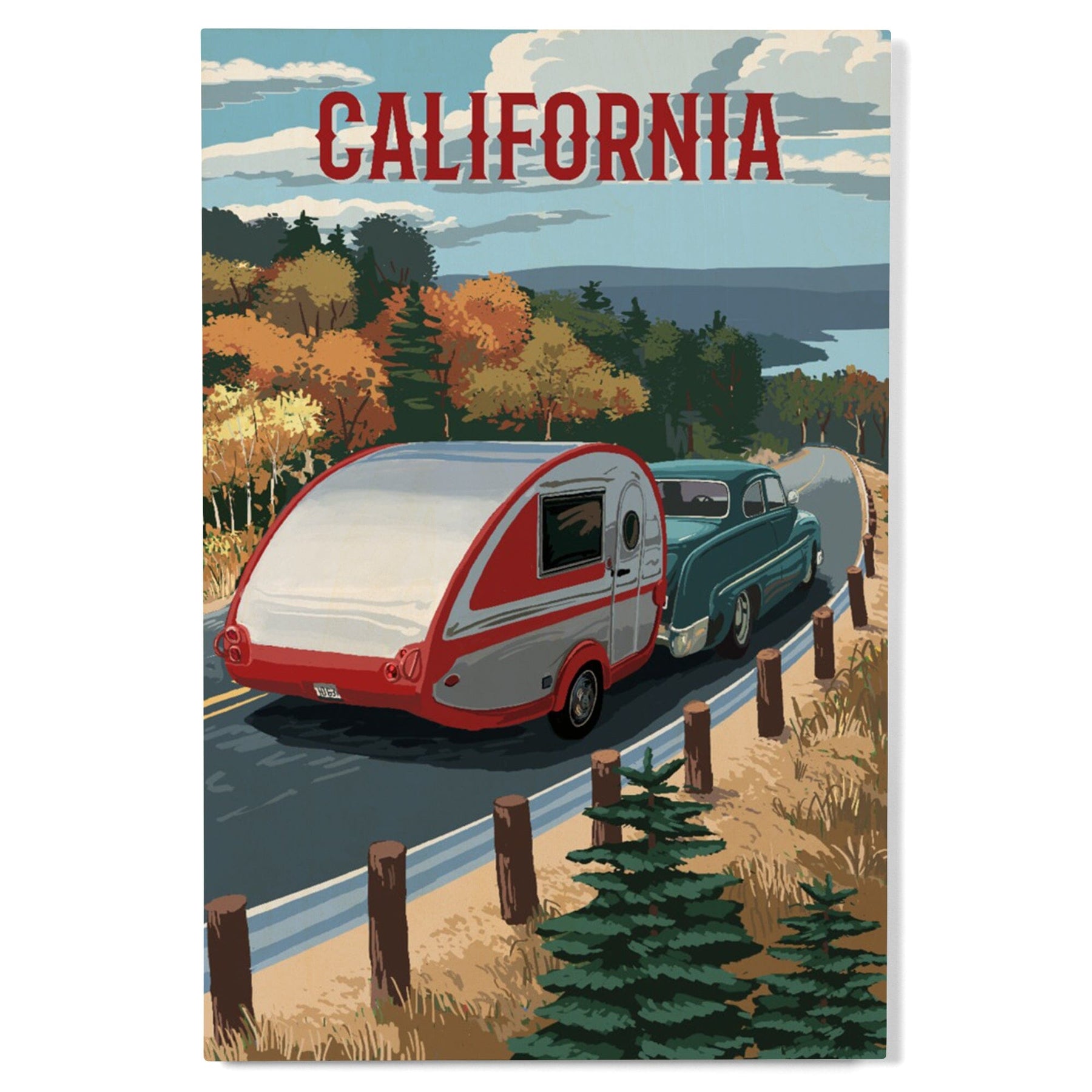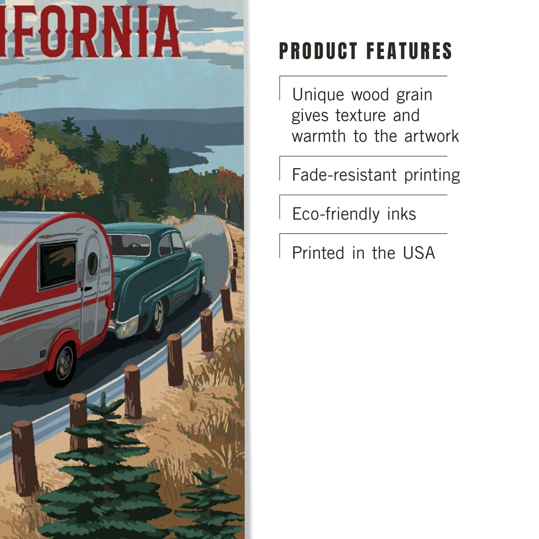 California, Painterly, Retro Camper on Road, Wood Signs and Postcards Wood Lantern Press