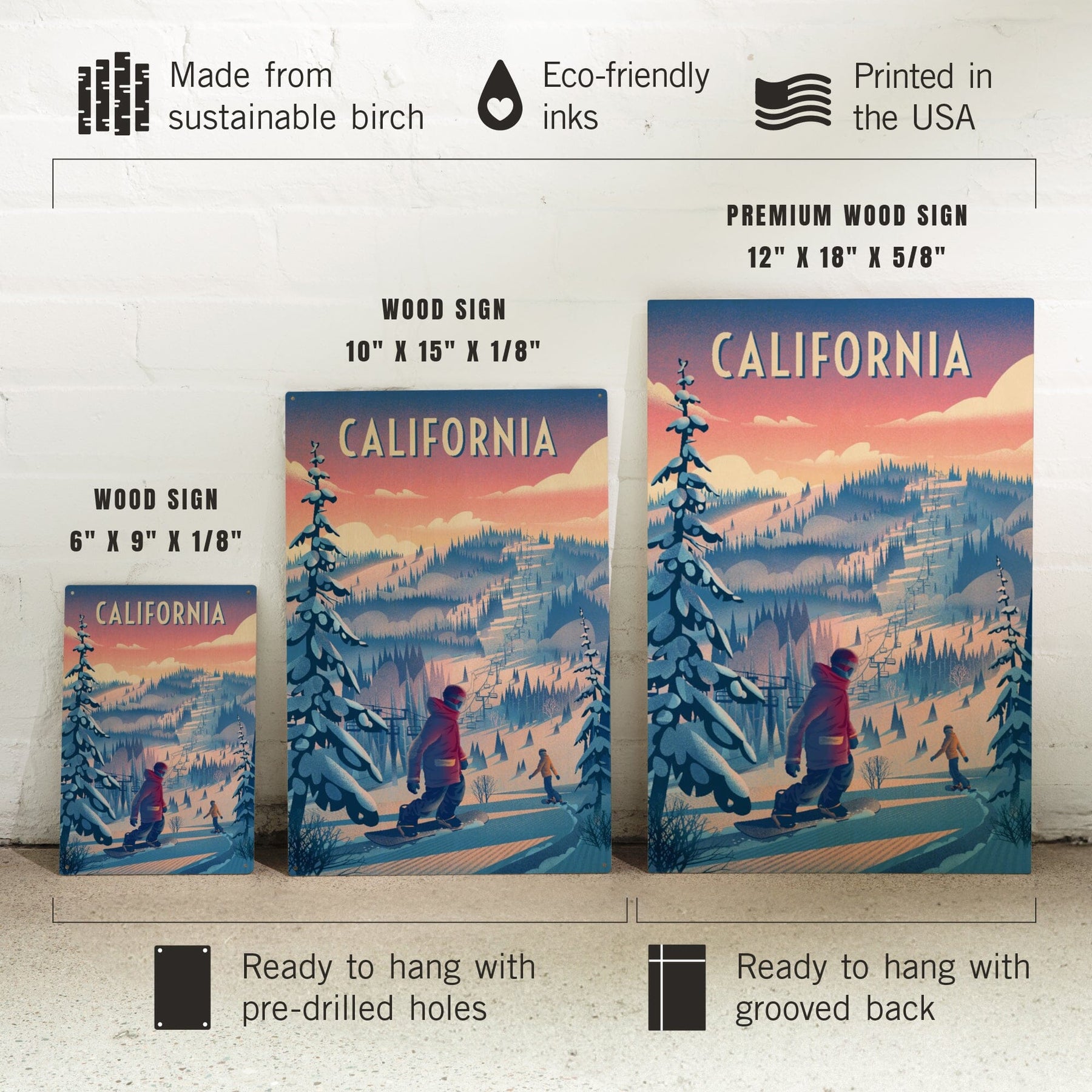 California, Shred the Gnar, Snowboarding, Wood Signs and Postcards