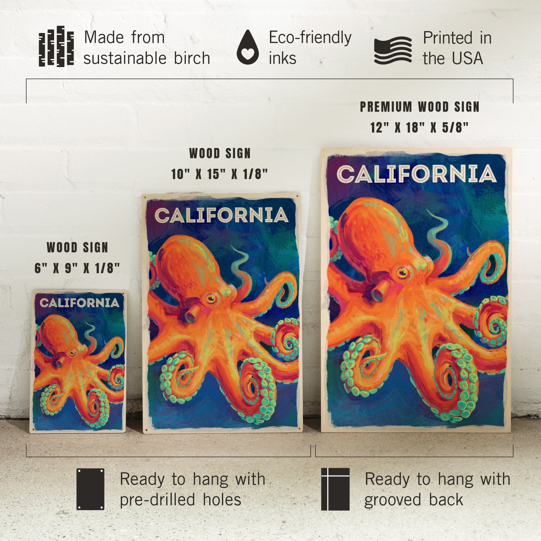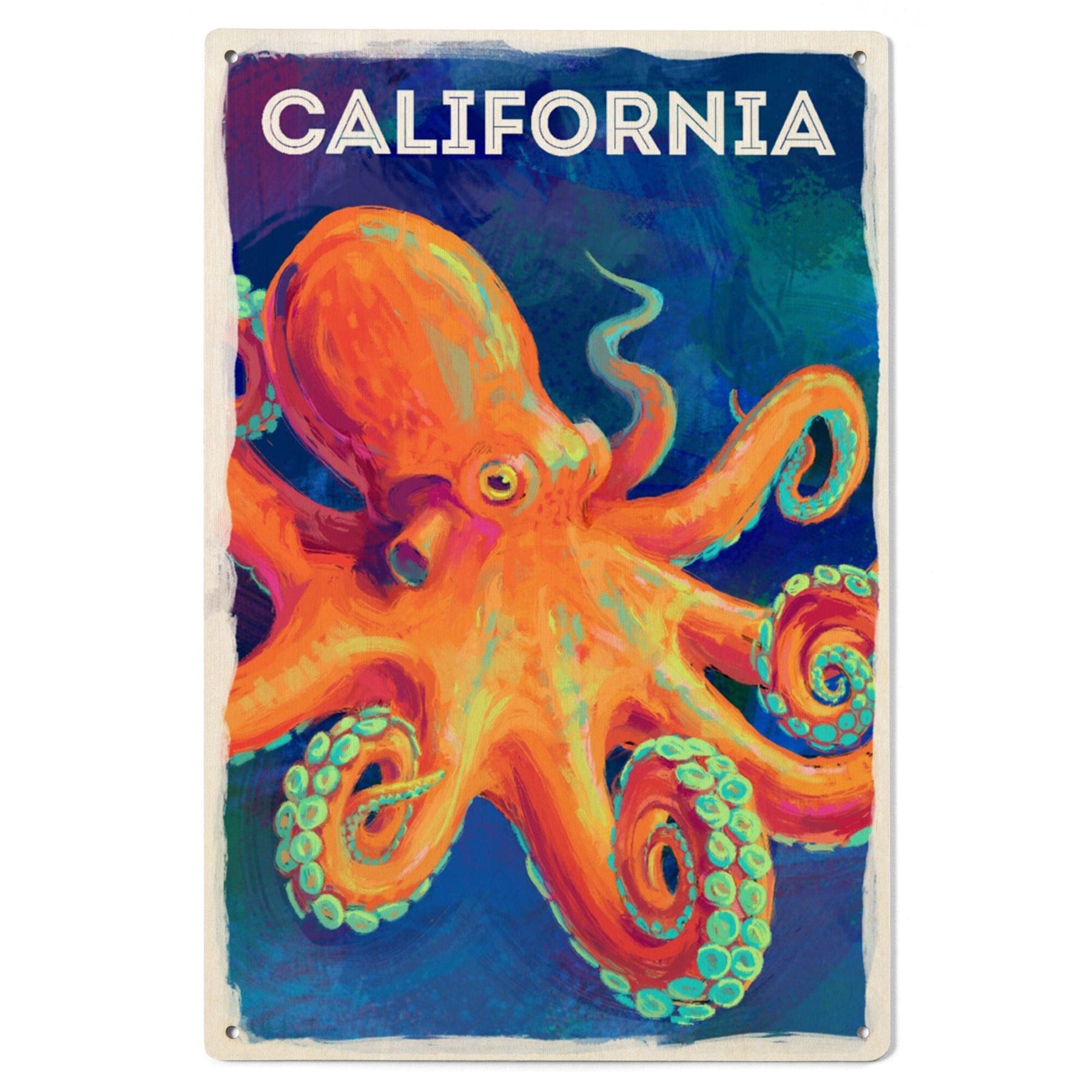 California, Vivid, Octopus, Wood Signs and Postcards Wood Lantern Press