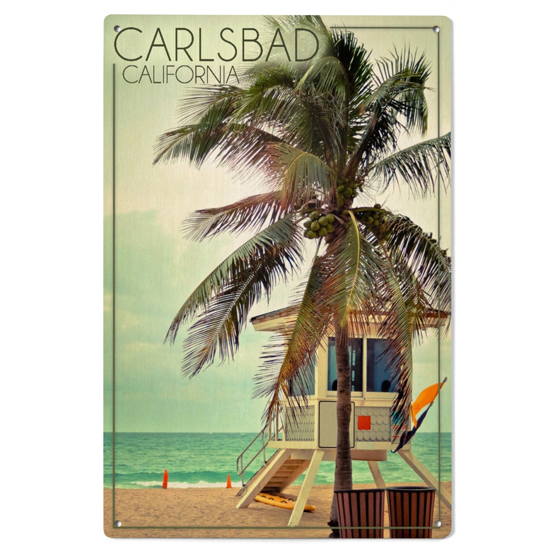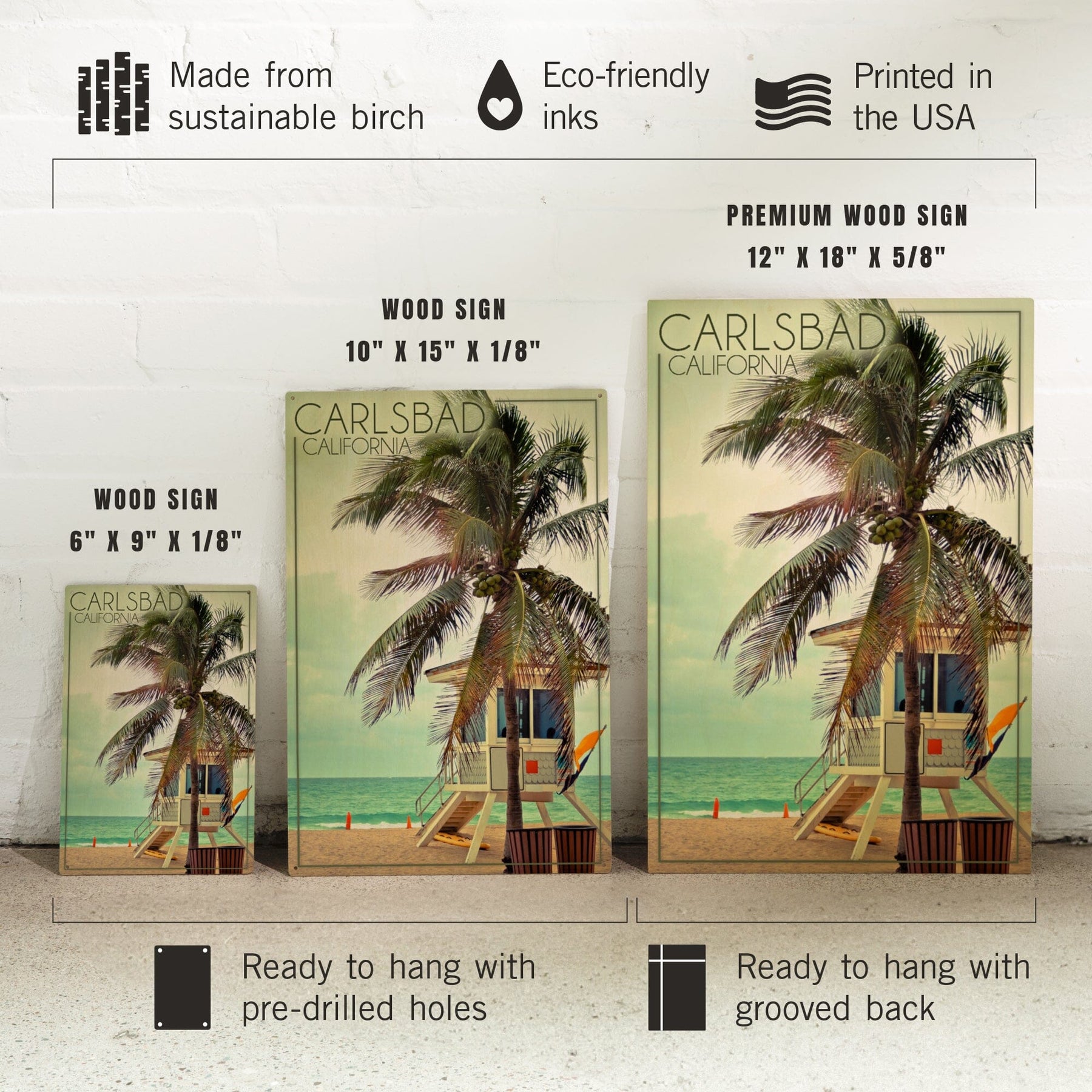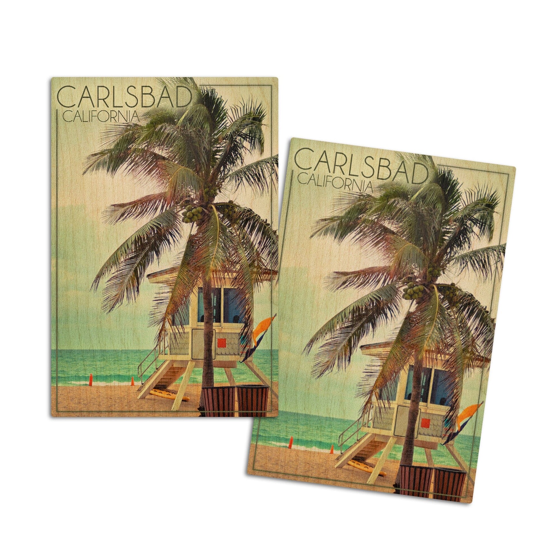 Carlsbad, California, Lifeguard Shack and Palm, Lantern Press Photography, Wood Signs and Postcards - Lantern Press