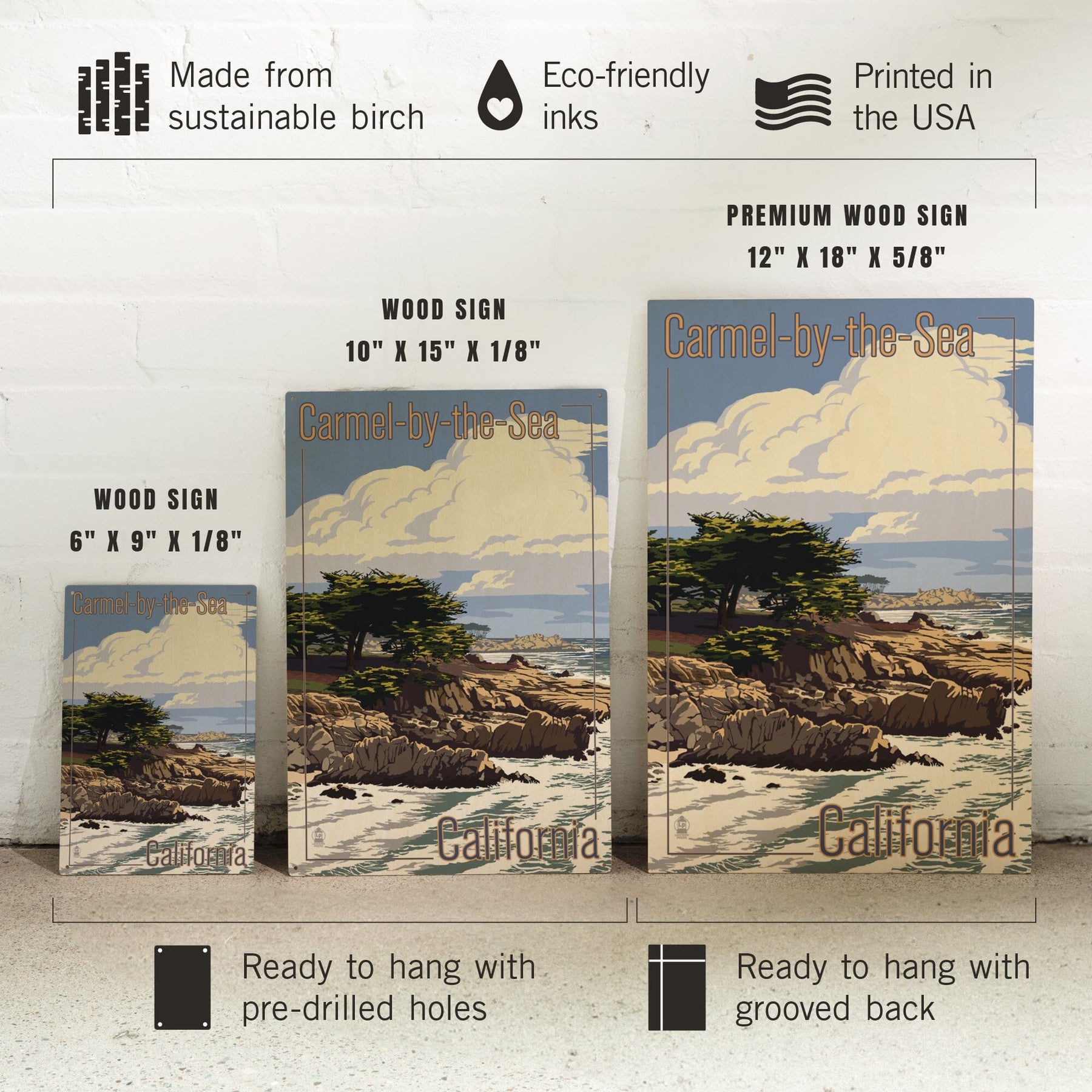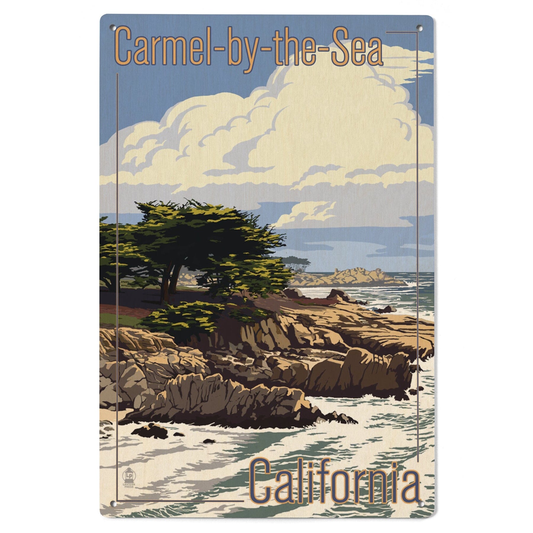 Carmel-by-the-Sea, California, View of Cypress Trees, Lantern Press Artwork, Wood Signs and Postcards