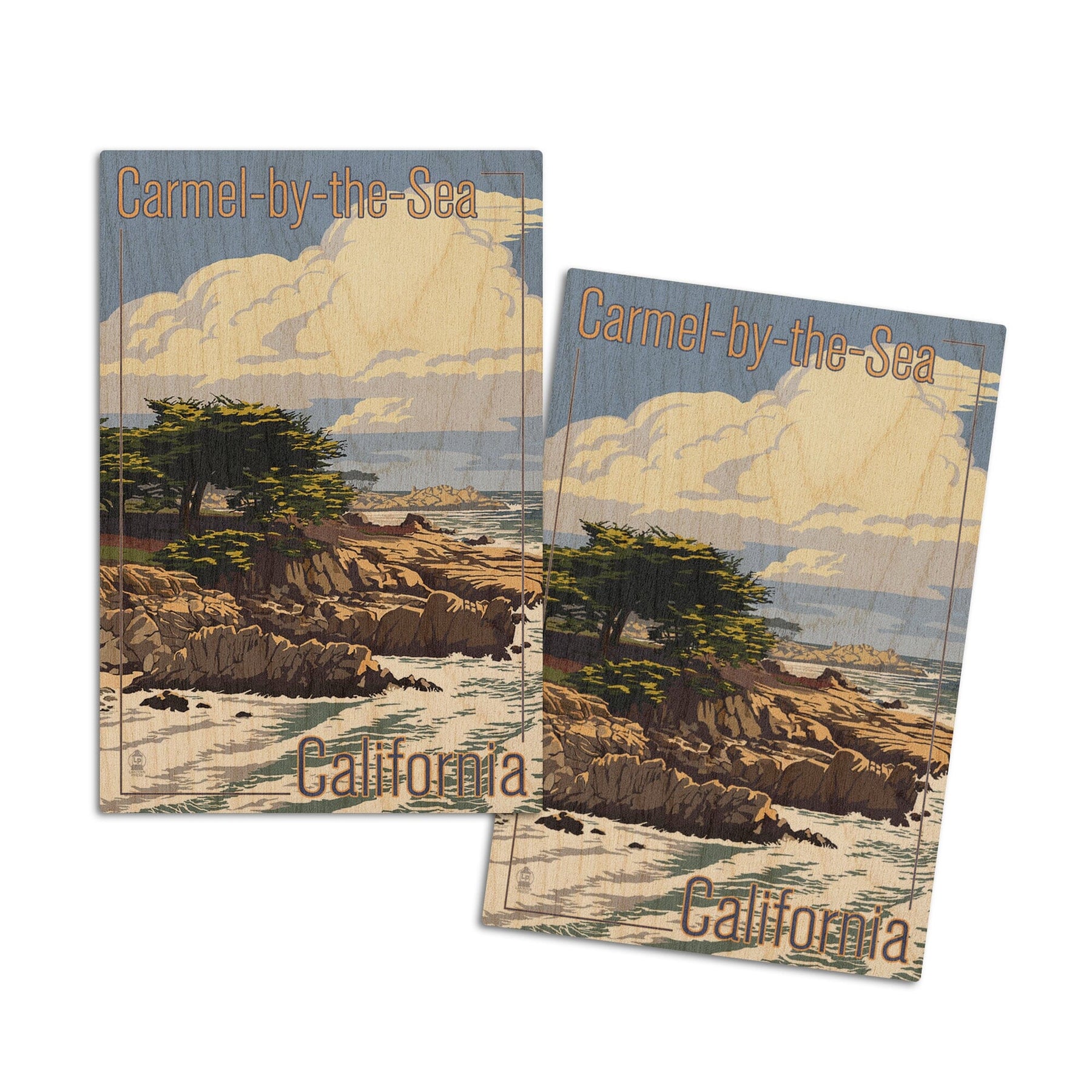 Carmel-by-the-Sea, California, View of Cypress Trees, Lantern Press Artwork, Wood Signs and Postcards - Lantern Press