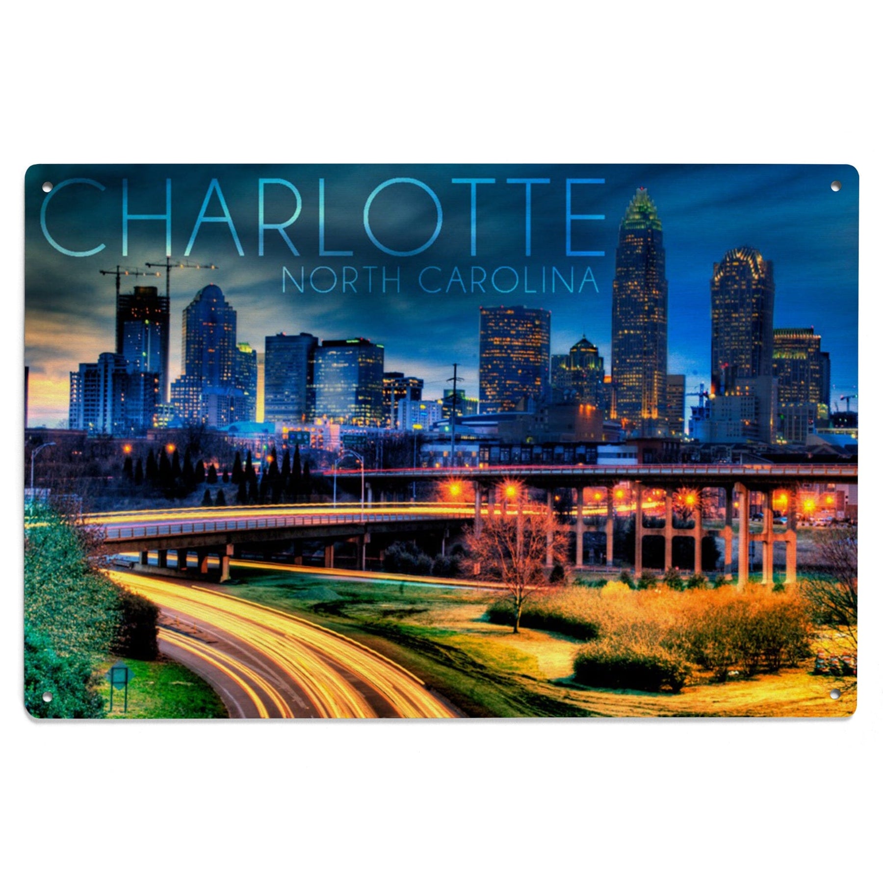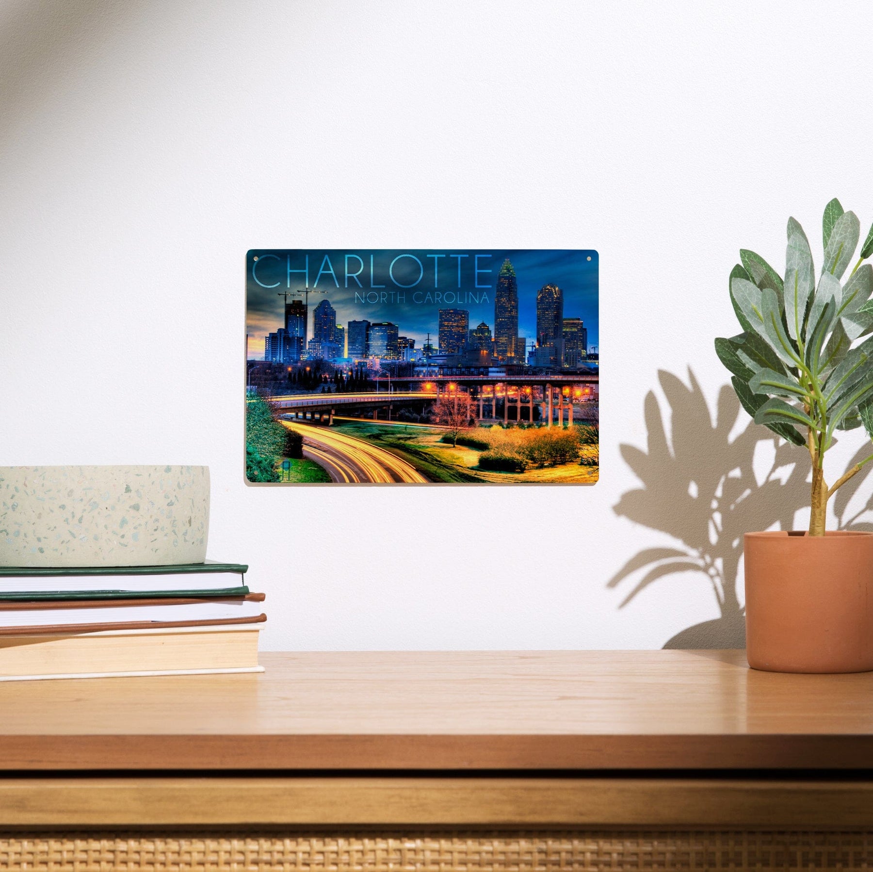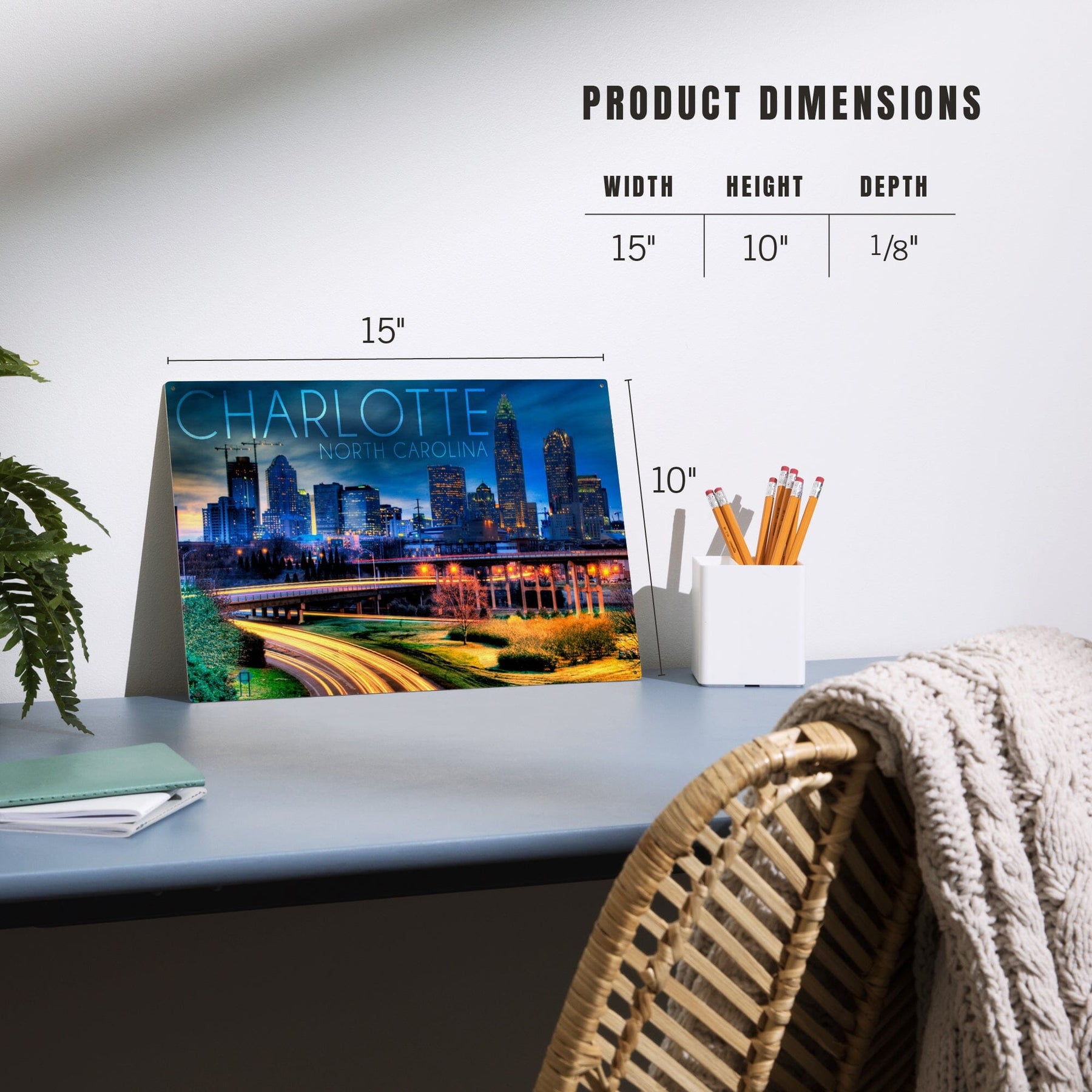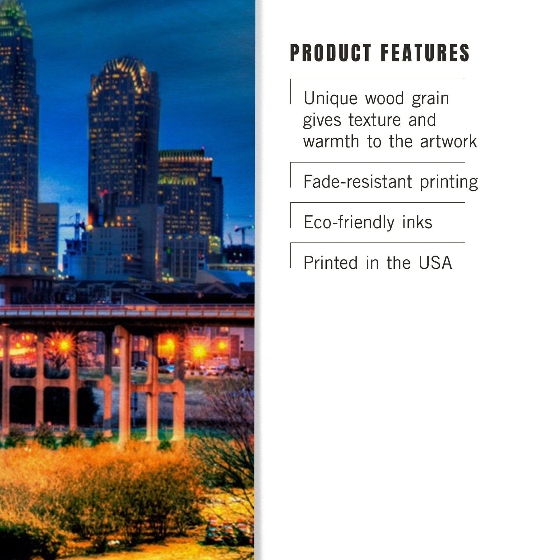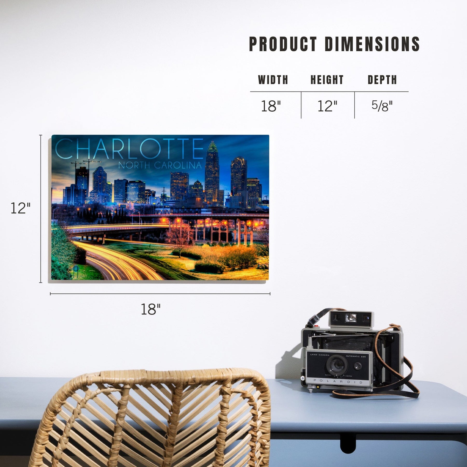 Charlotte, North Carolina, Skyline at Night, Lantern Press Photography, Wood Signs and Postcards