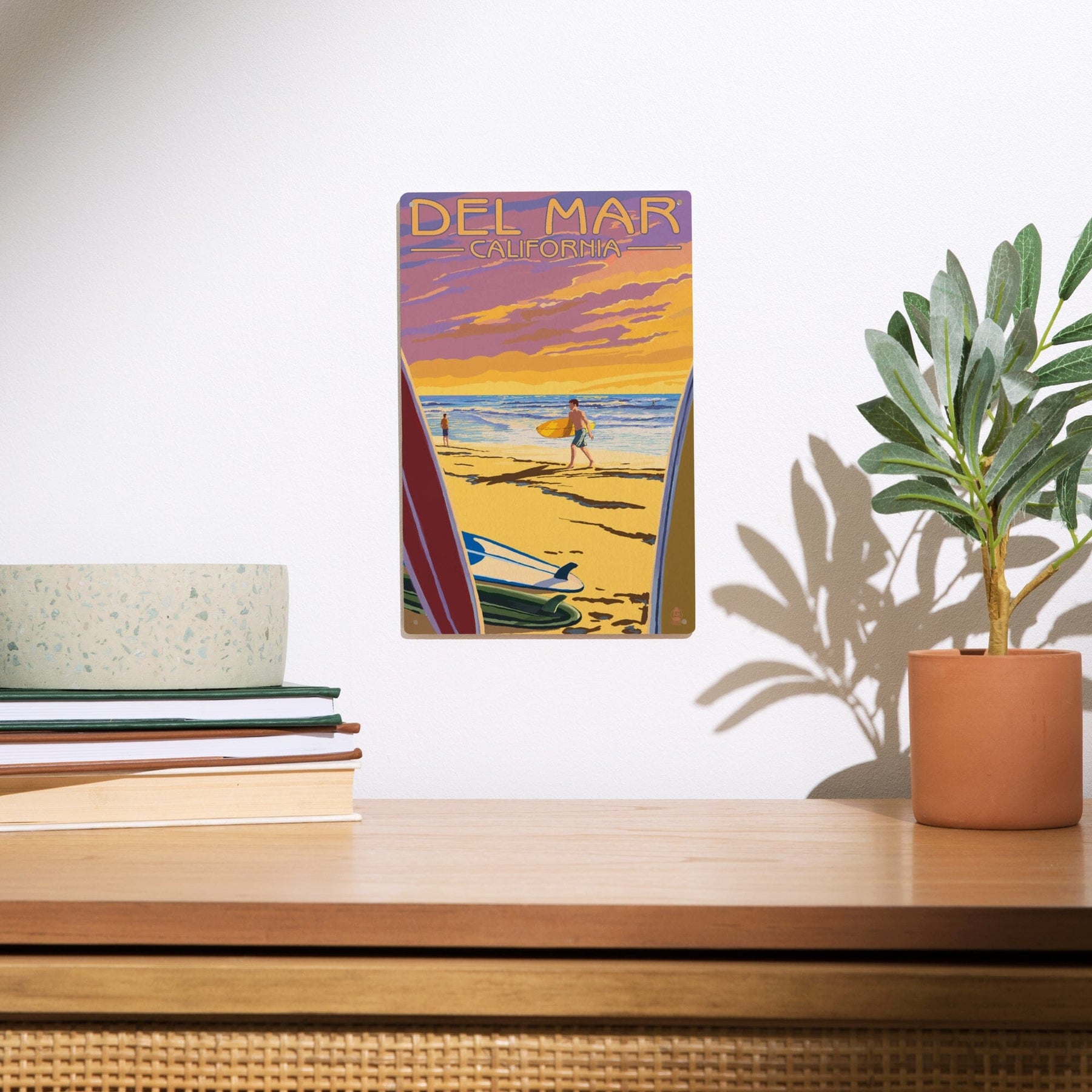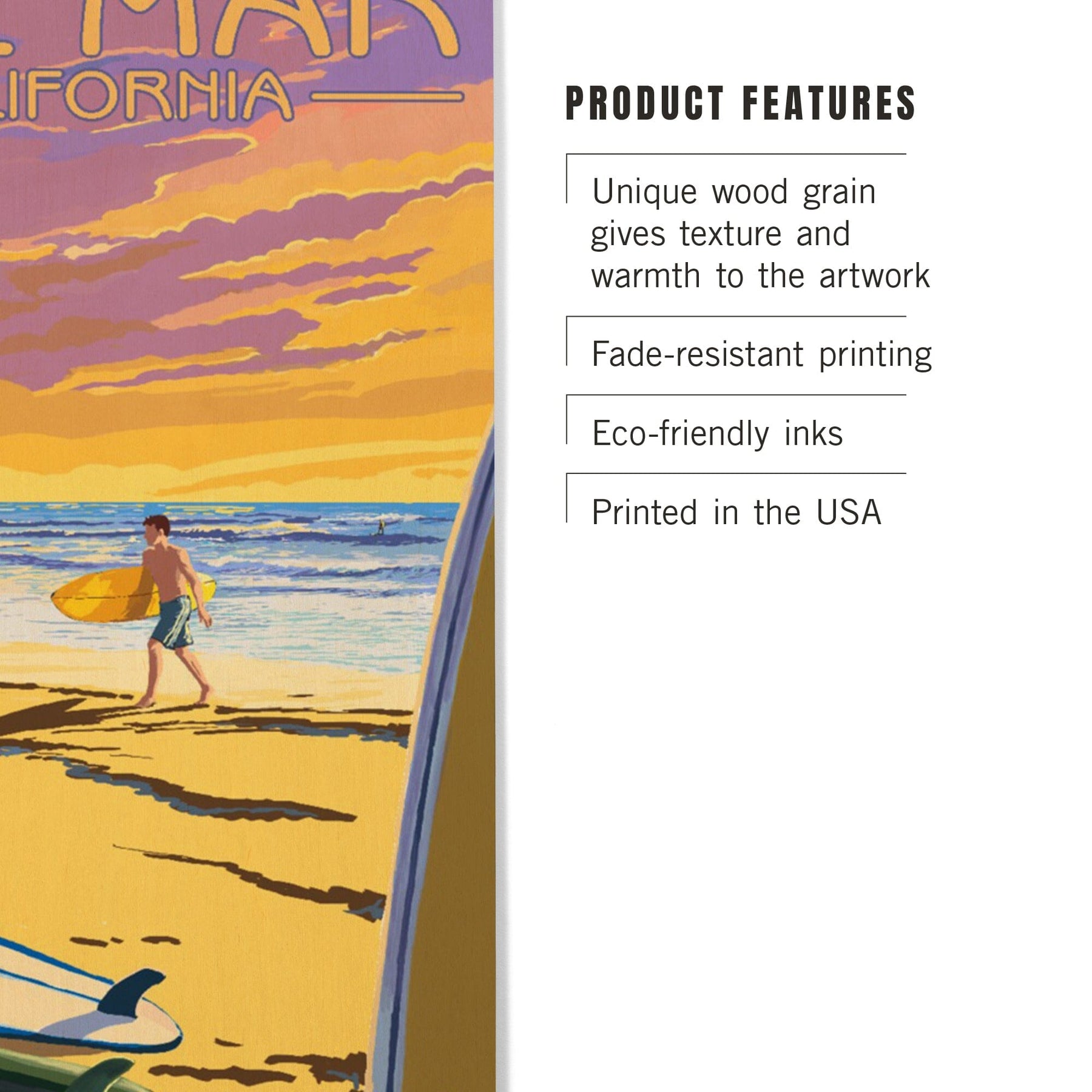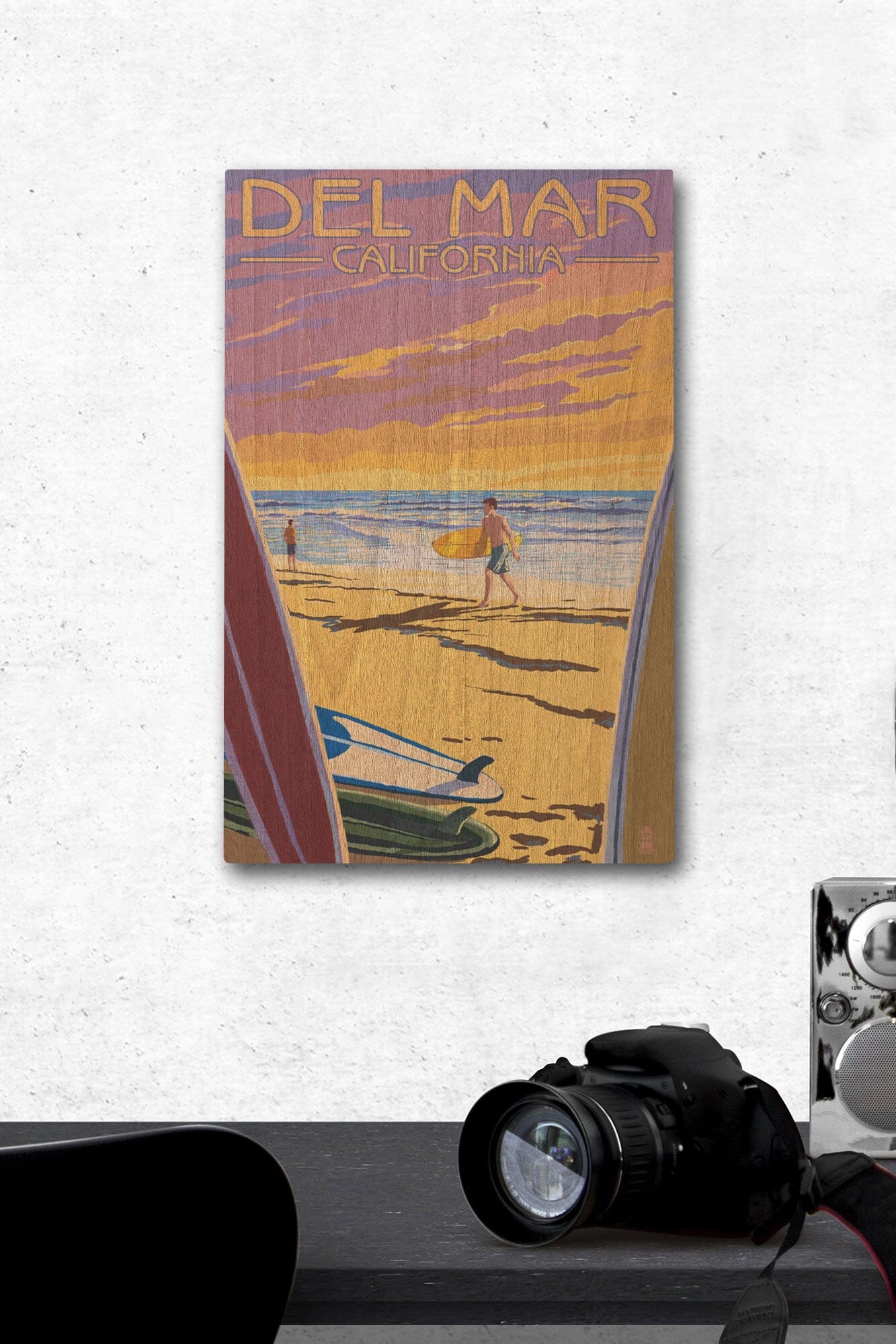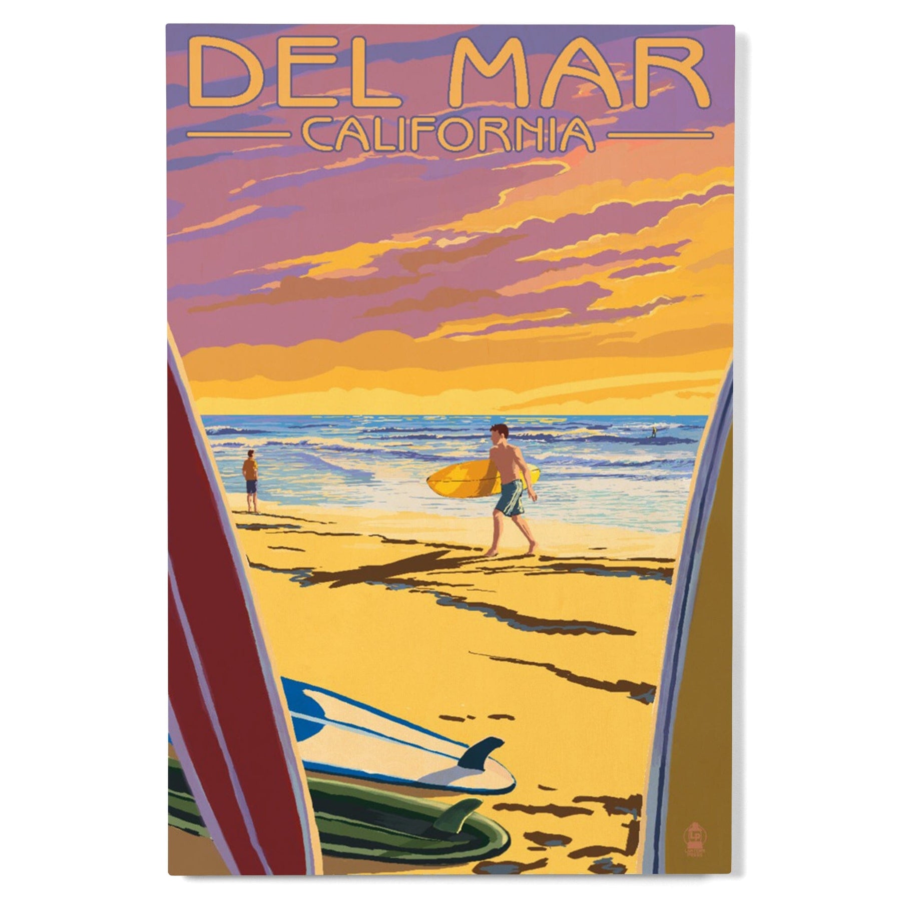 Del Mar, California, Surfers at Sunset, Lantern Press Artwork, Wood Signs and Postcards