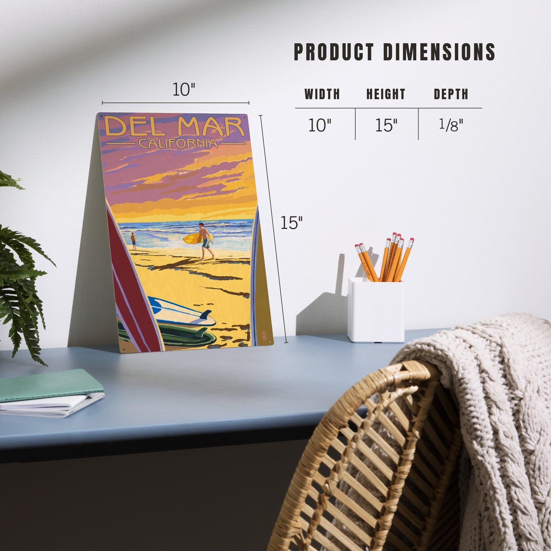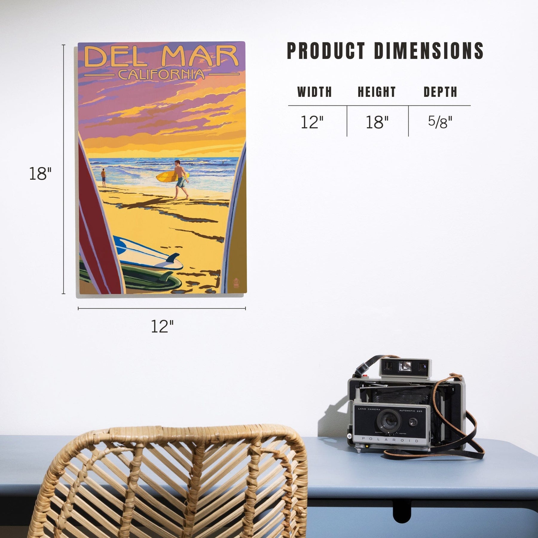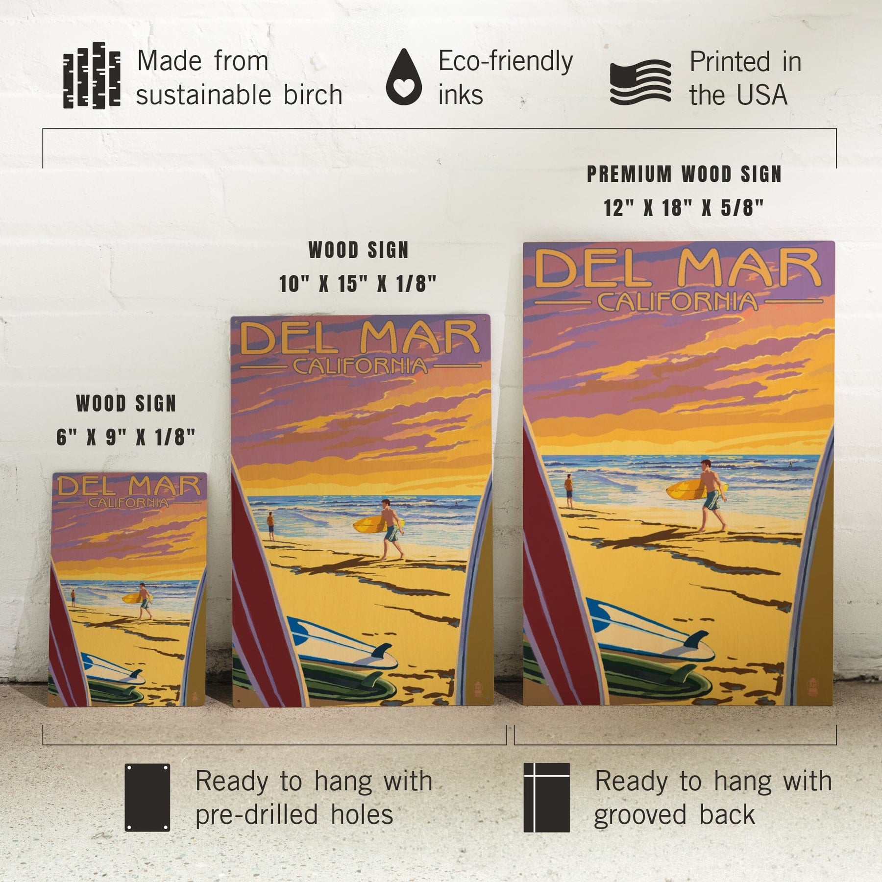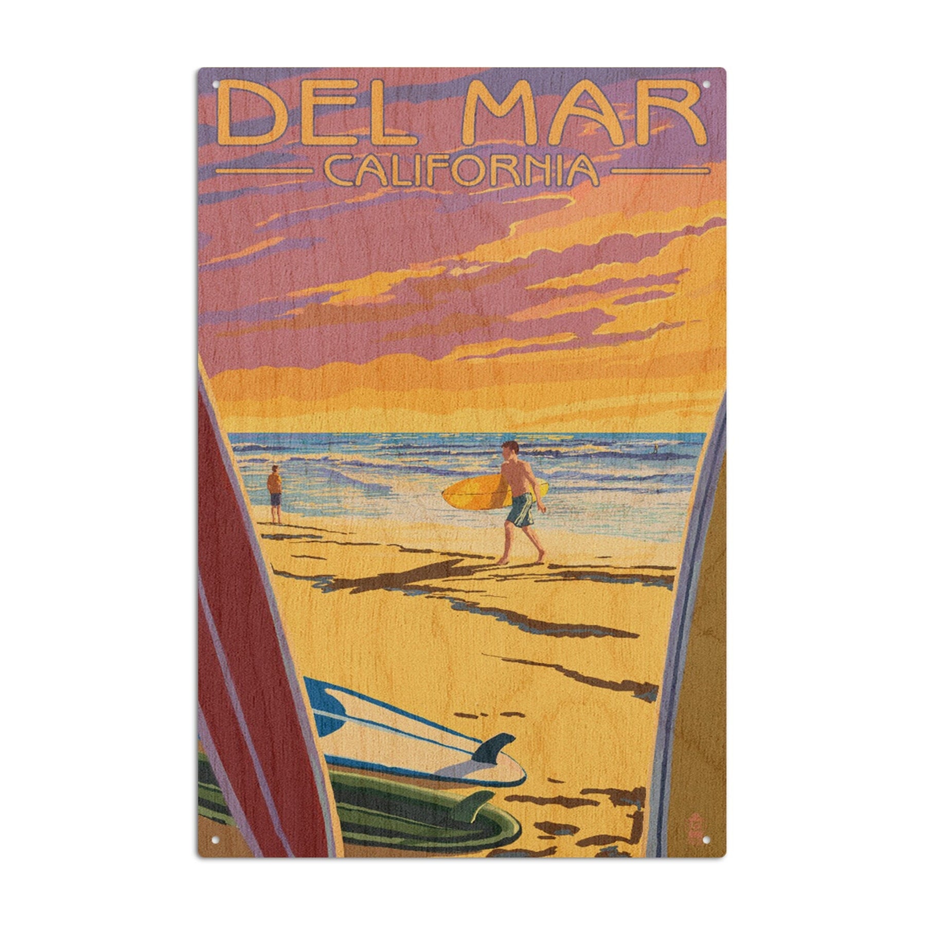 Del Mar, California, Surfers at Sunset, Lantern Press Artwork, Wood Signs and Postcards