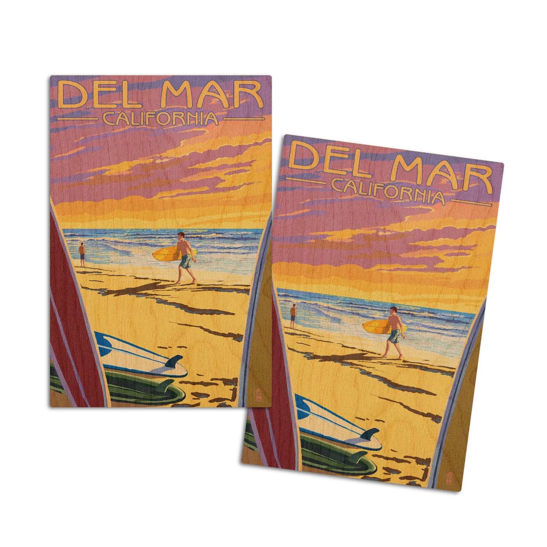 Del Mar, California, Surfers at Sunset, Lantern Press Artwork, Wood Signs and Postcards - Lantern Press