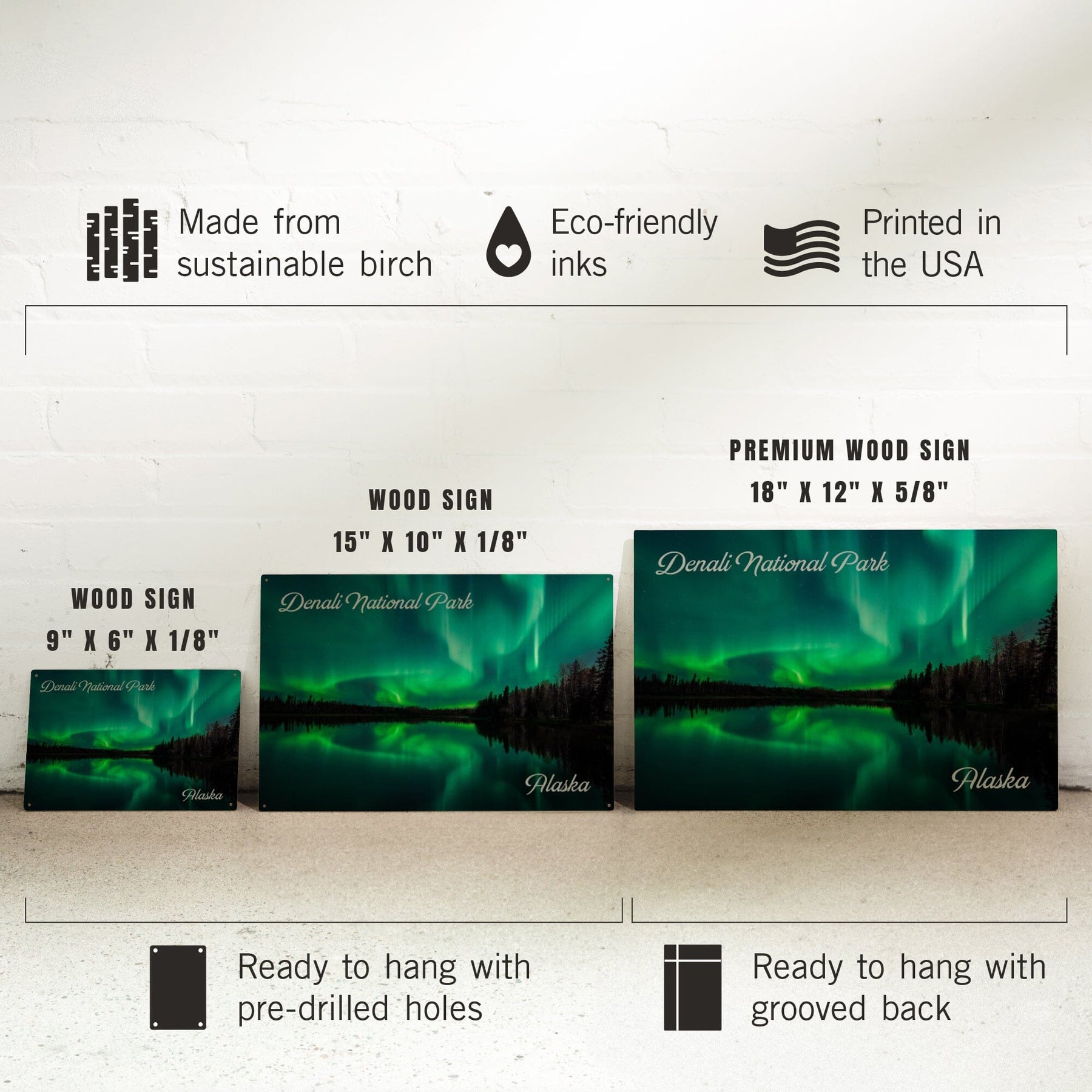 Denali National Park, Alaska, Northern Lights over Lake, Wood Signs and Postcards Wood Lantern Press