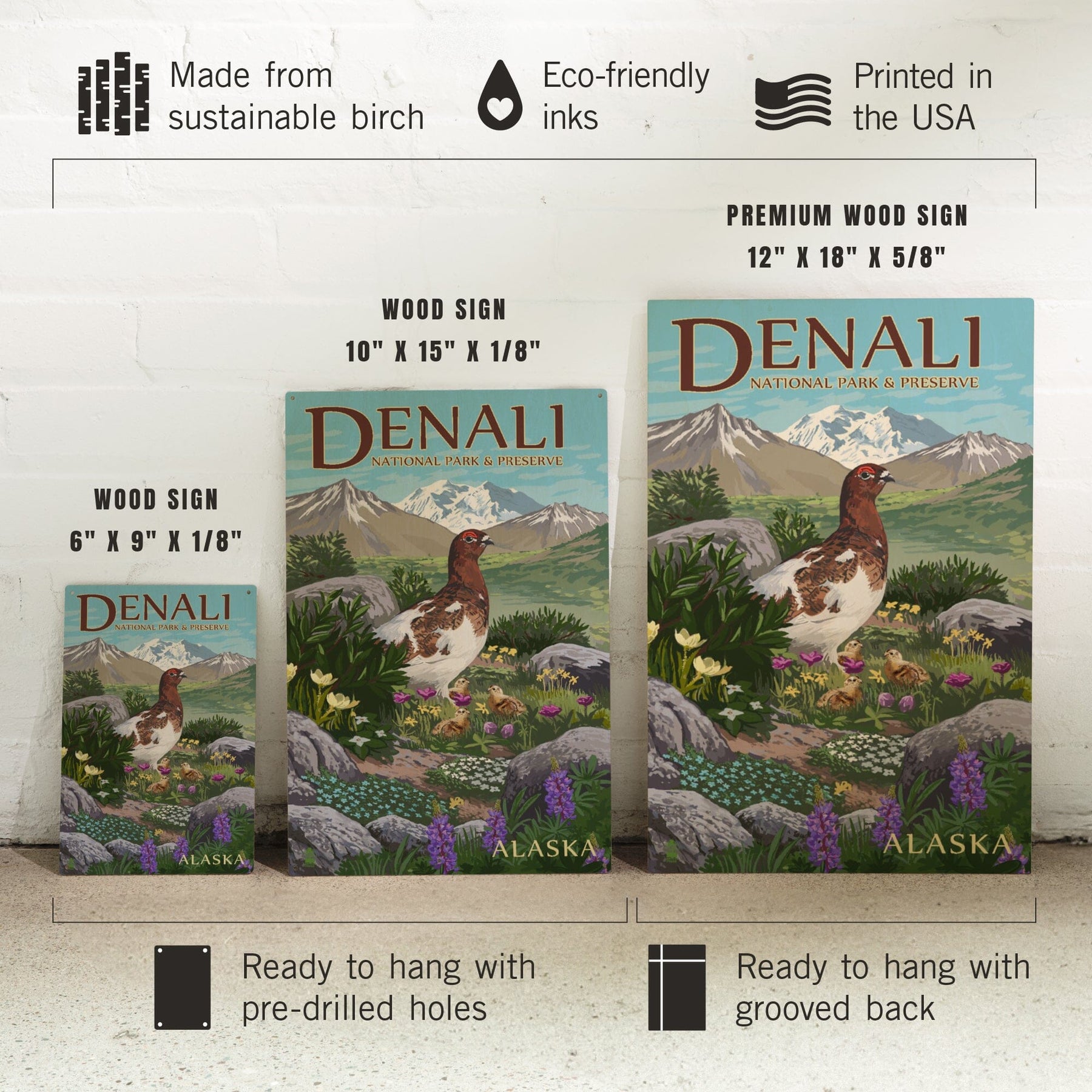 Denali National Park and Preserve, Alaska, Ptarmigan, Wood Signs and Postcards Wood Lantern Press
