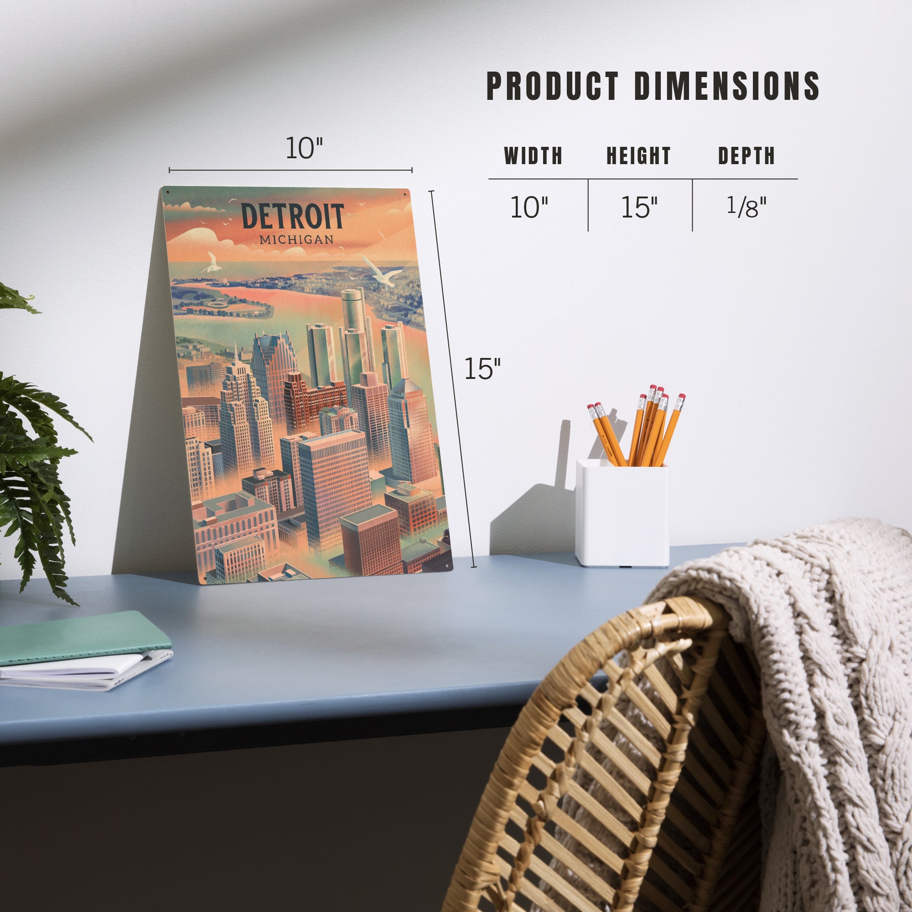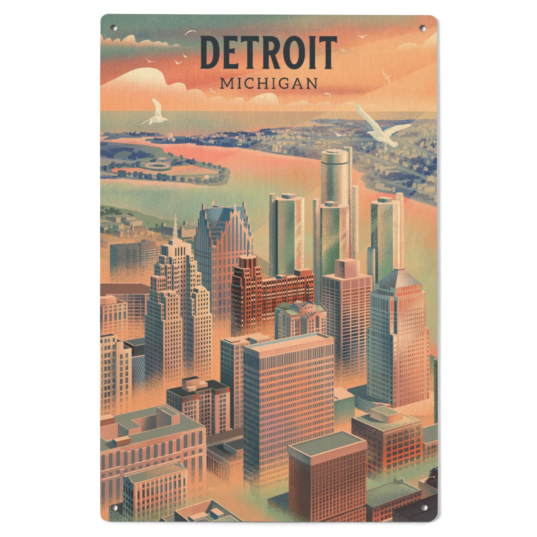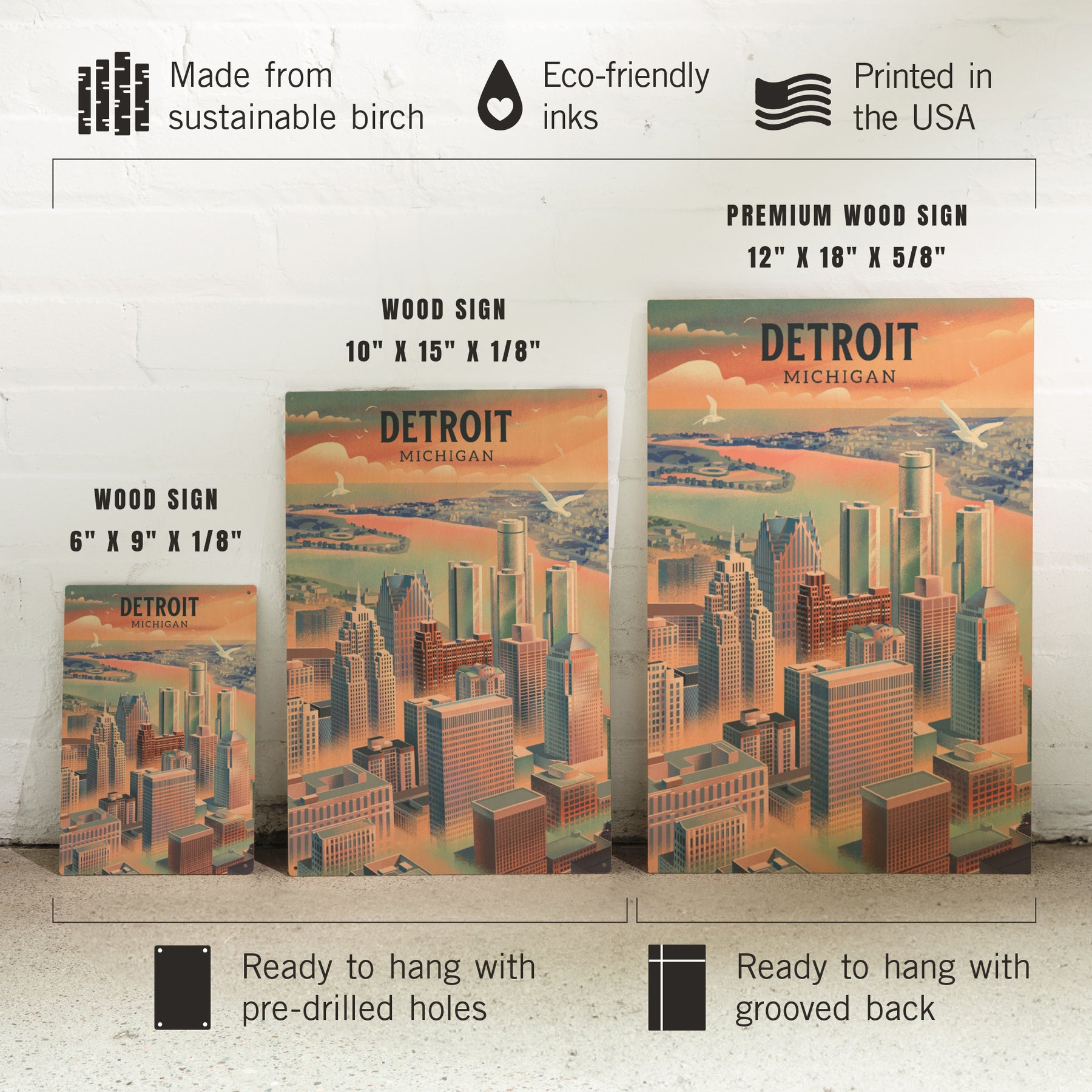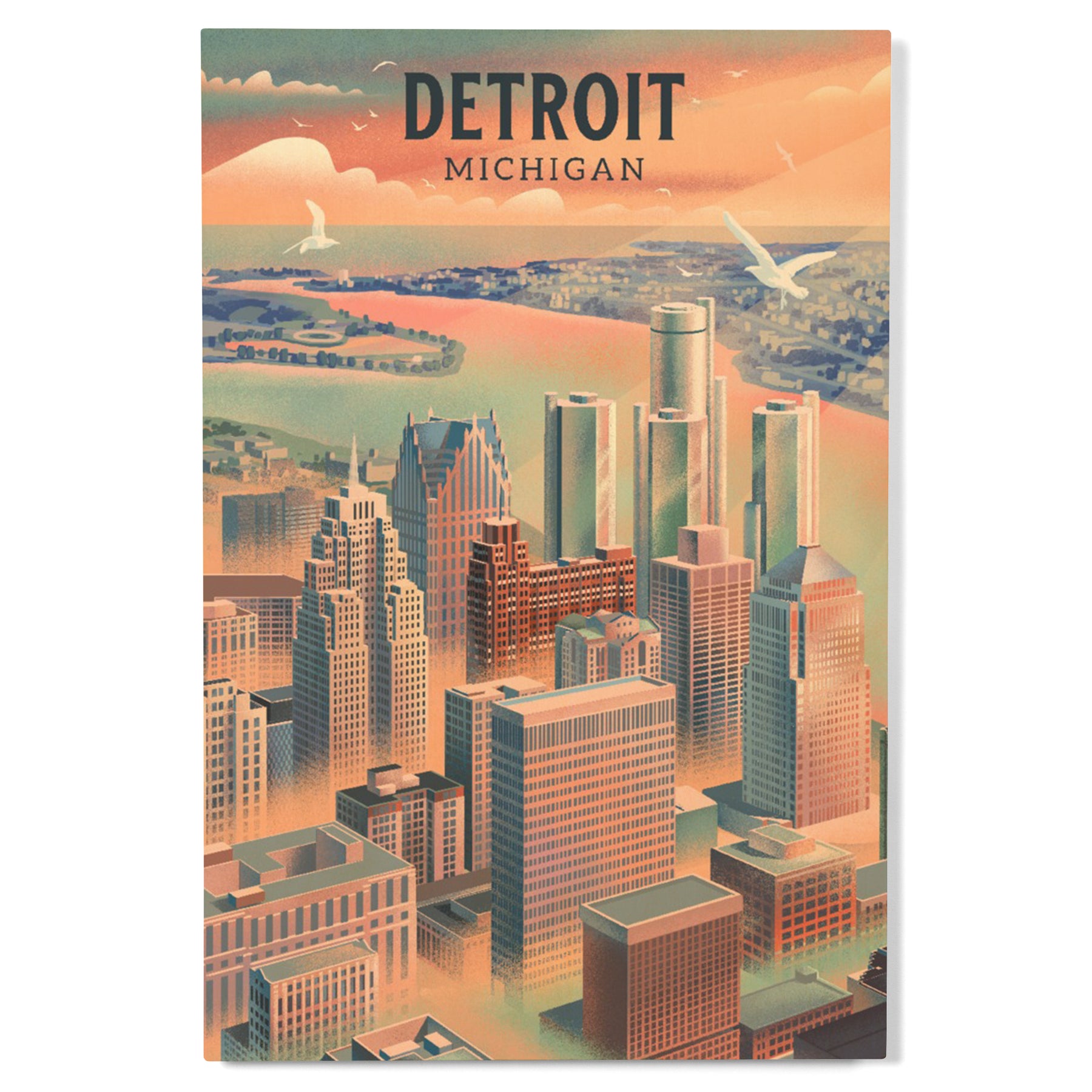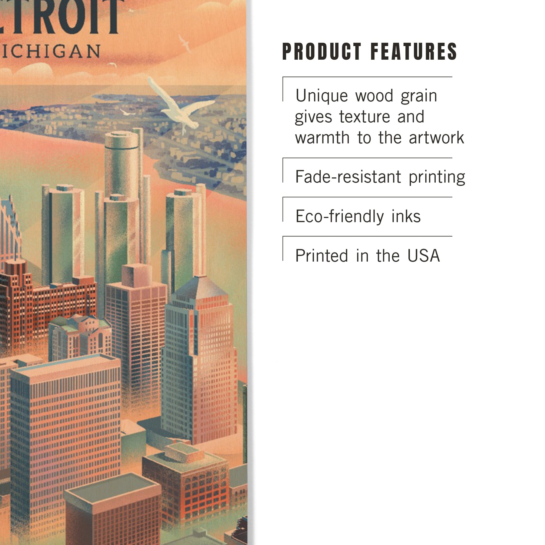 Detroit, Michigan, Lithograph City Series, Wood Signs and Postcards Wood Lantern Press