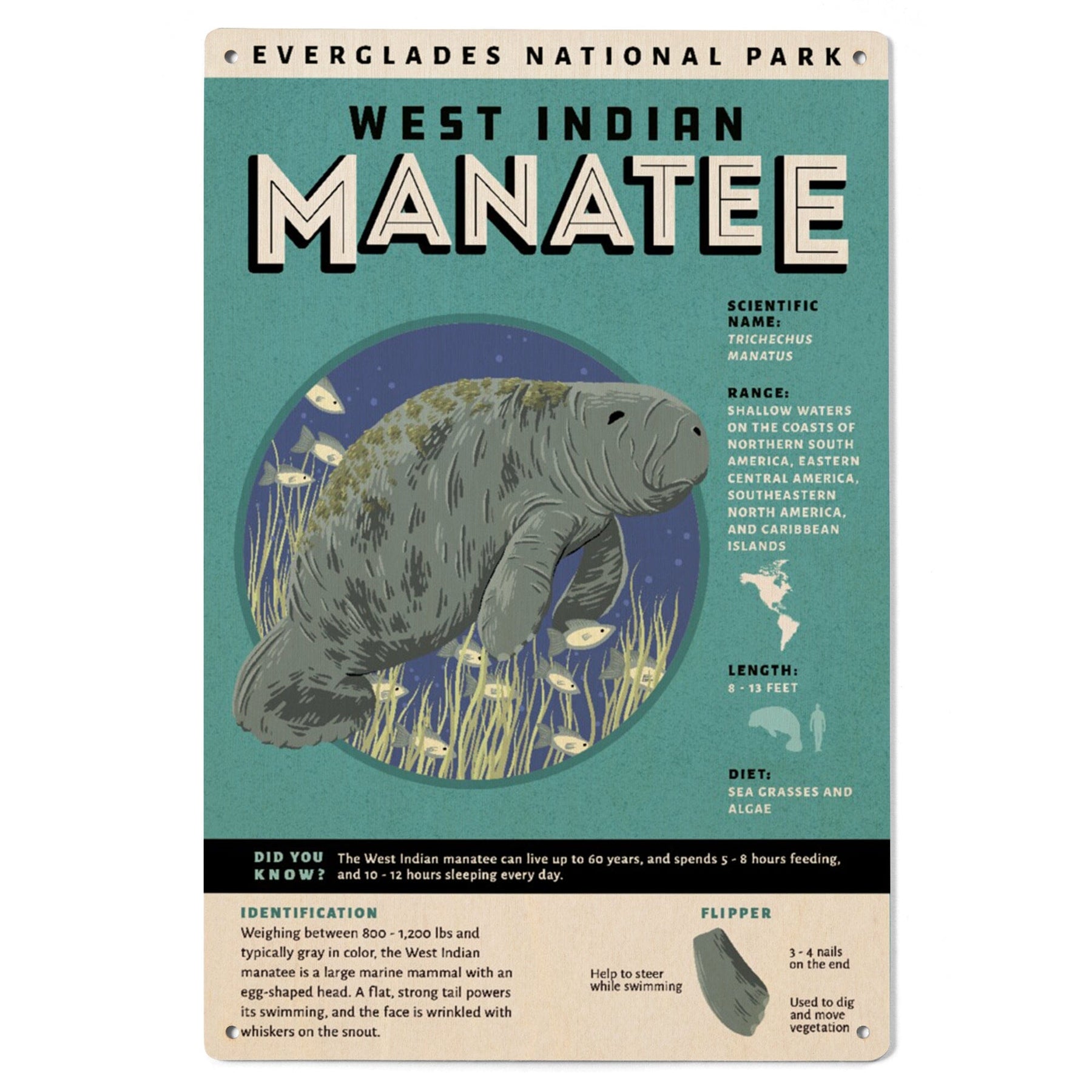 Everglades National Park, Facts About Manatees, Wood Signs and Postcards Wood Lantern Press