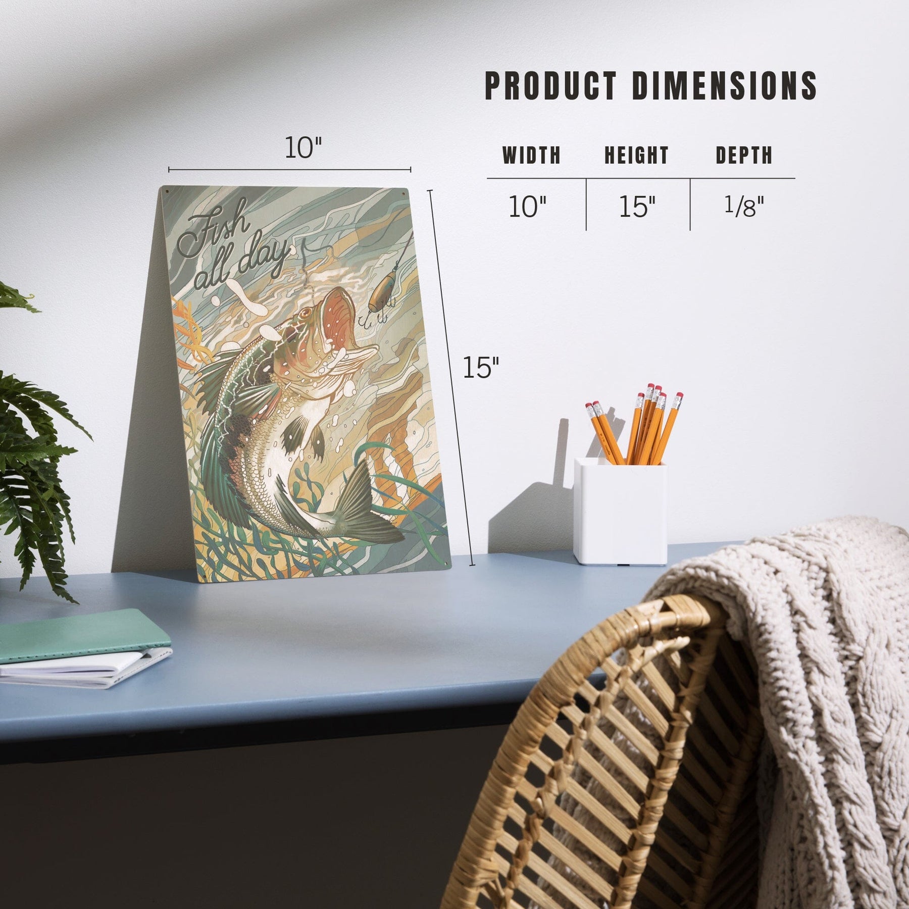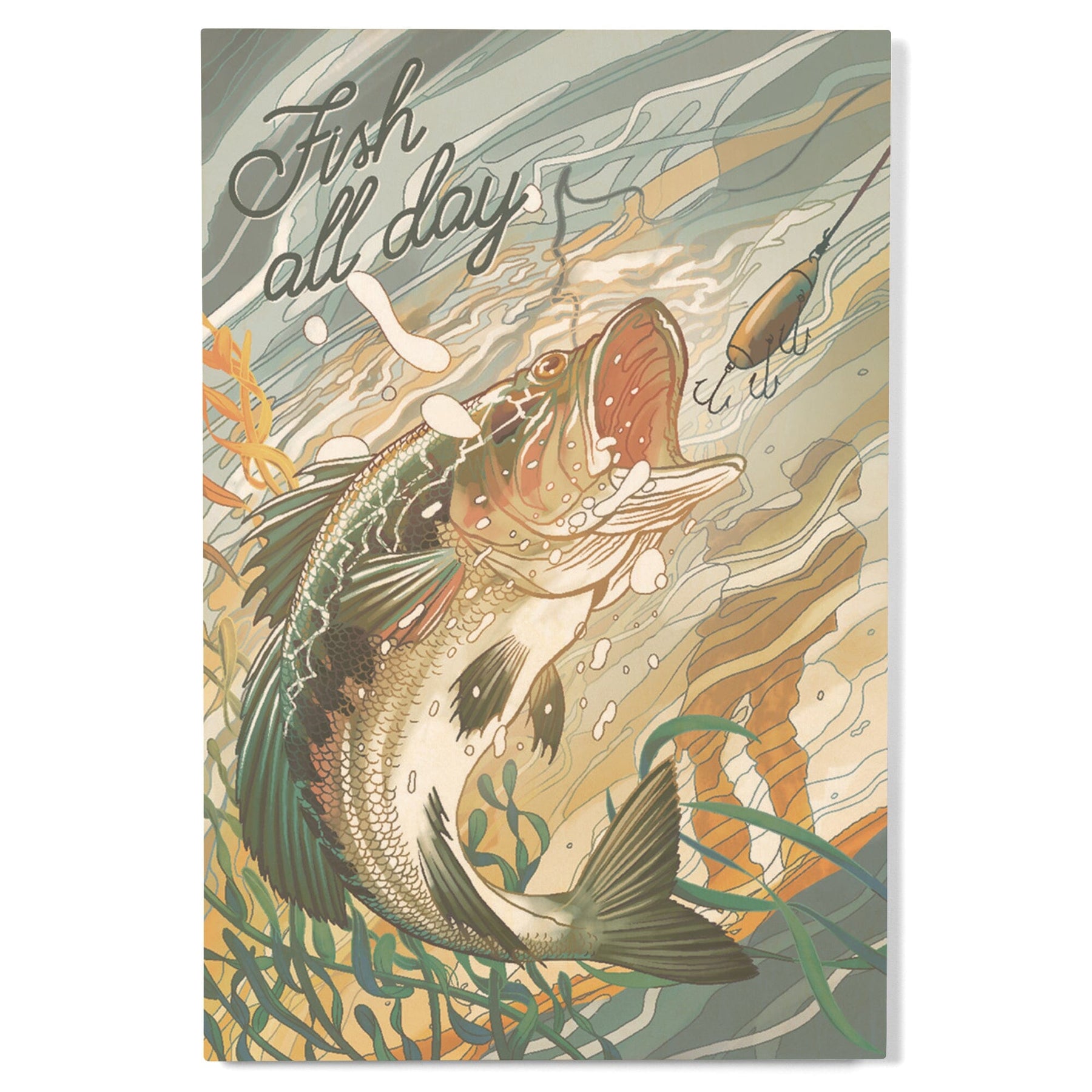 Fish All Day, Bass, Wood Signs and Postcards Wood Lantern Press