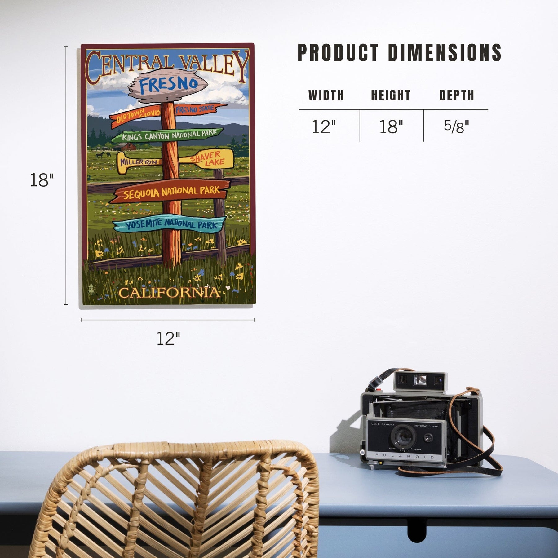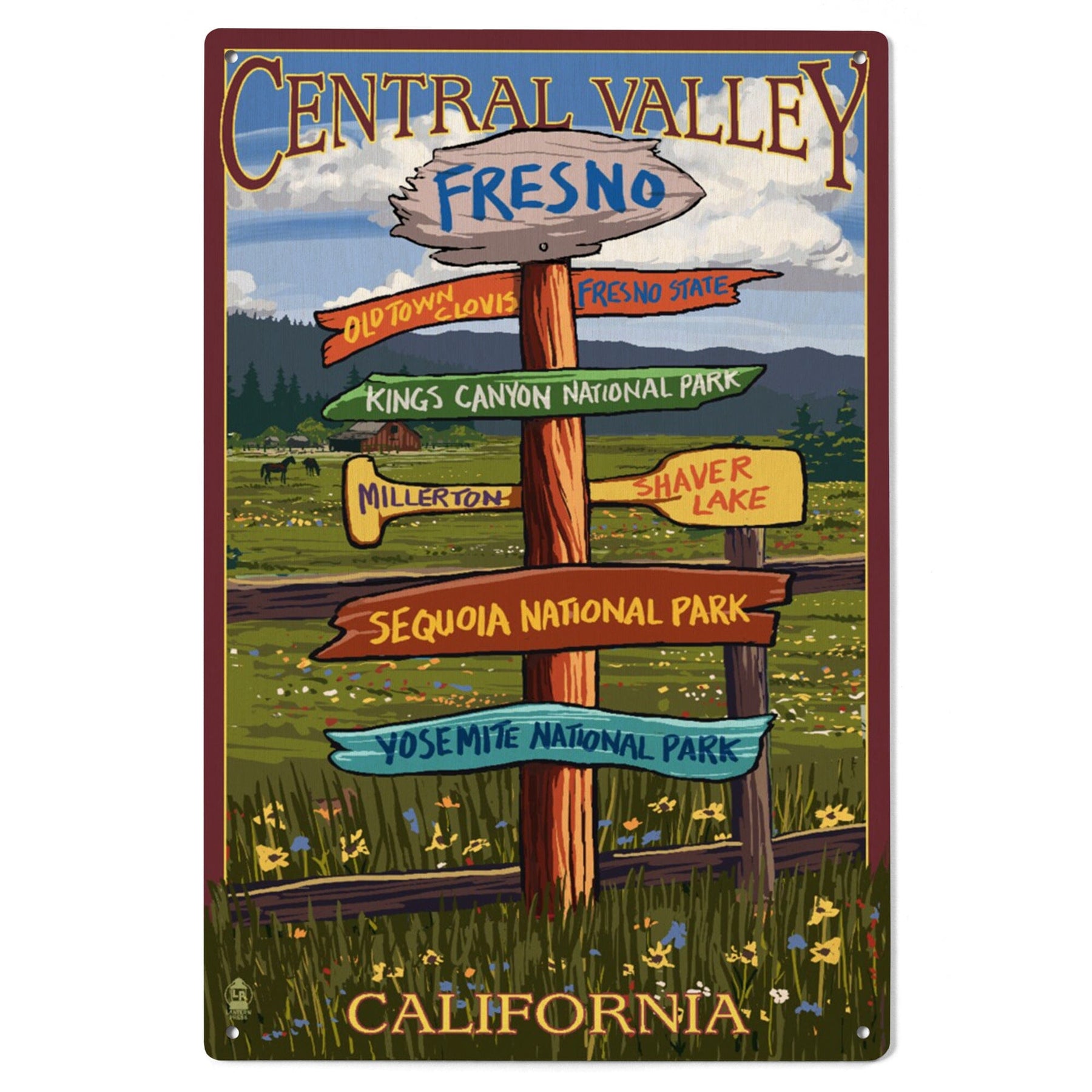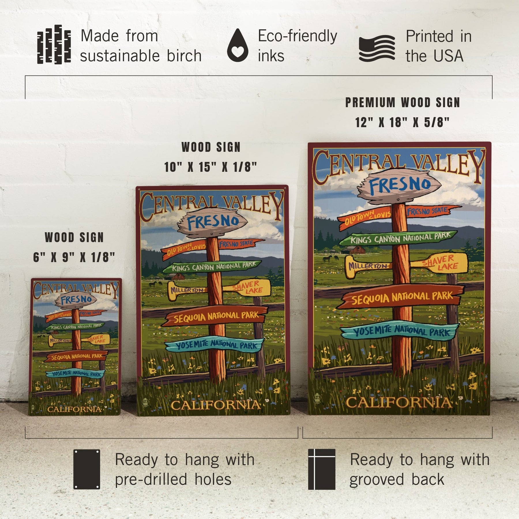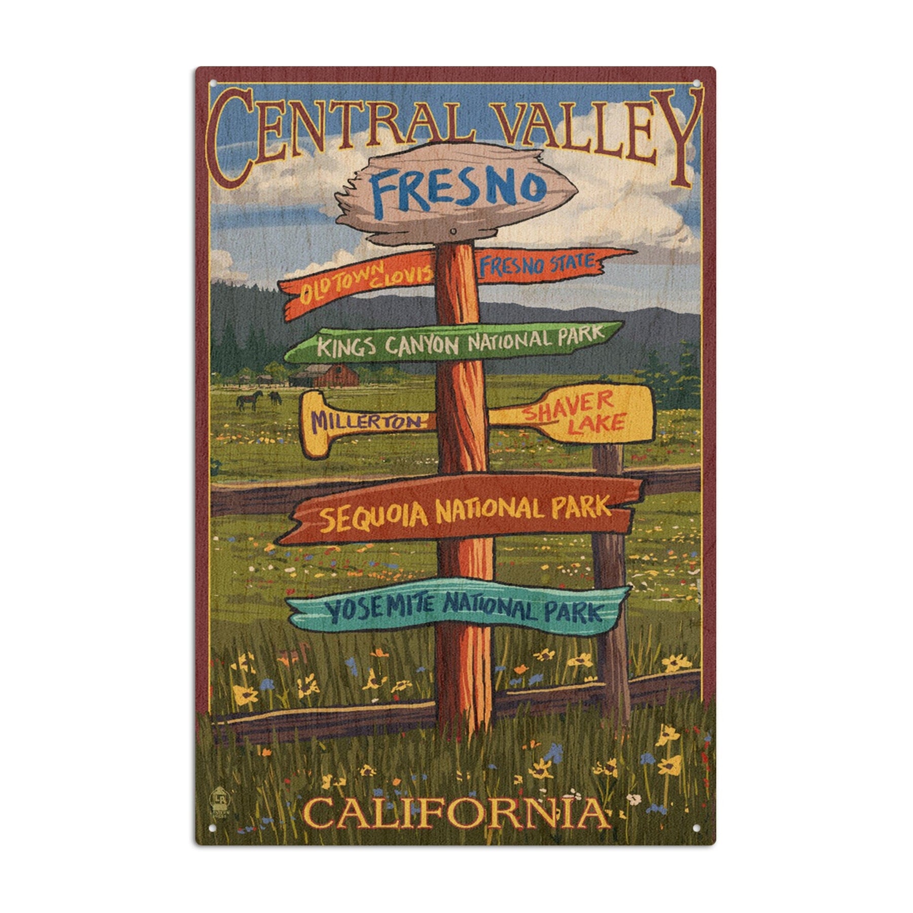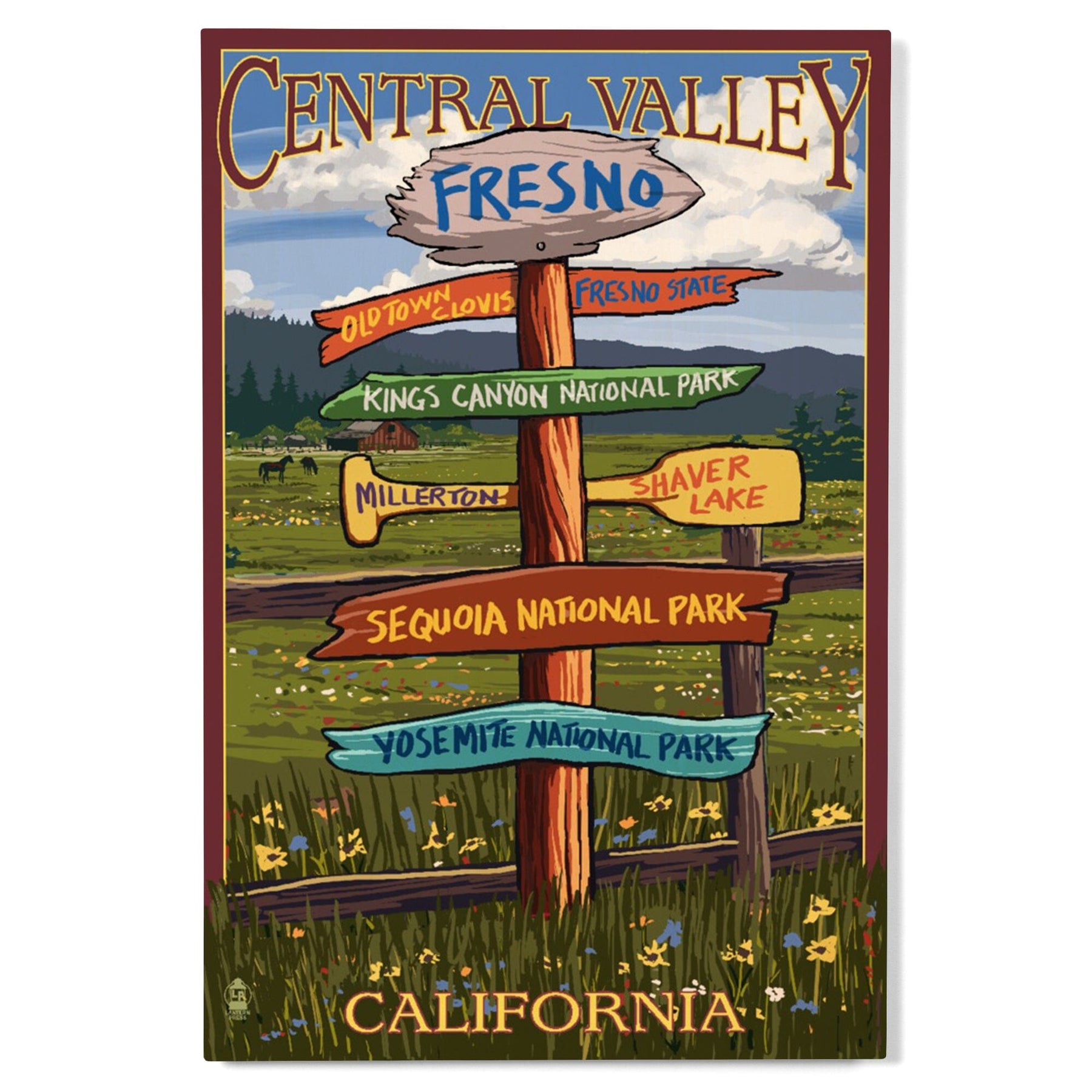 Fresno, California, Destination Sign, Lantern Press Artwork, Wood Signs and Postcards