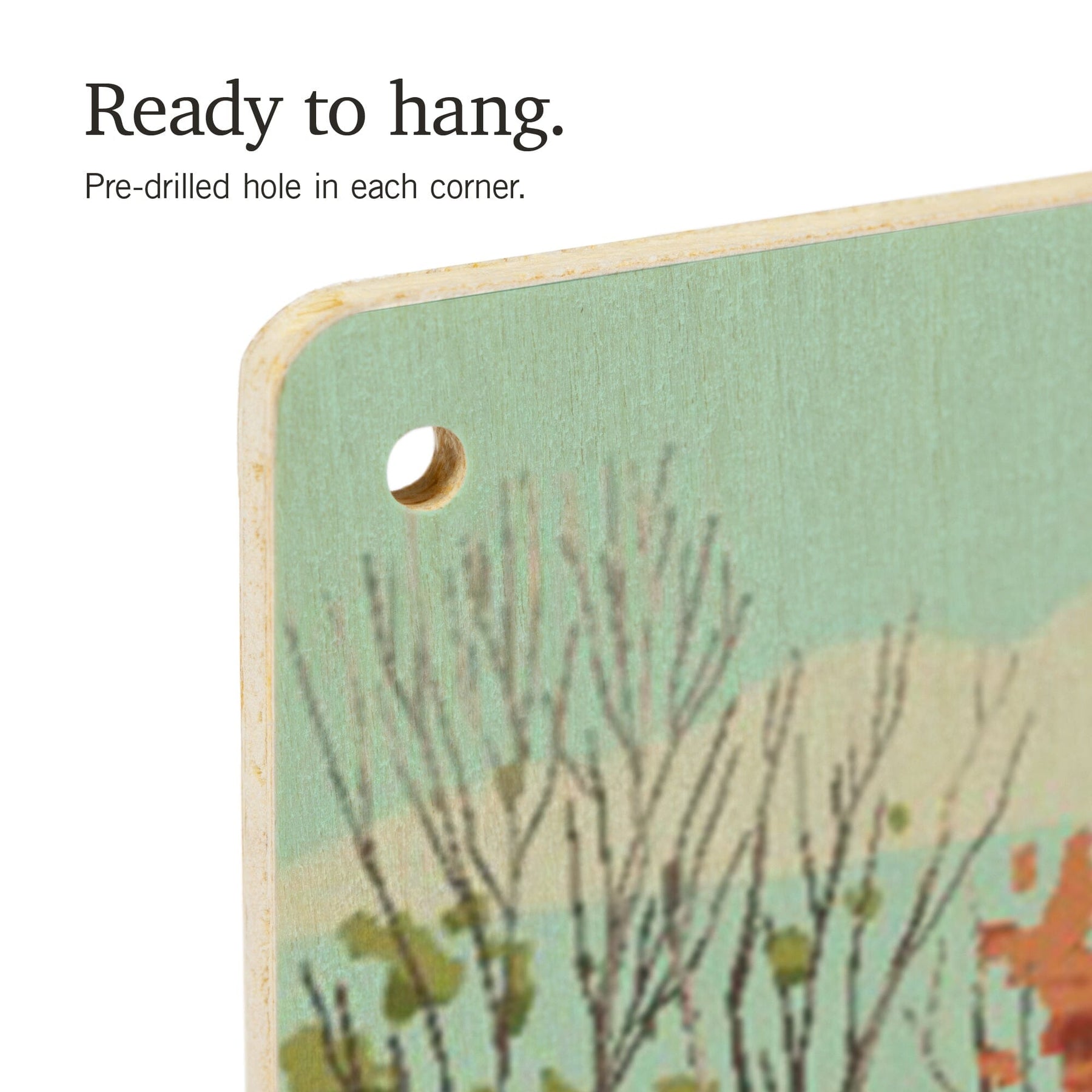 • Hole in each corner, ready to hang