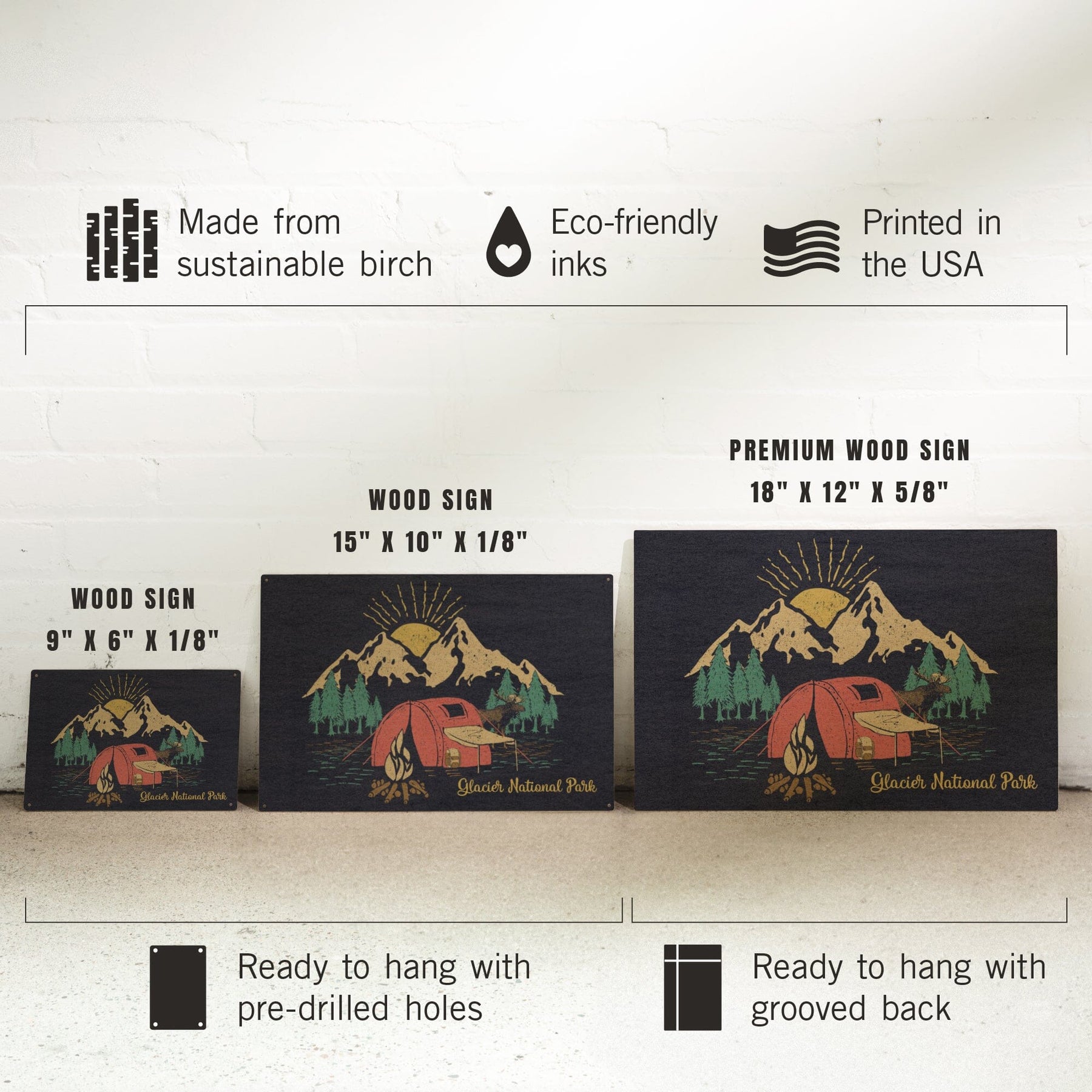Glacier National Park, Montana, Camping Scene, Wood Signs and Postcards Wood Lantern Press