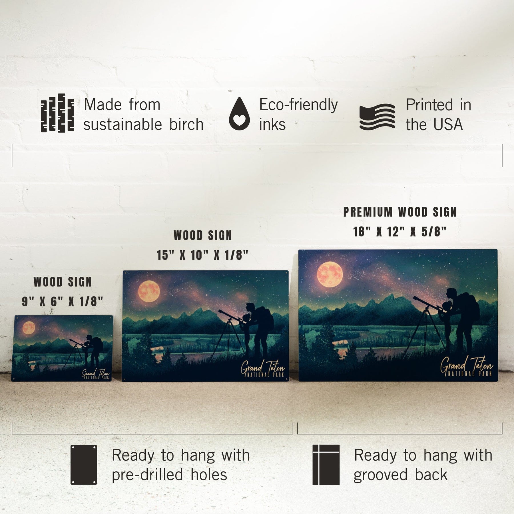 Grand Teton National Park, Wyoming, Night Sky Viewing, Textured Watercolor, Wood Signs and Postcards