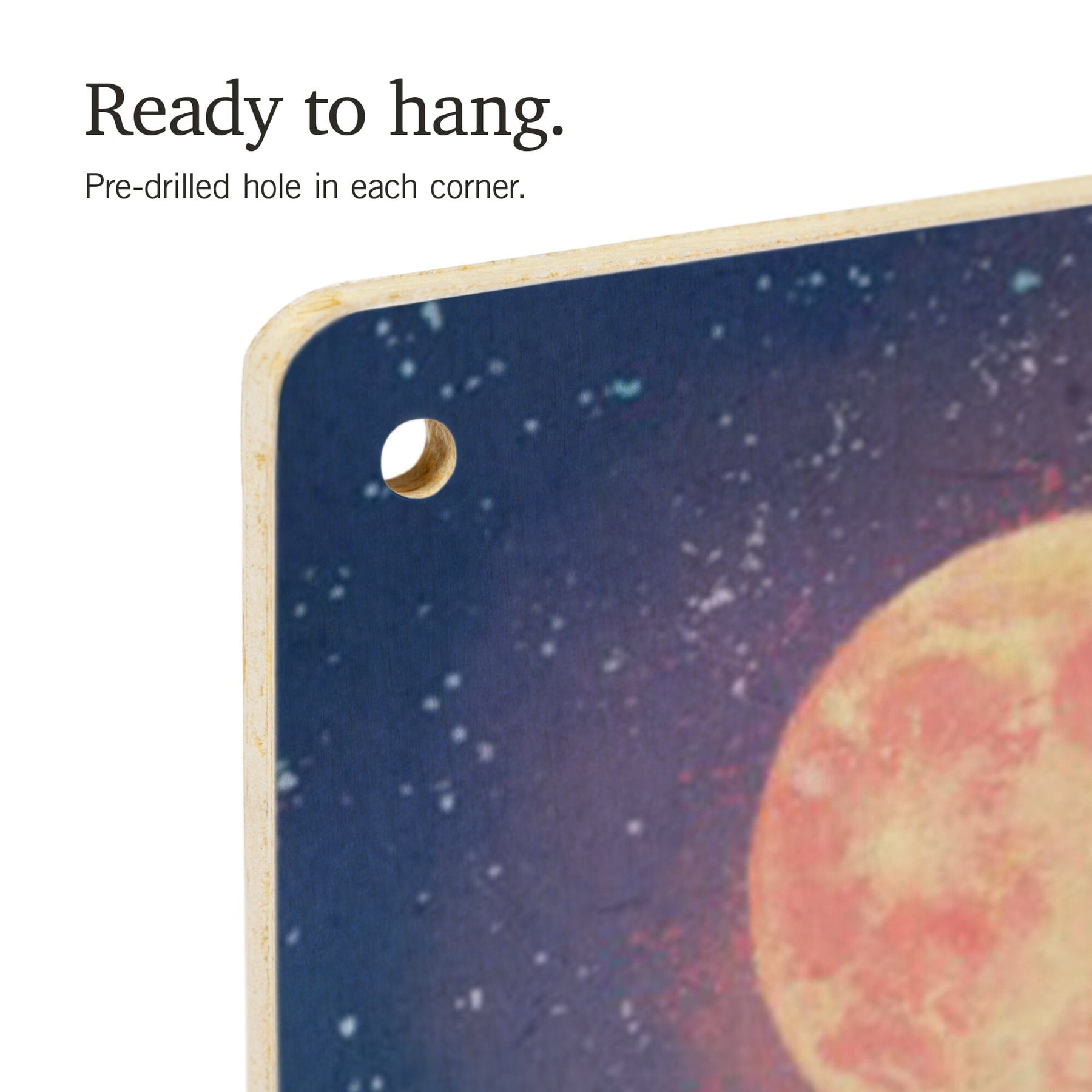 • Hole in each corner, ready to hang