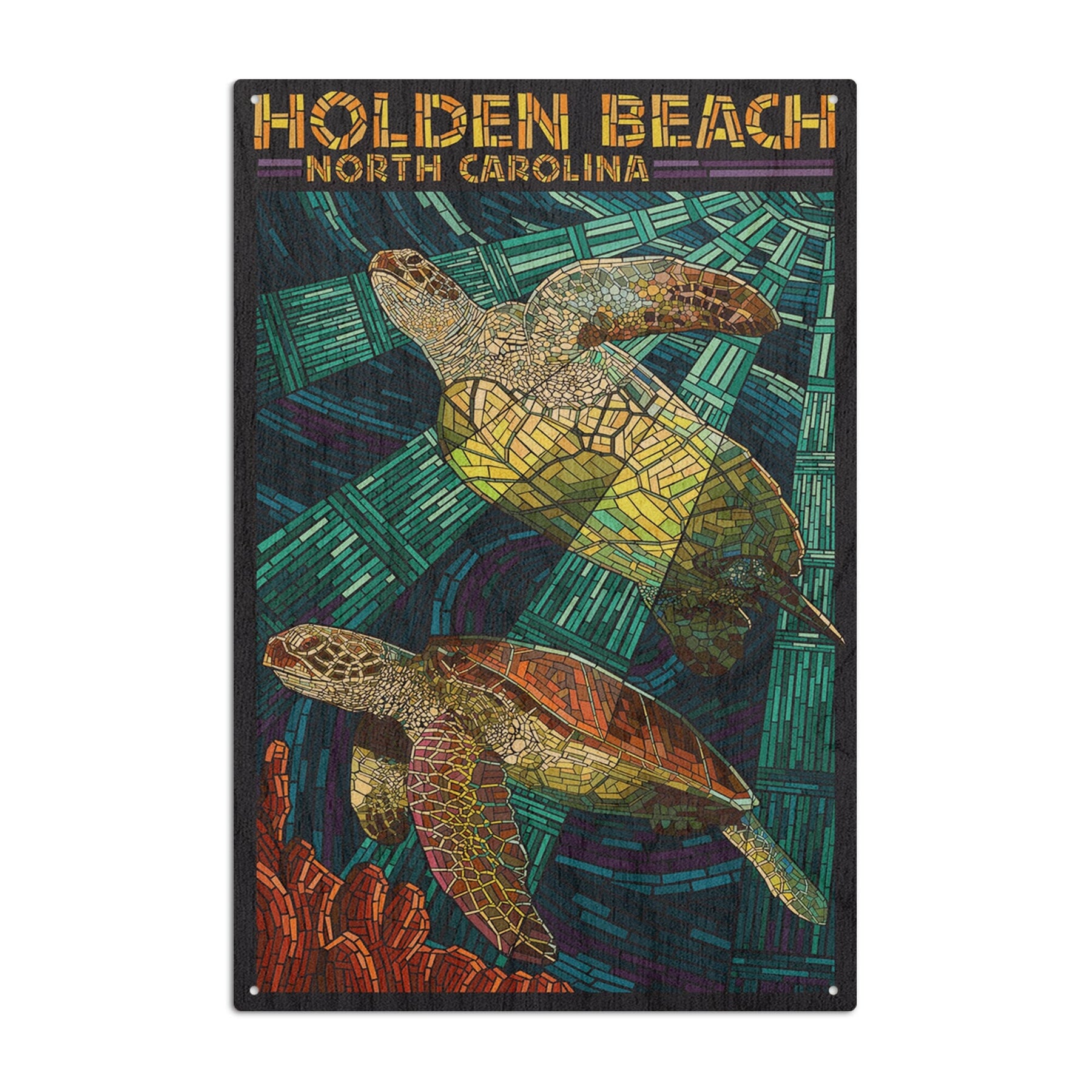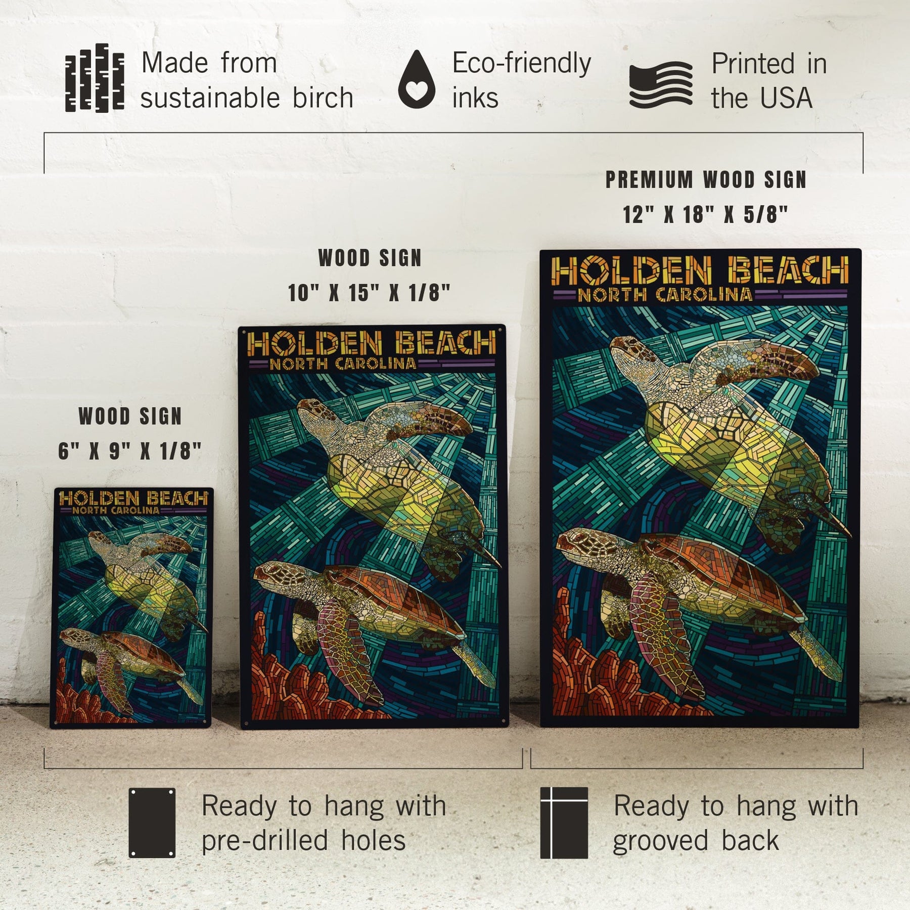 Holden Beach, North Carolina, Sea Turtle Paper Mosaic, Lantern Press Poster, Wood Signs and Postcards