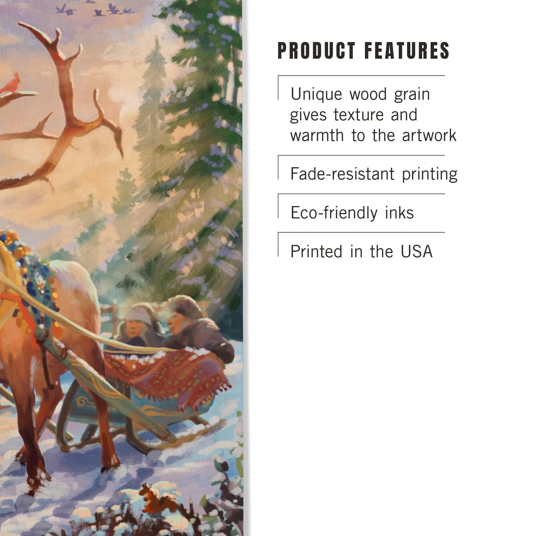 Holiday Tradition, Reindeer Sleigh Ride Through Mountain Snow, Wood Signs and Postcards Wood Lantern Press
