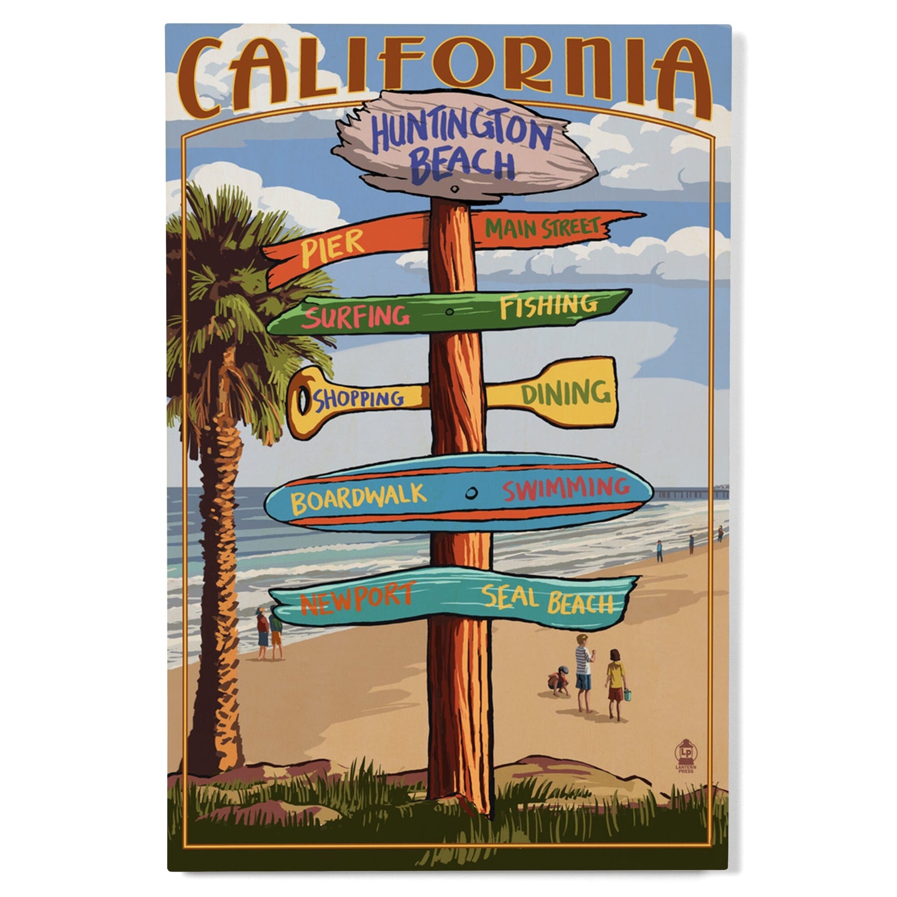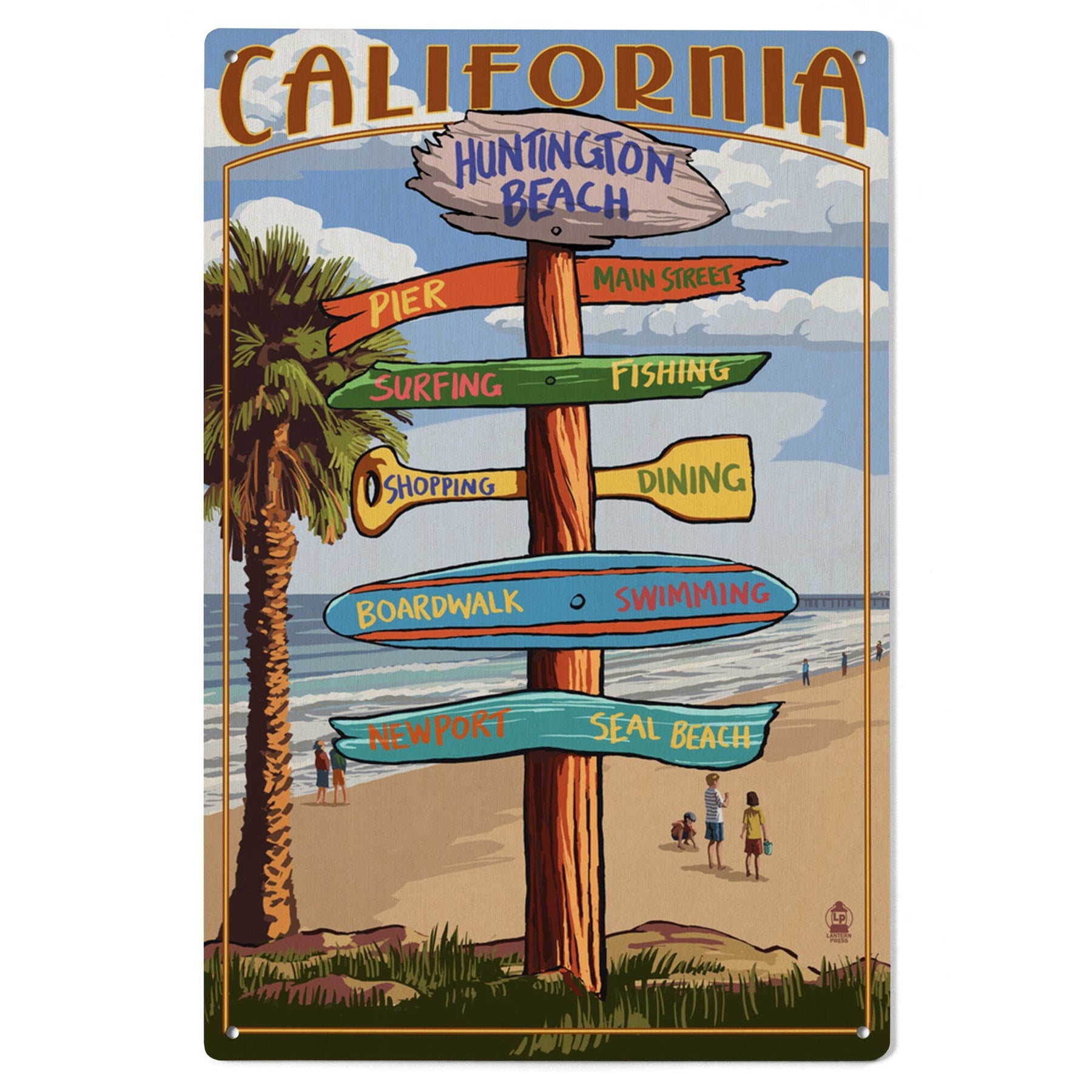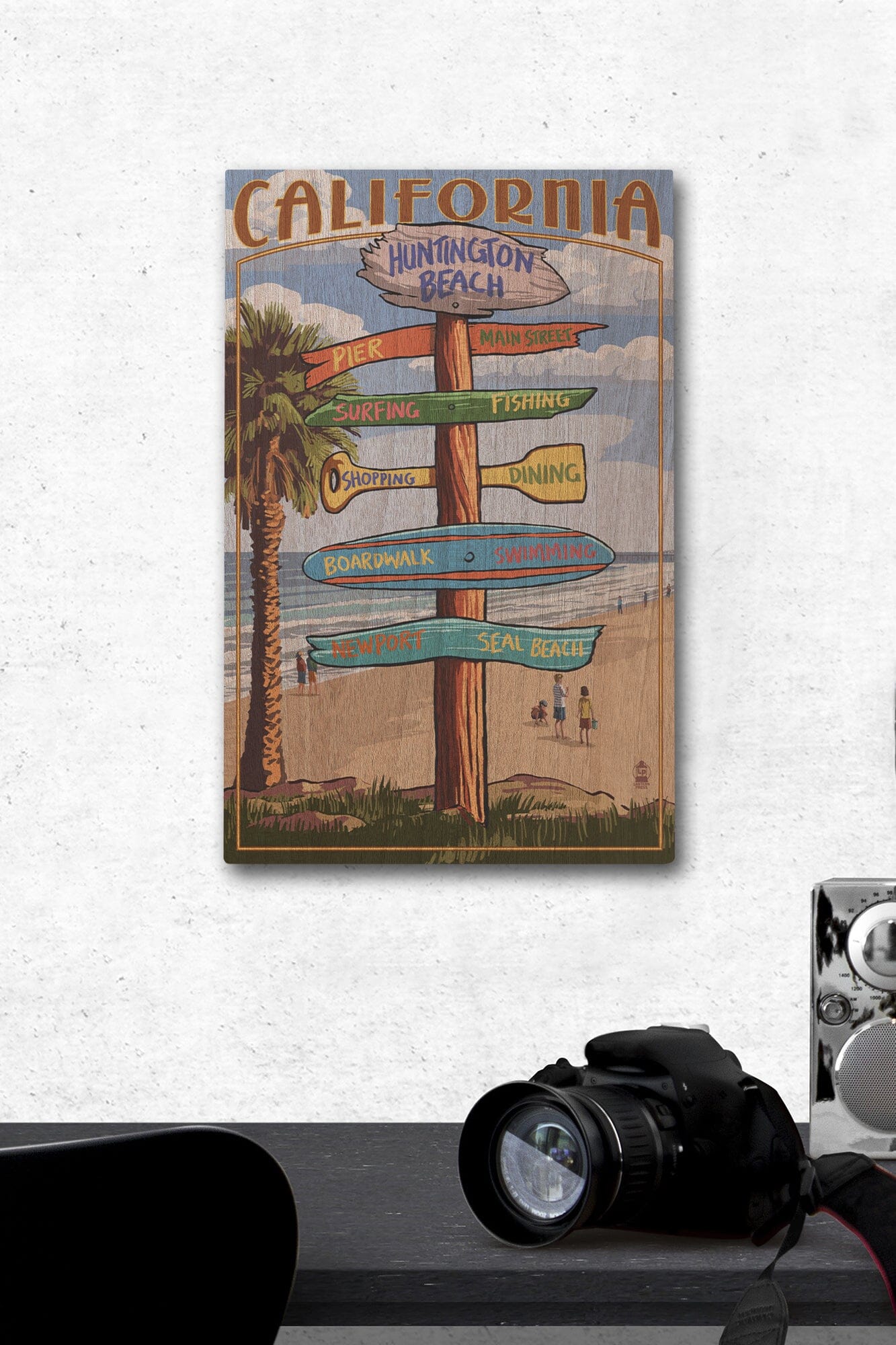 Huntington Beach, California, Destinations Sign, Lantern Press Artwork, Wood Signs and Postcards