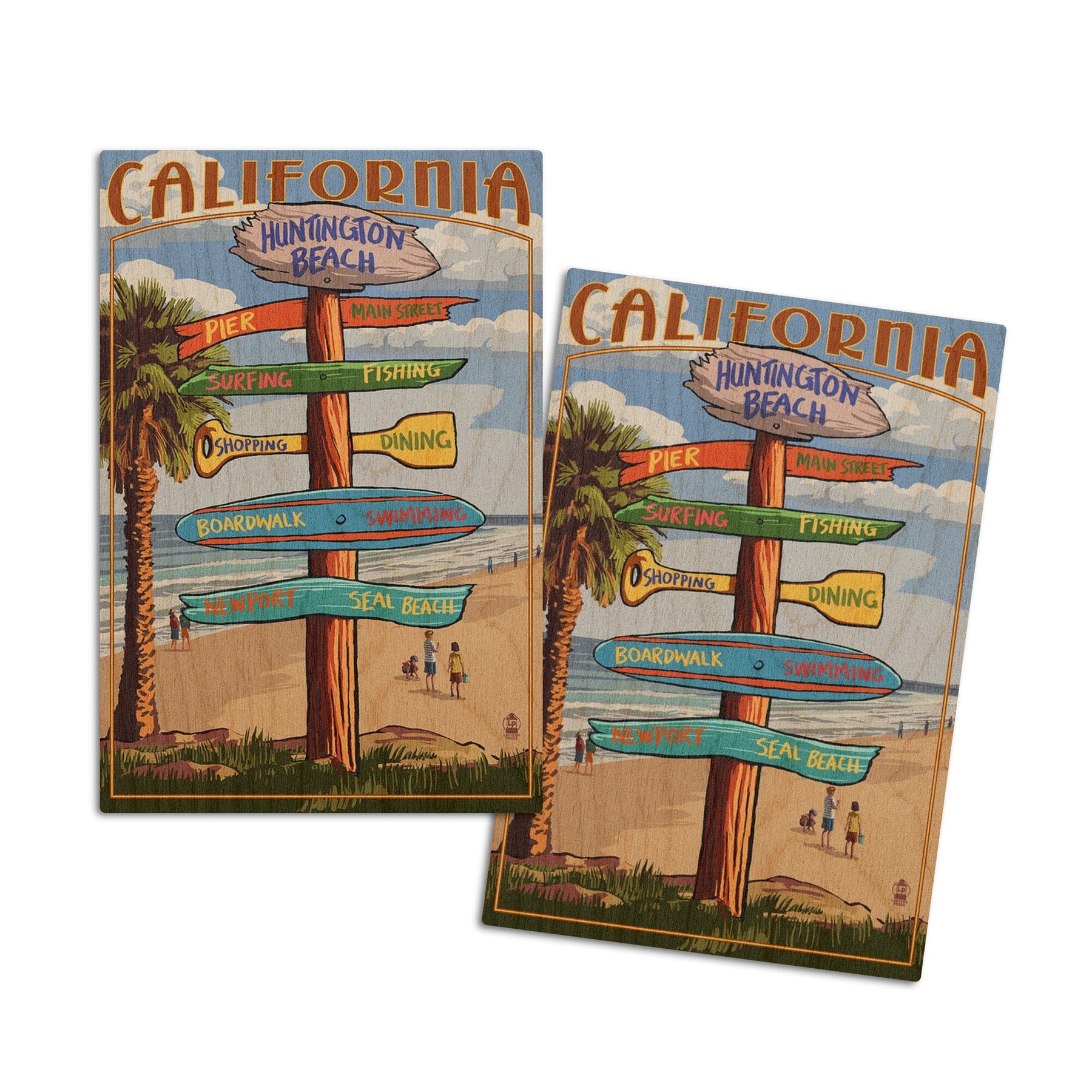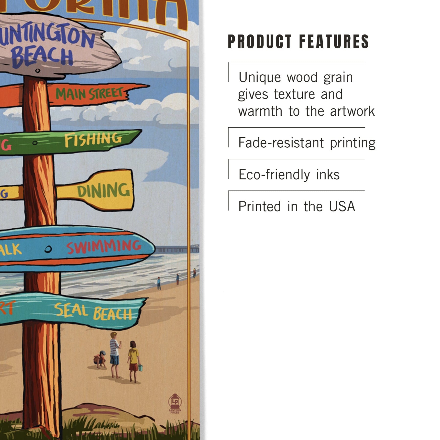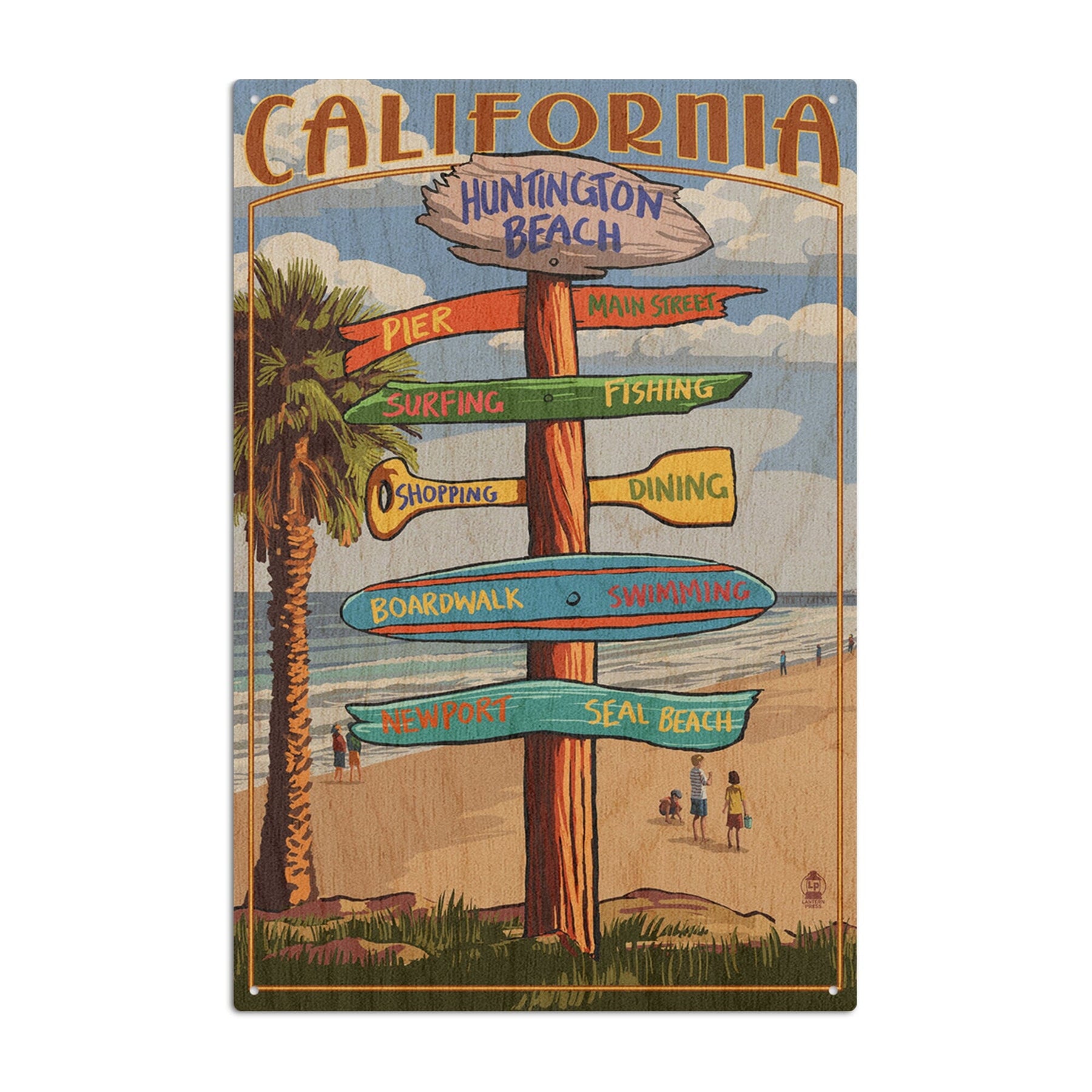 Huntington Beach, California, Destinations Sign, Lantern Press Artwork, Wood Signs and Postcards
