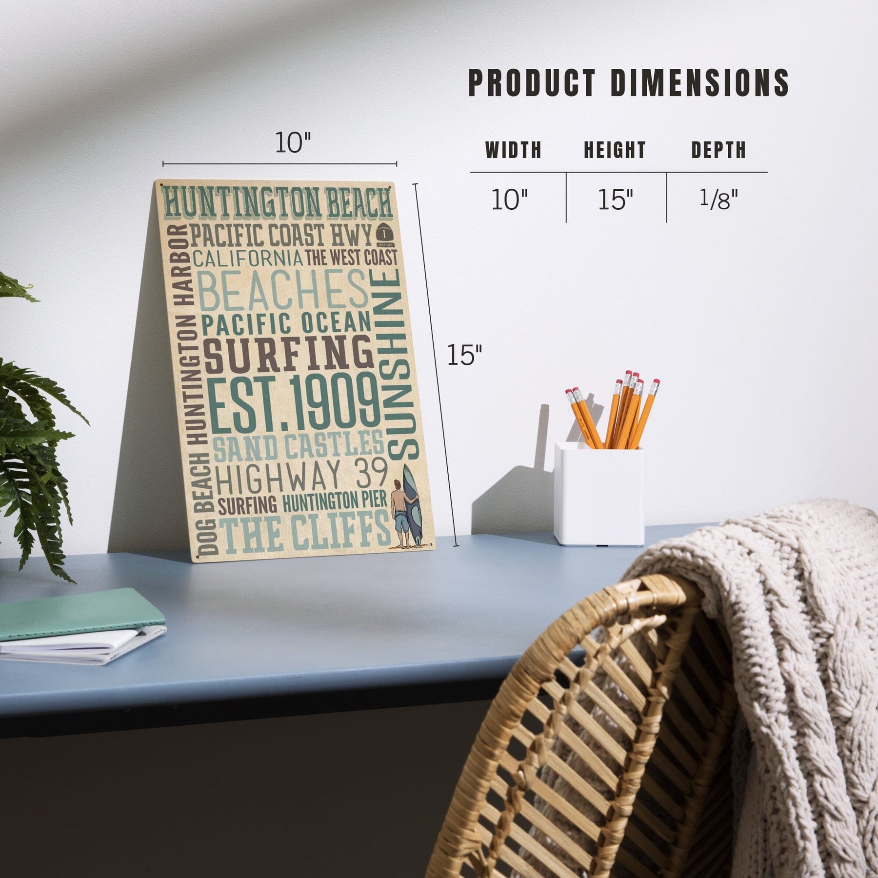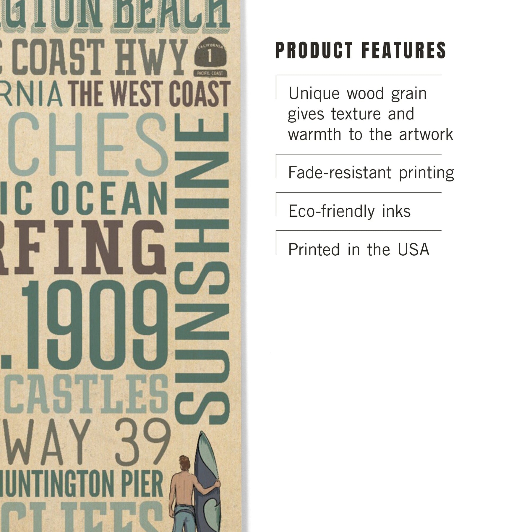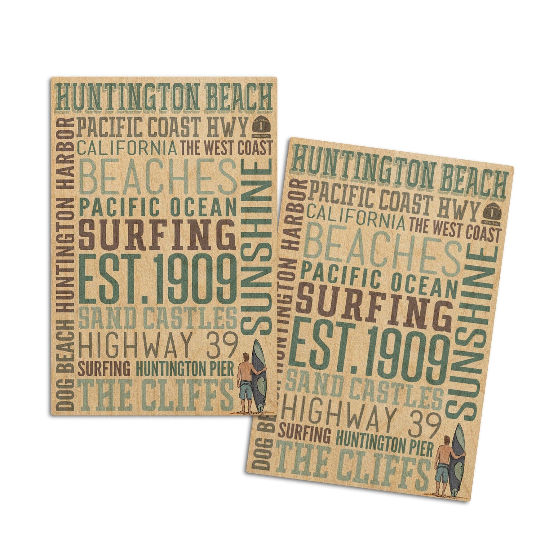 Huntington Beach, California, Typography, Lantern Press Artwork, Wood Signs and Postcards