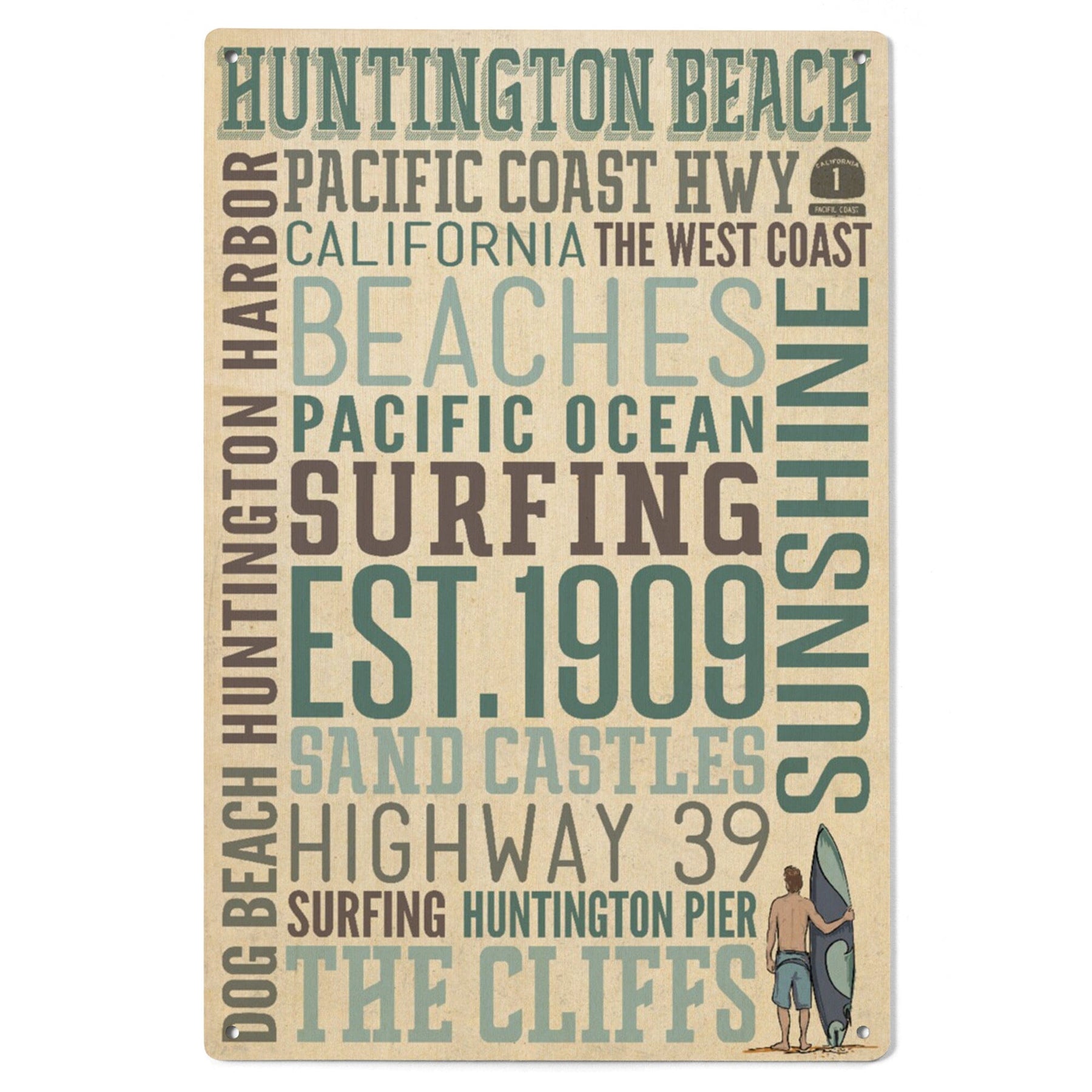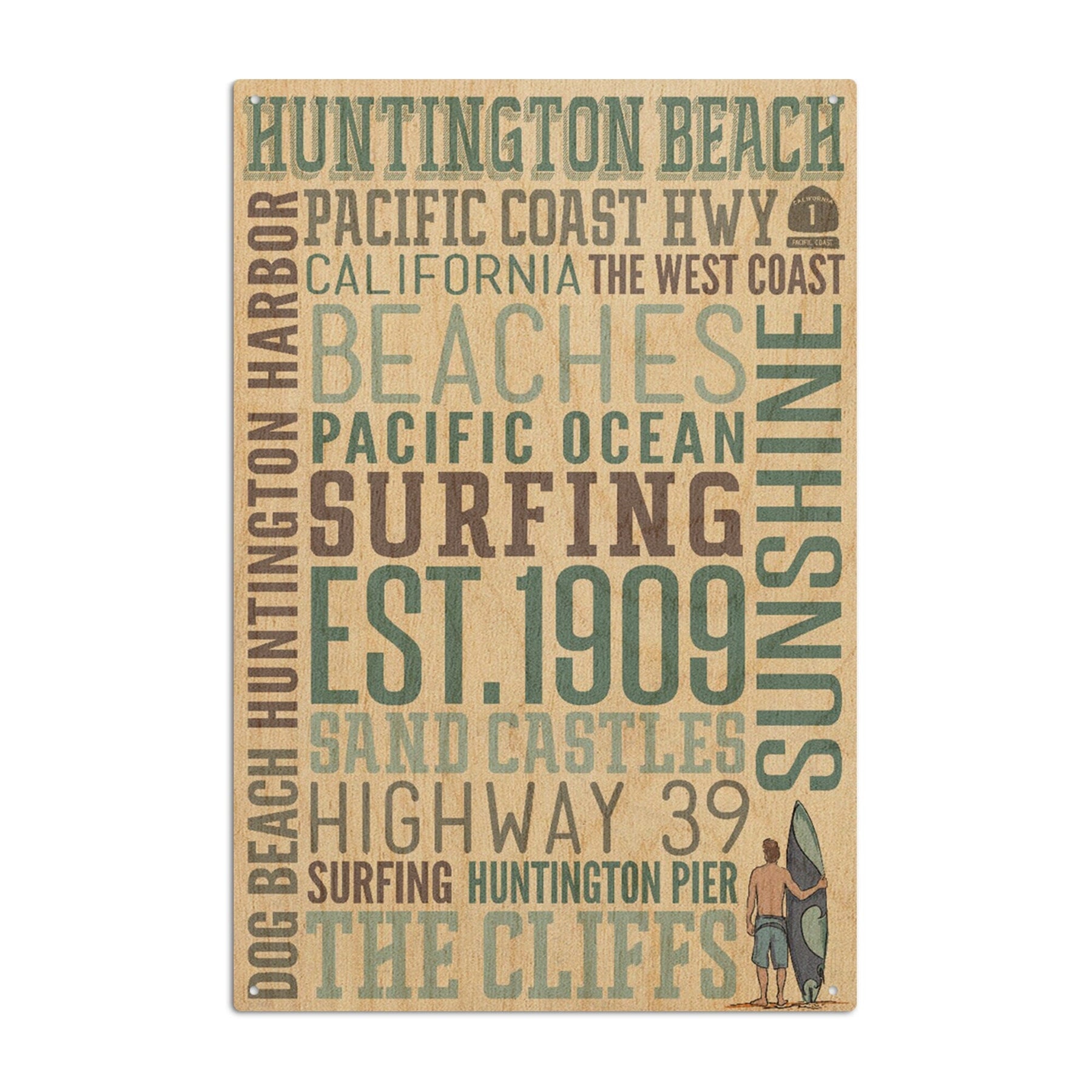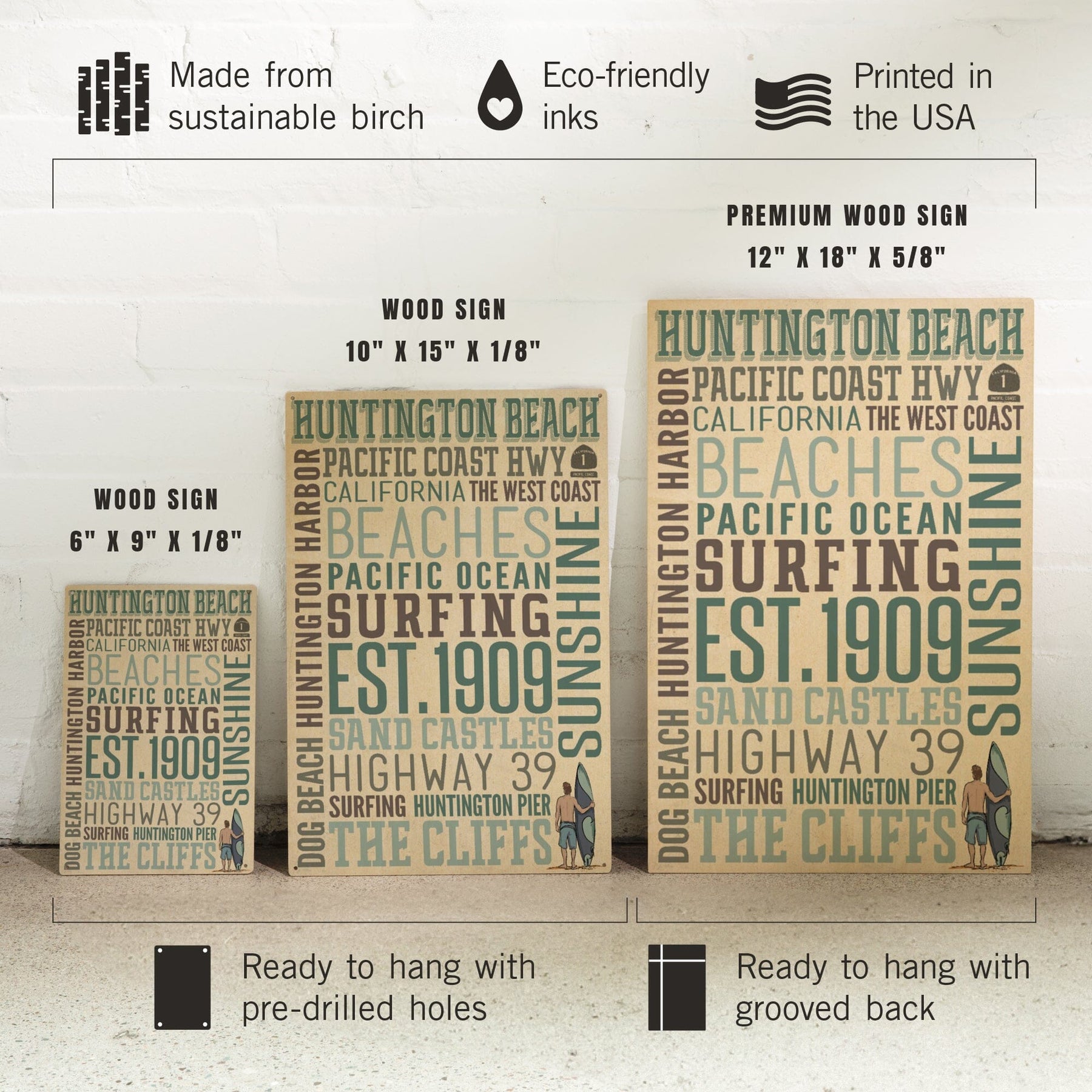 Huntington Beach, California, Typography, Lantern Press Artwork, Wood Signs and Postcards