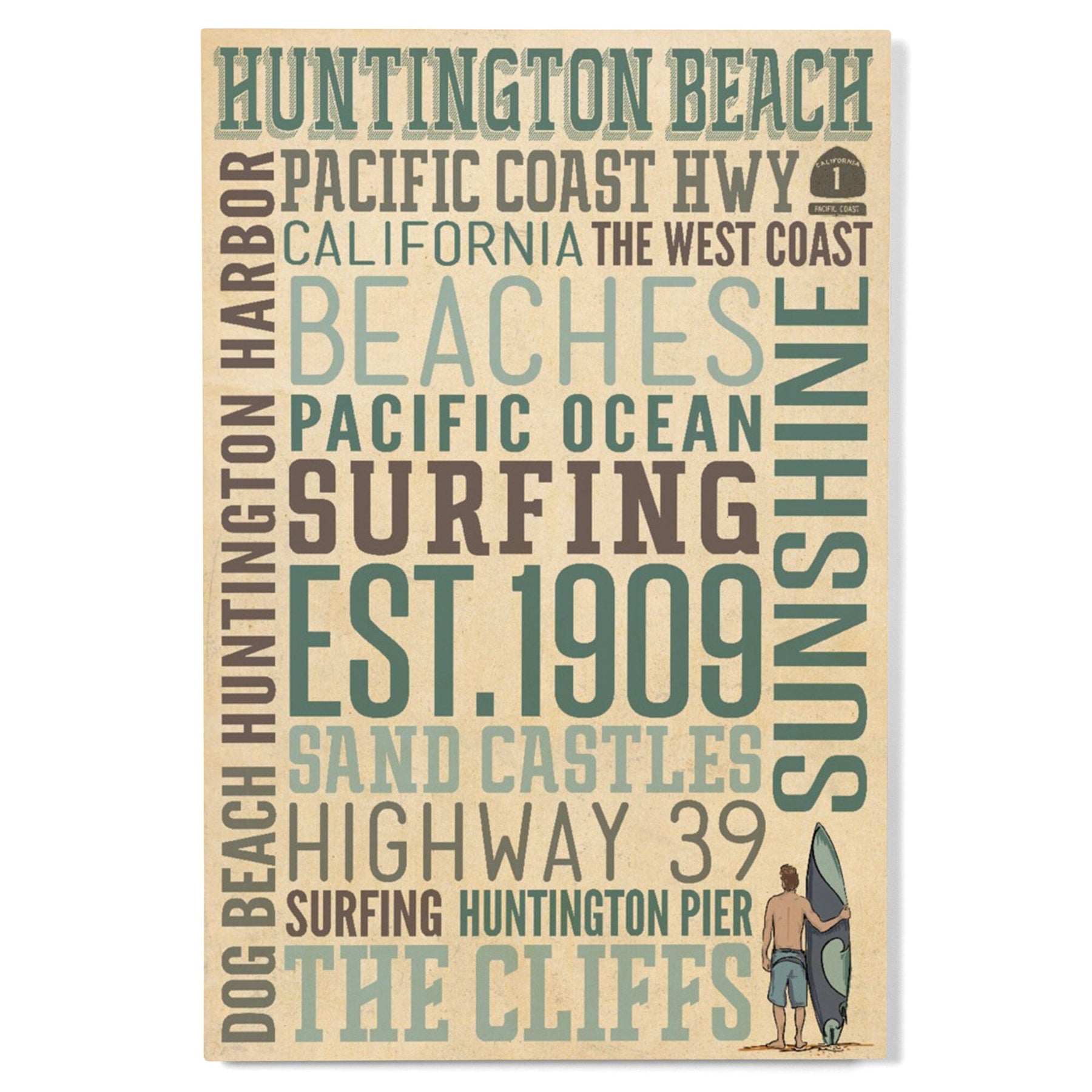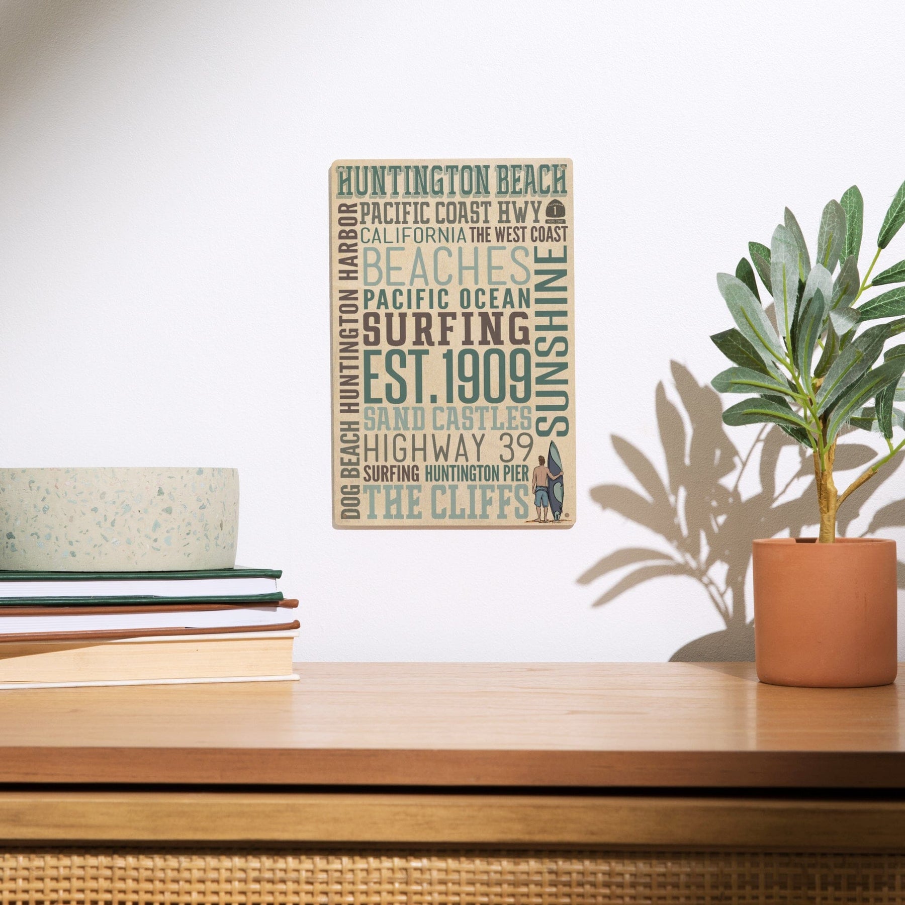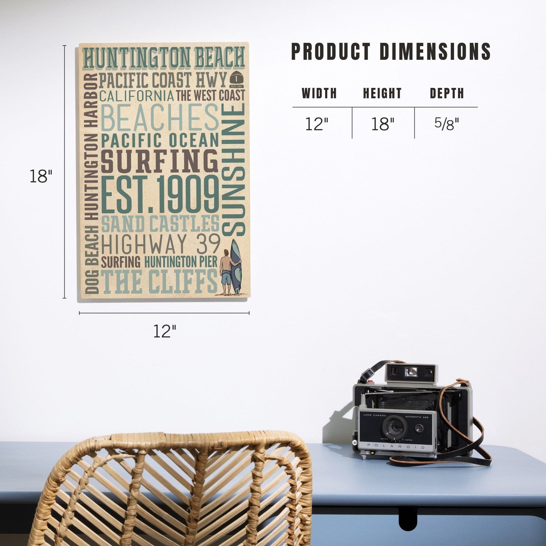 Huntington Beach, California, Typography, Lantern Press Artwork, Wood Signs and Postcards - Lantern Press