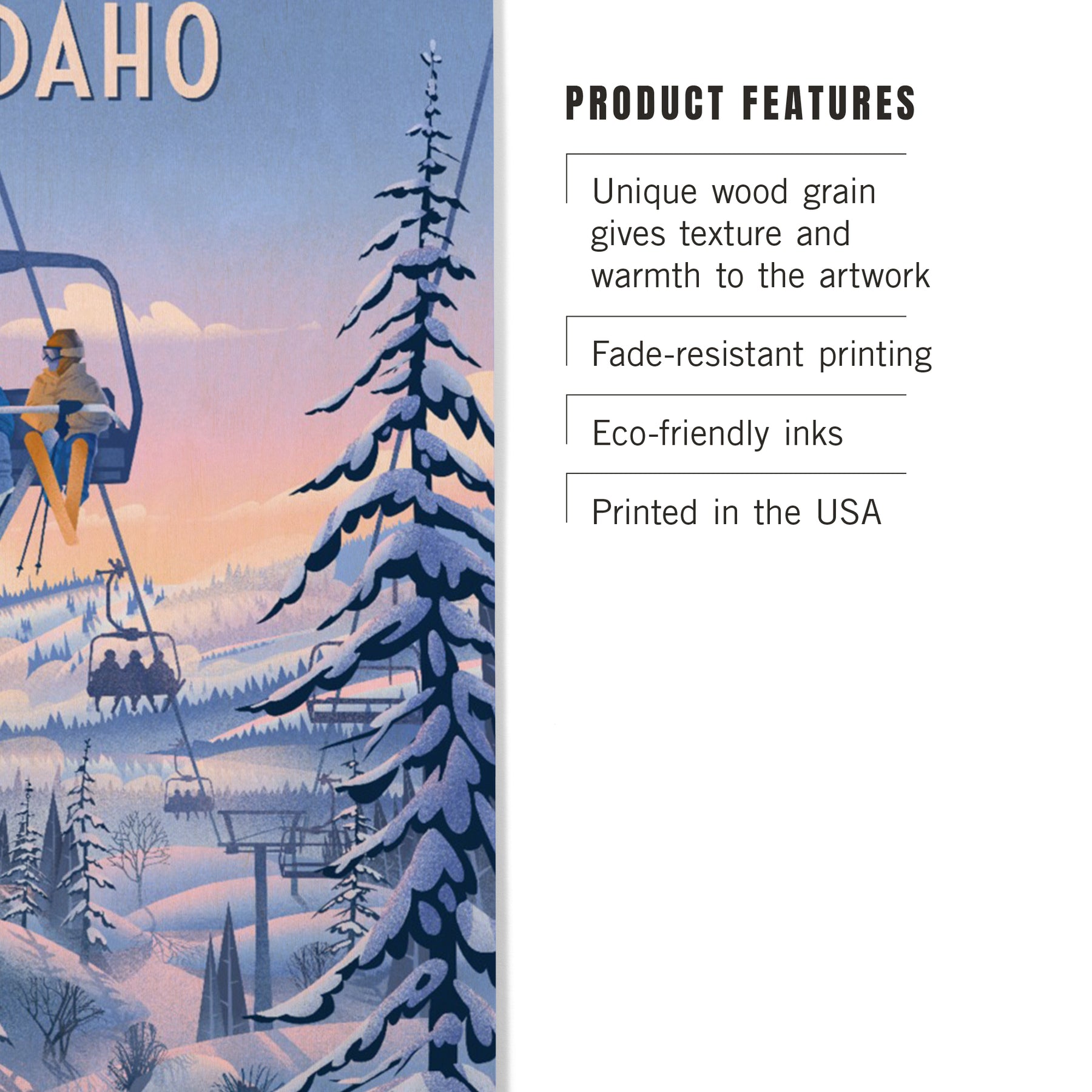 Idaho, Chill on the Uphill, Ski Lift, Wood Signs and Postcards Wood Lantern Press