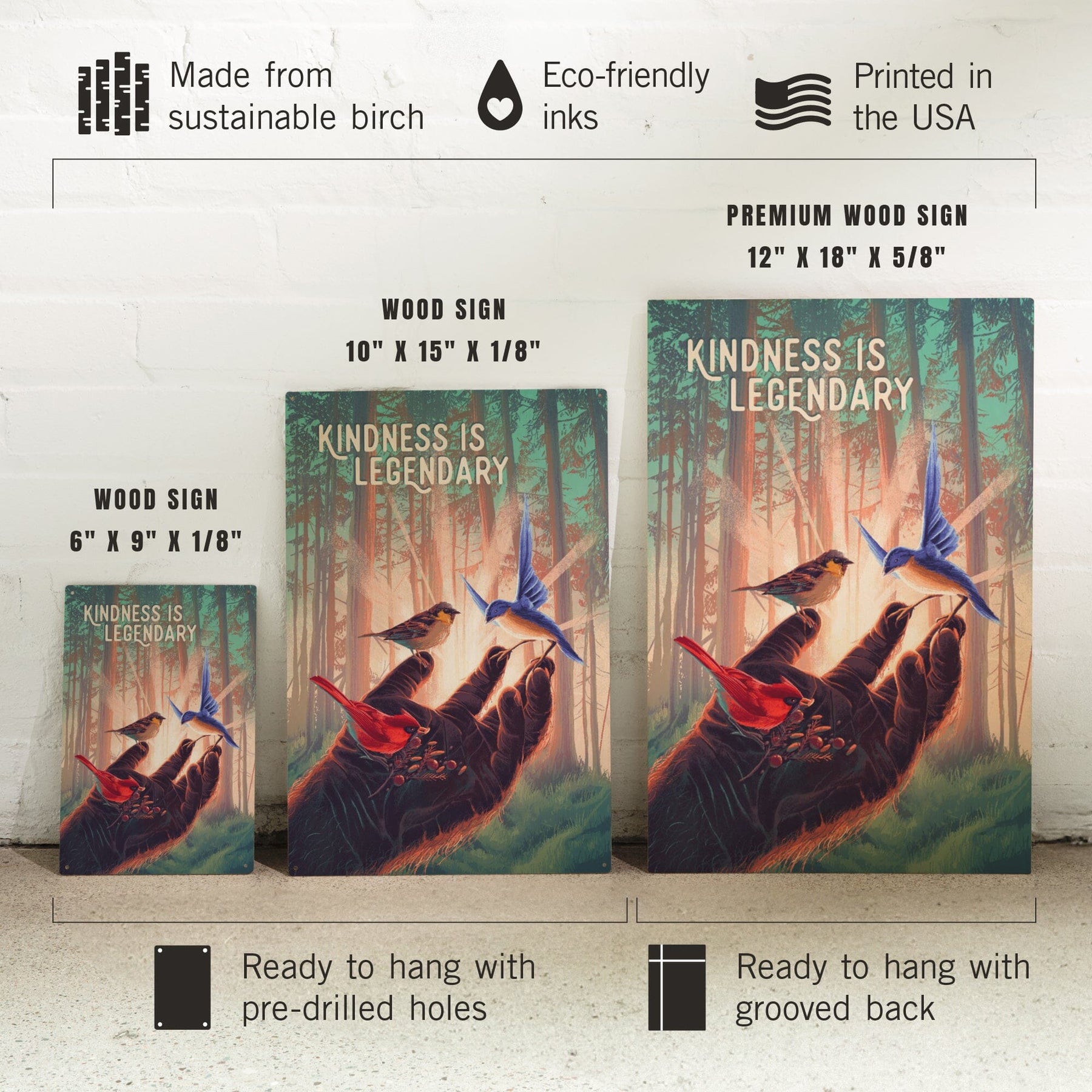 Kindness is Legendary, Bigfoot With Birds, Wood Signs and Postcards