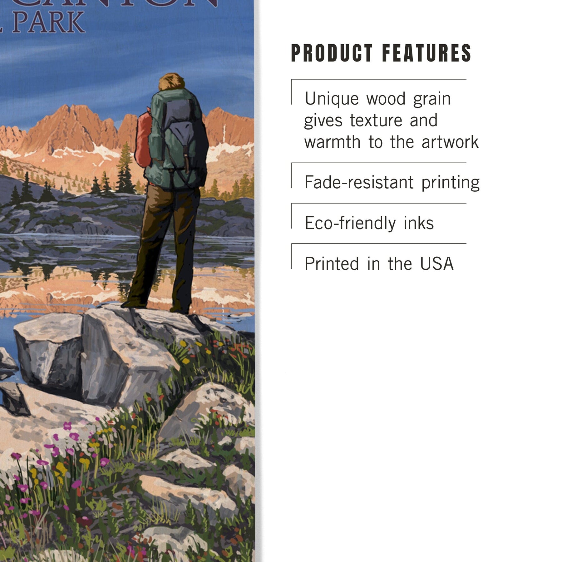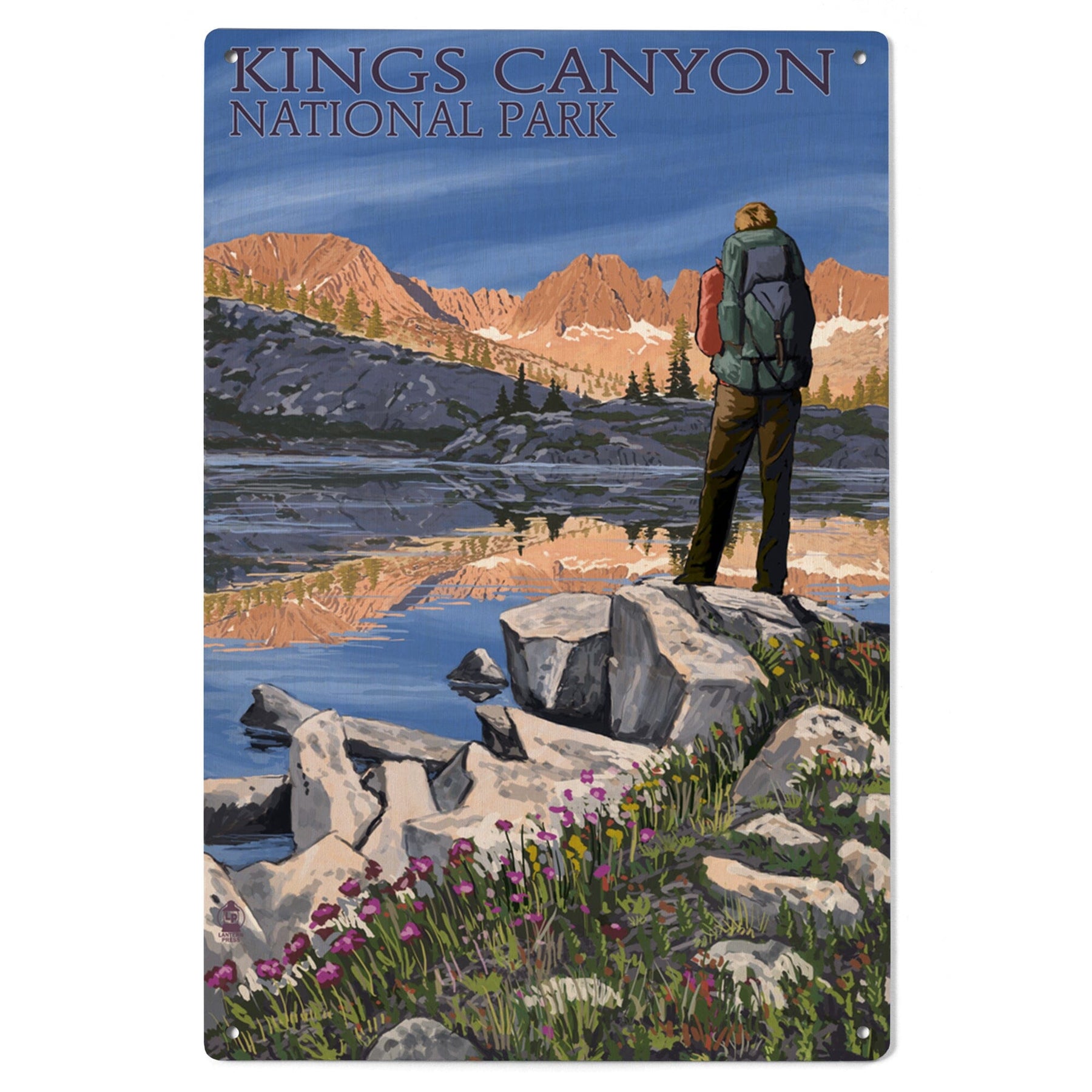 Kings Canyon National Park, California, Hiker & Lake, Lantern Press Artwork, Wood Signs and Postcards