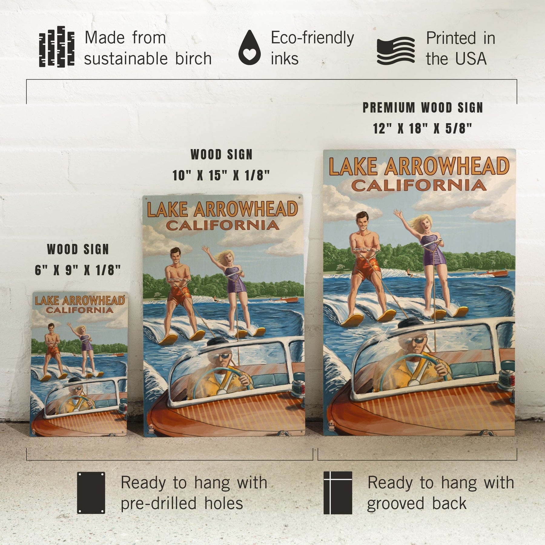 Lake Arrowhead, California, Water Skiing Scene, Lantern Press Artwork, Wood Signs and Postcards