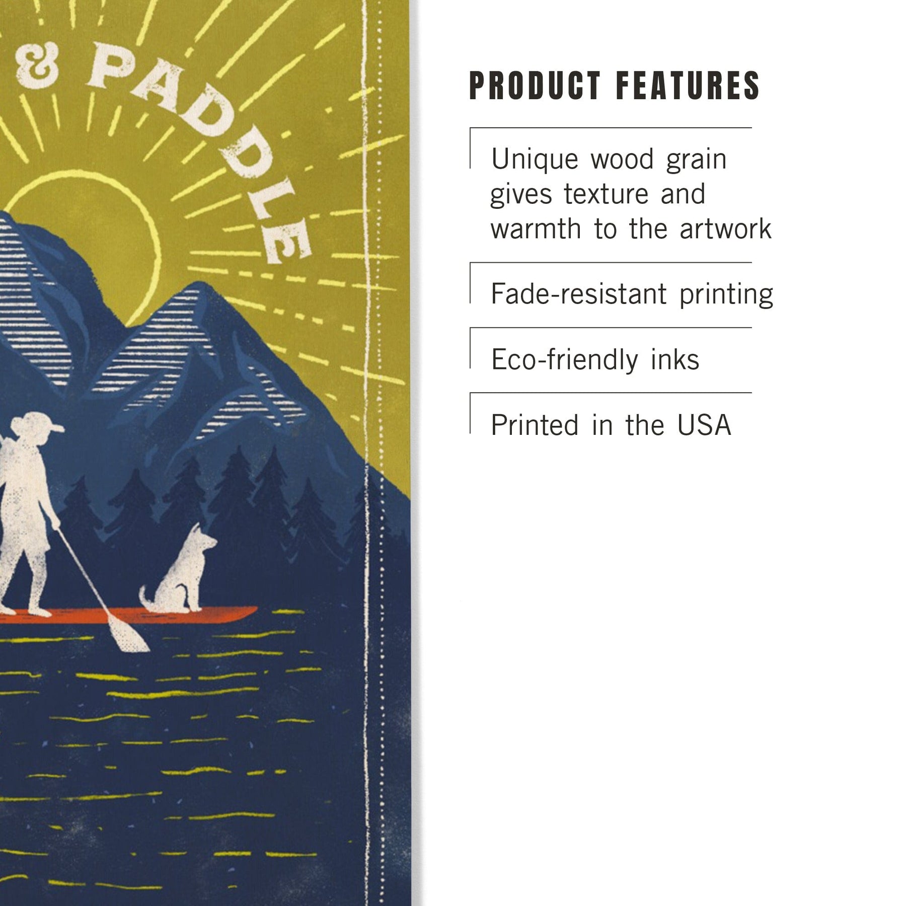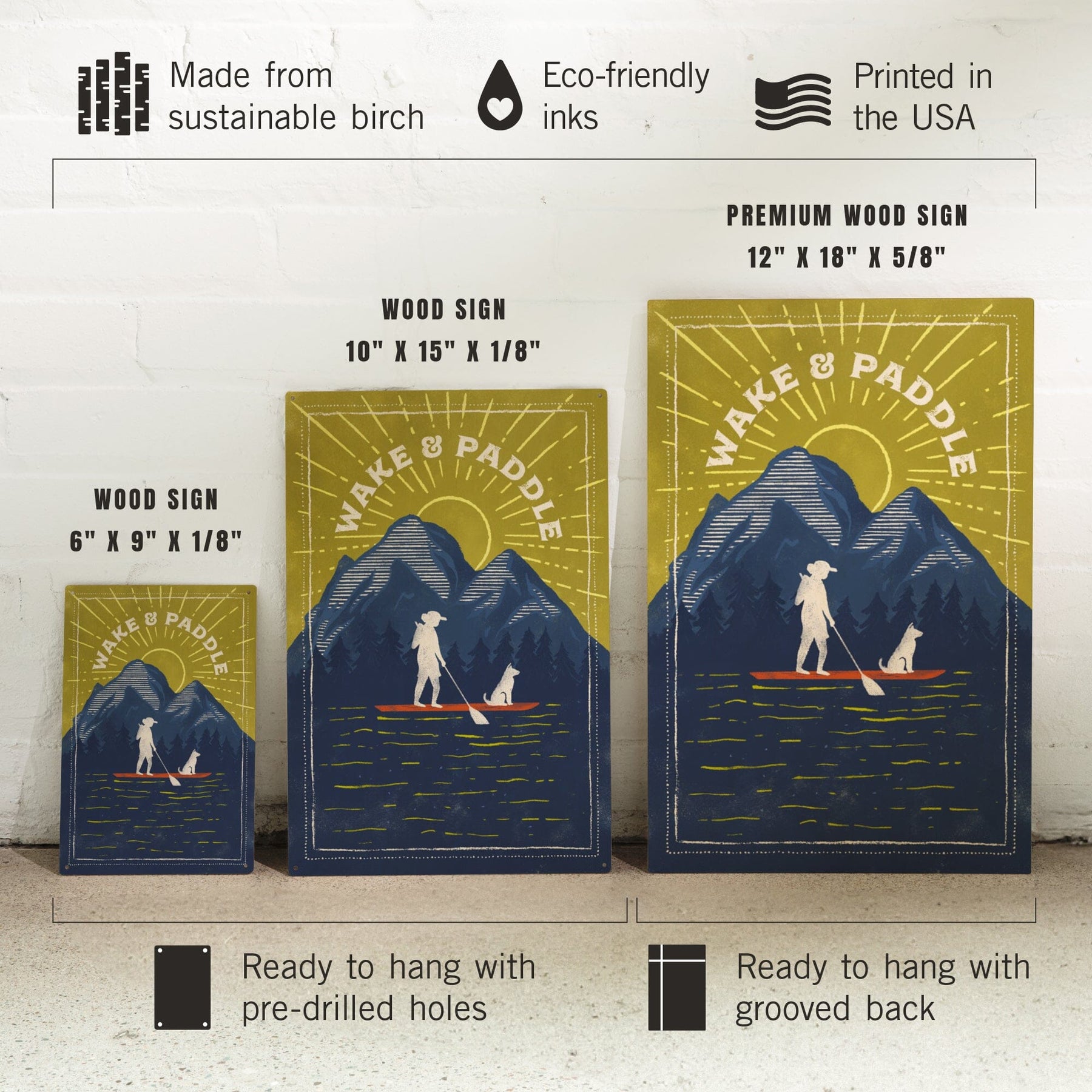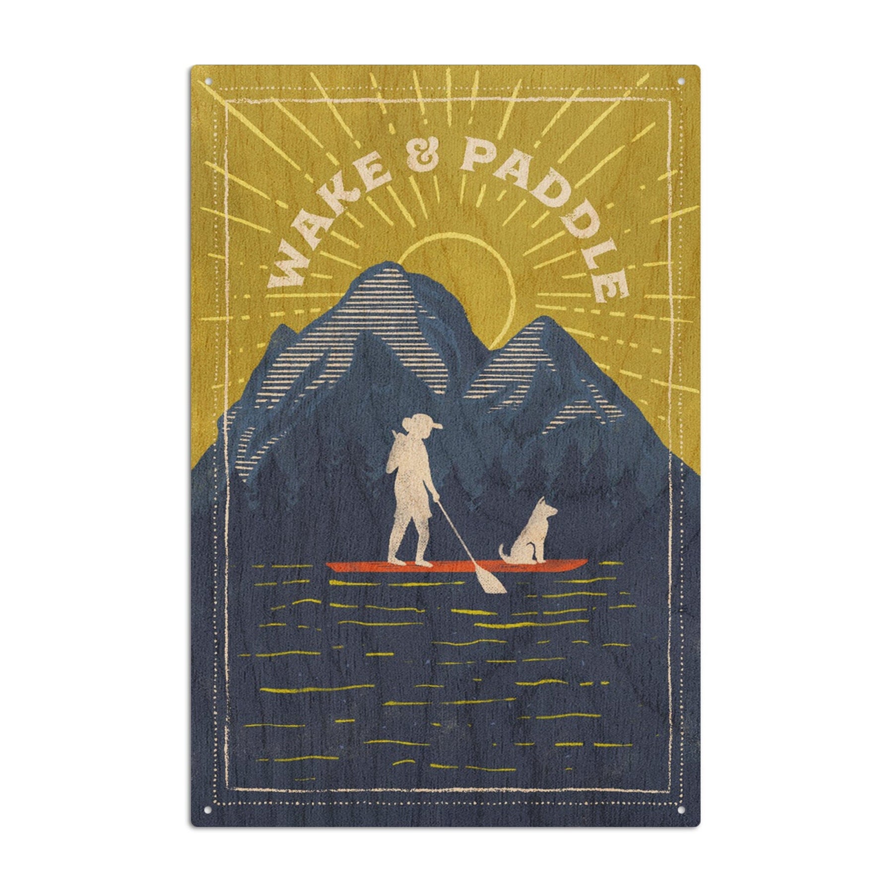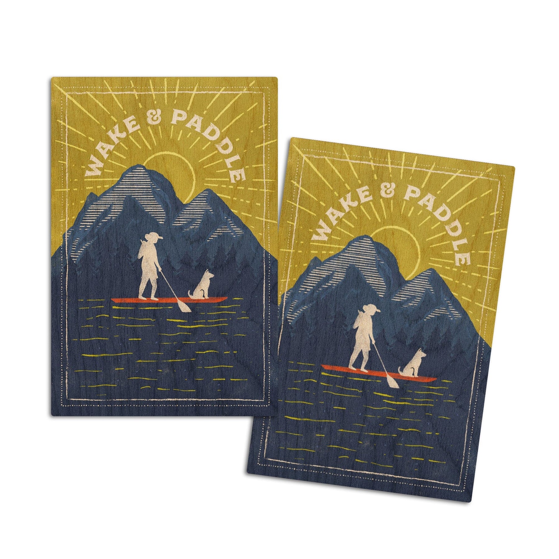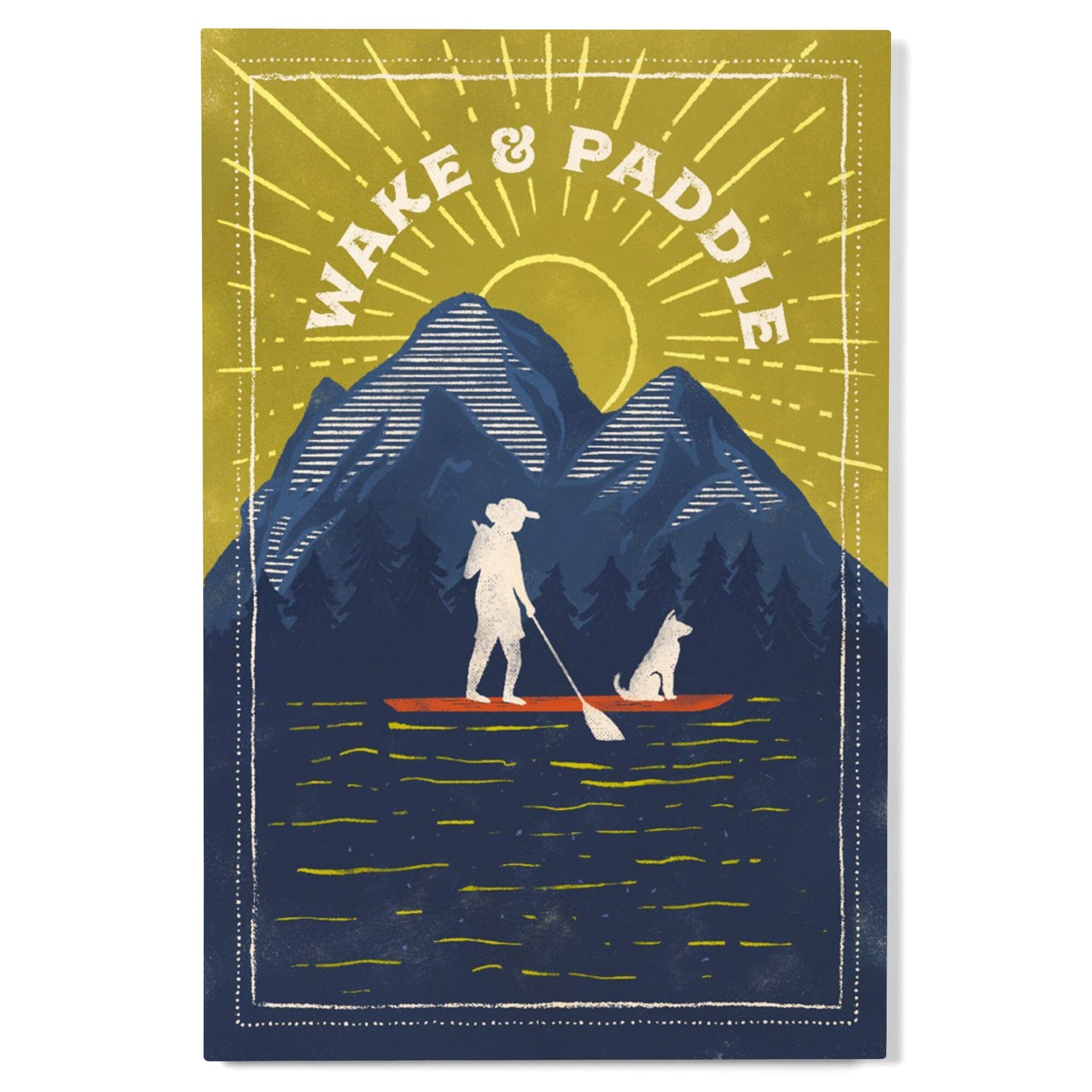 Lake Life Series, Wake And Paddle, Wood Signs and Postcards - Lantern Press