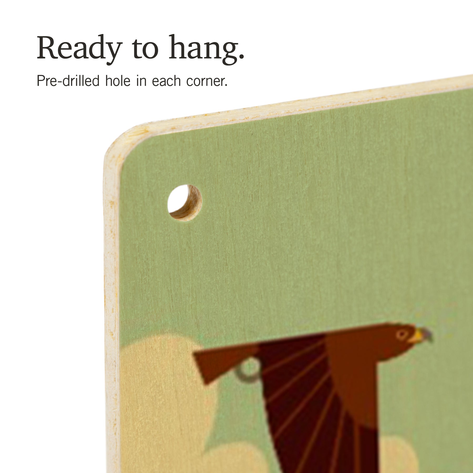 • Hole in each corner, ready to hang