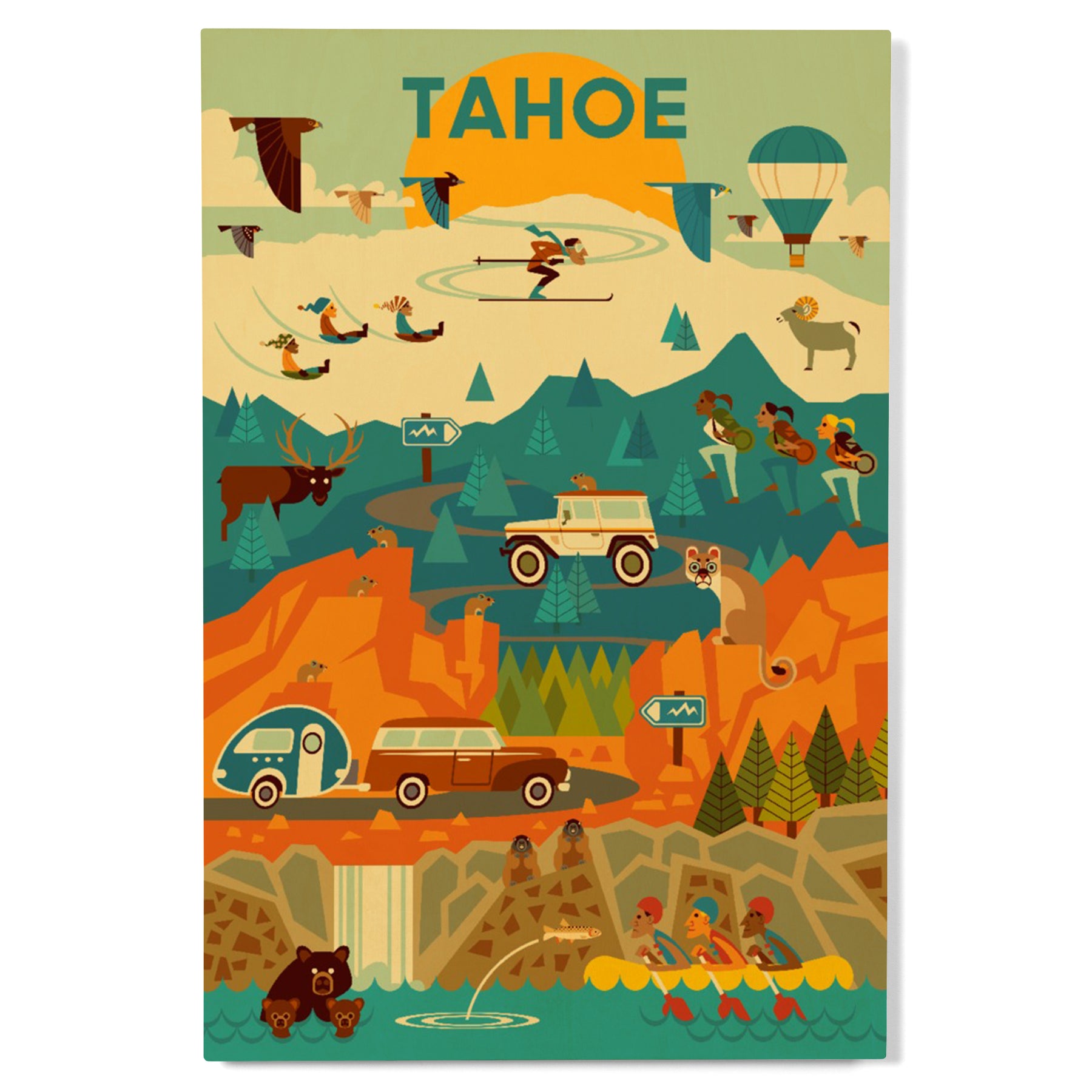 Lake Tahoe, California, Geometric, Tahoe, Wood Signs and Postcards Wood Lantern Press