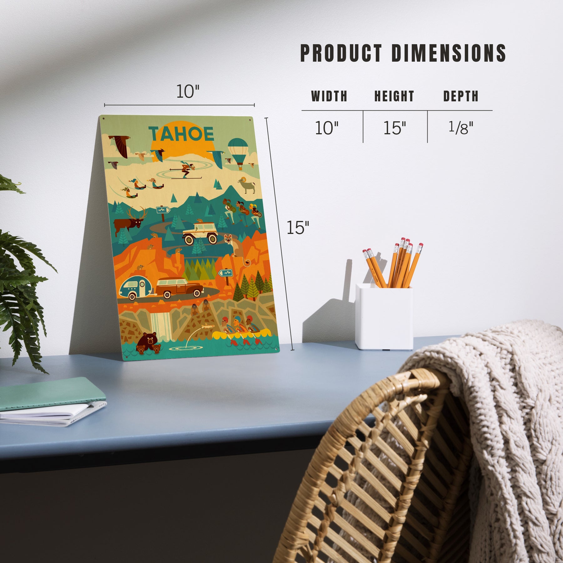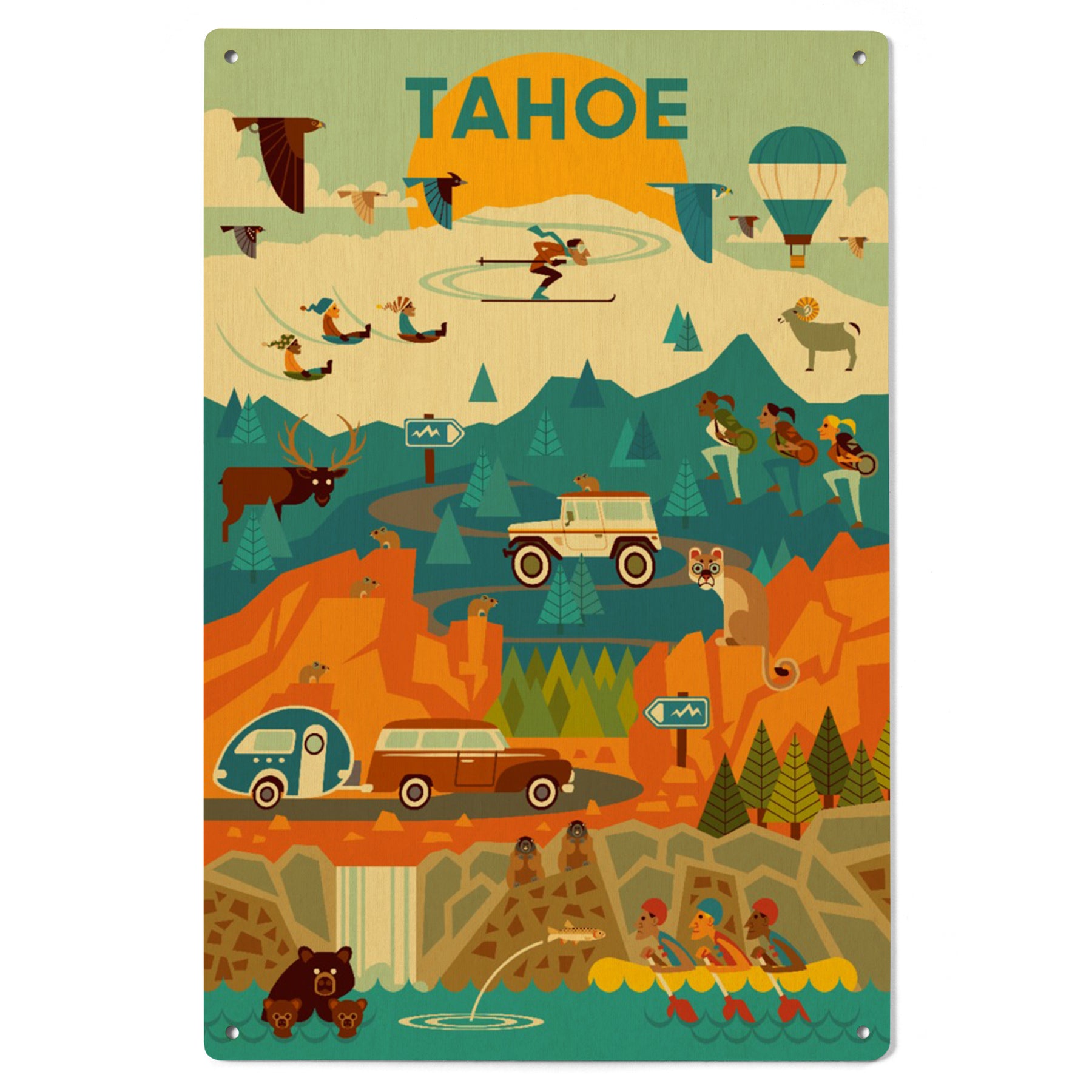 Lake Tahoe, California, Geometric, Tahoe, Wood Signs and Postcards