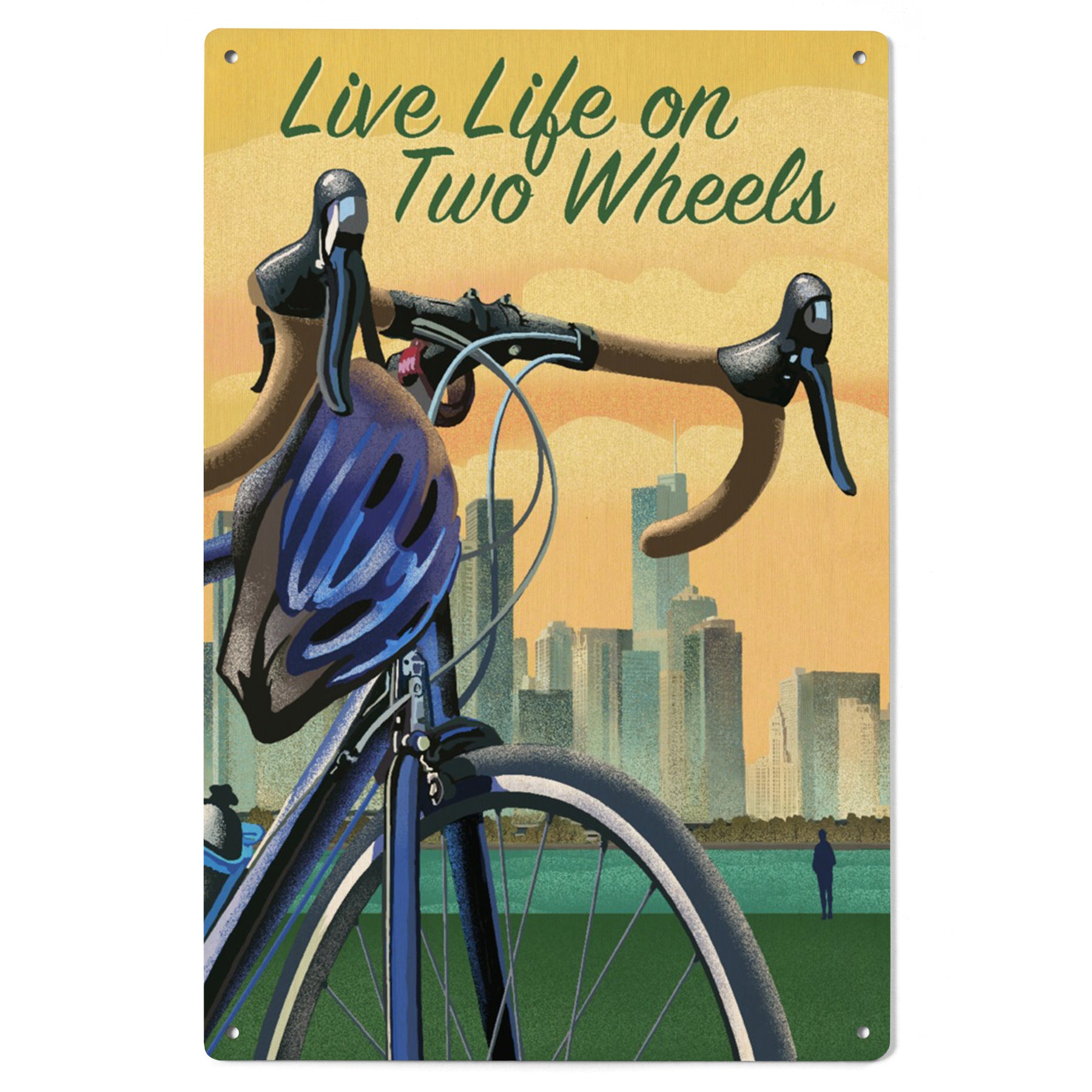 Live Life on Two Wheels, Bicycle and City, Lithograph, Wood Signs and Postcards