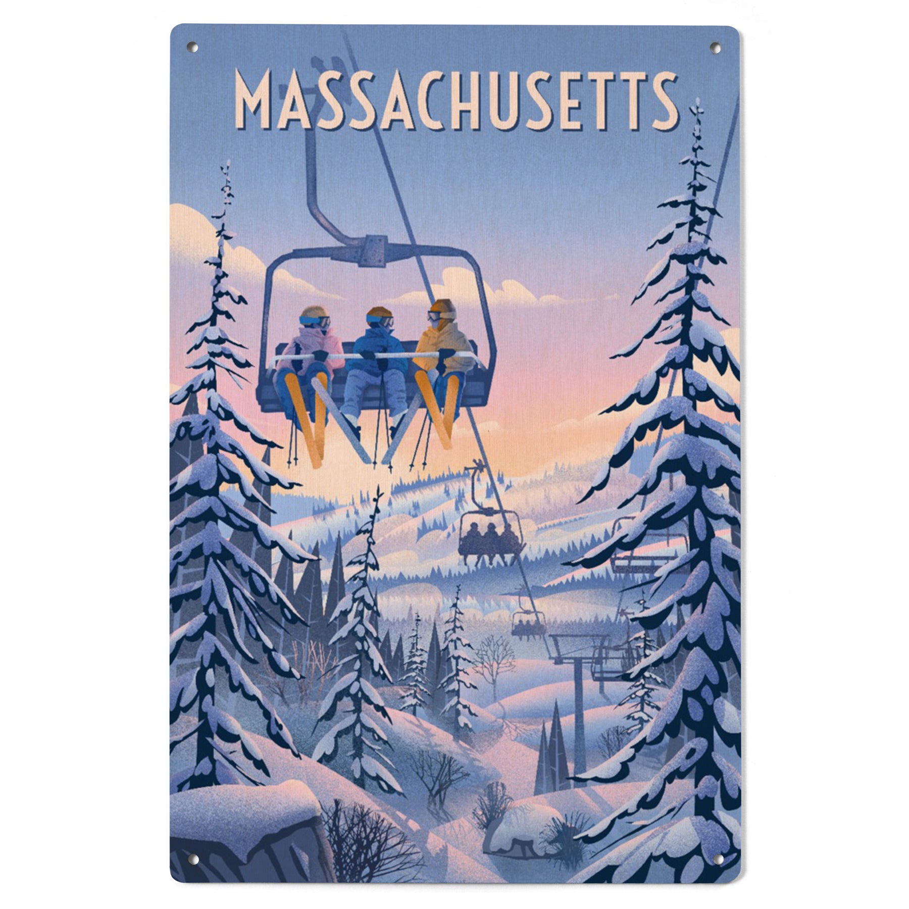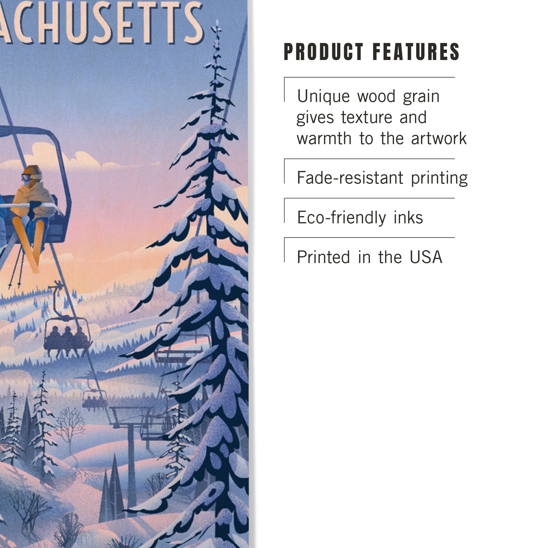 Massachusetts, Chill on the Uphill, Ski Lift, Wood Signs and Postcards Wood Lantern Press