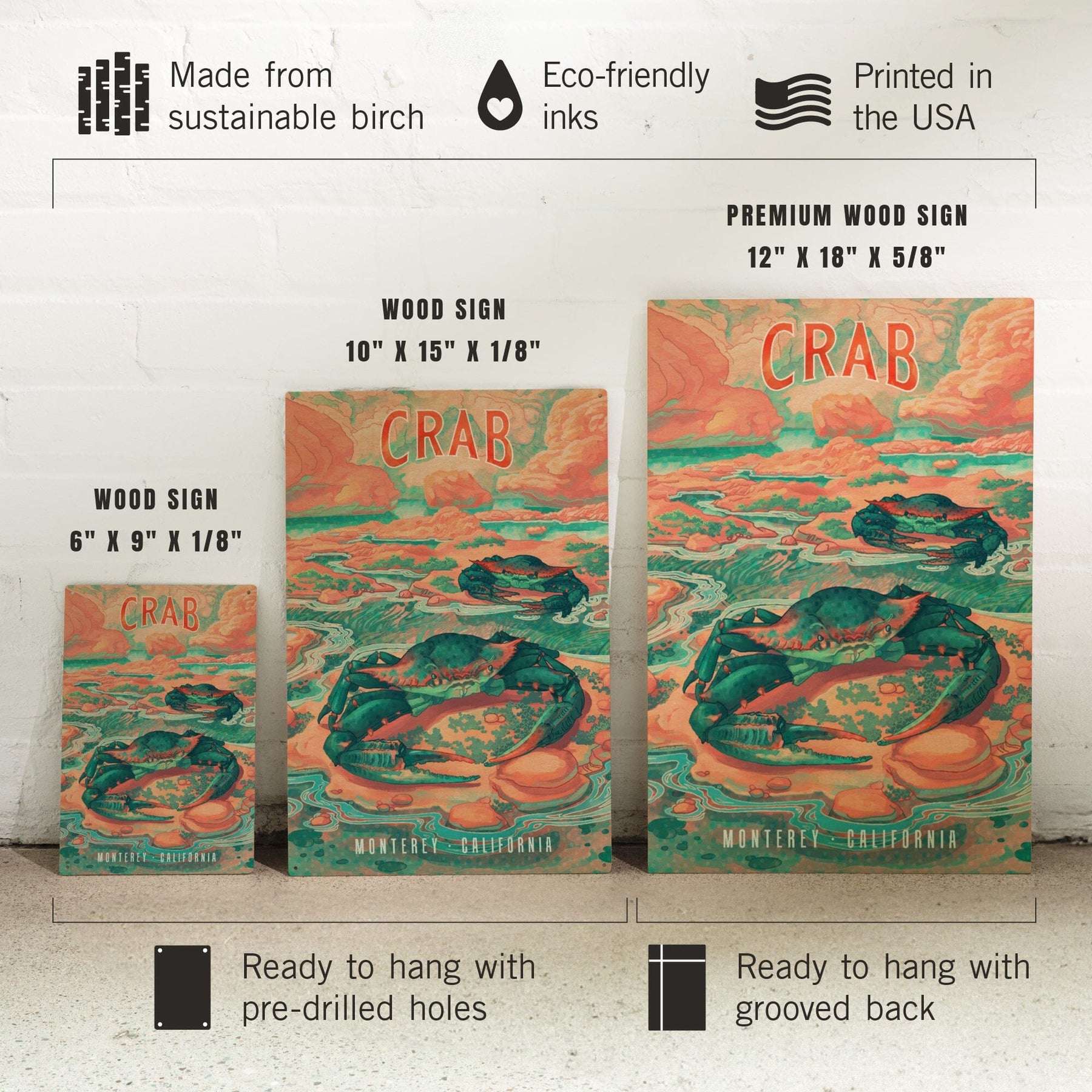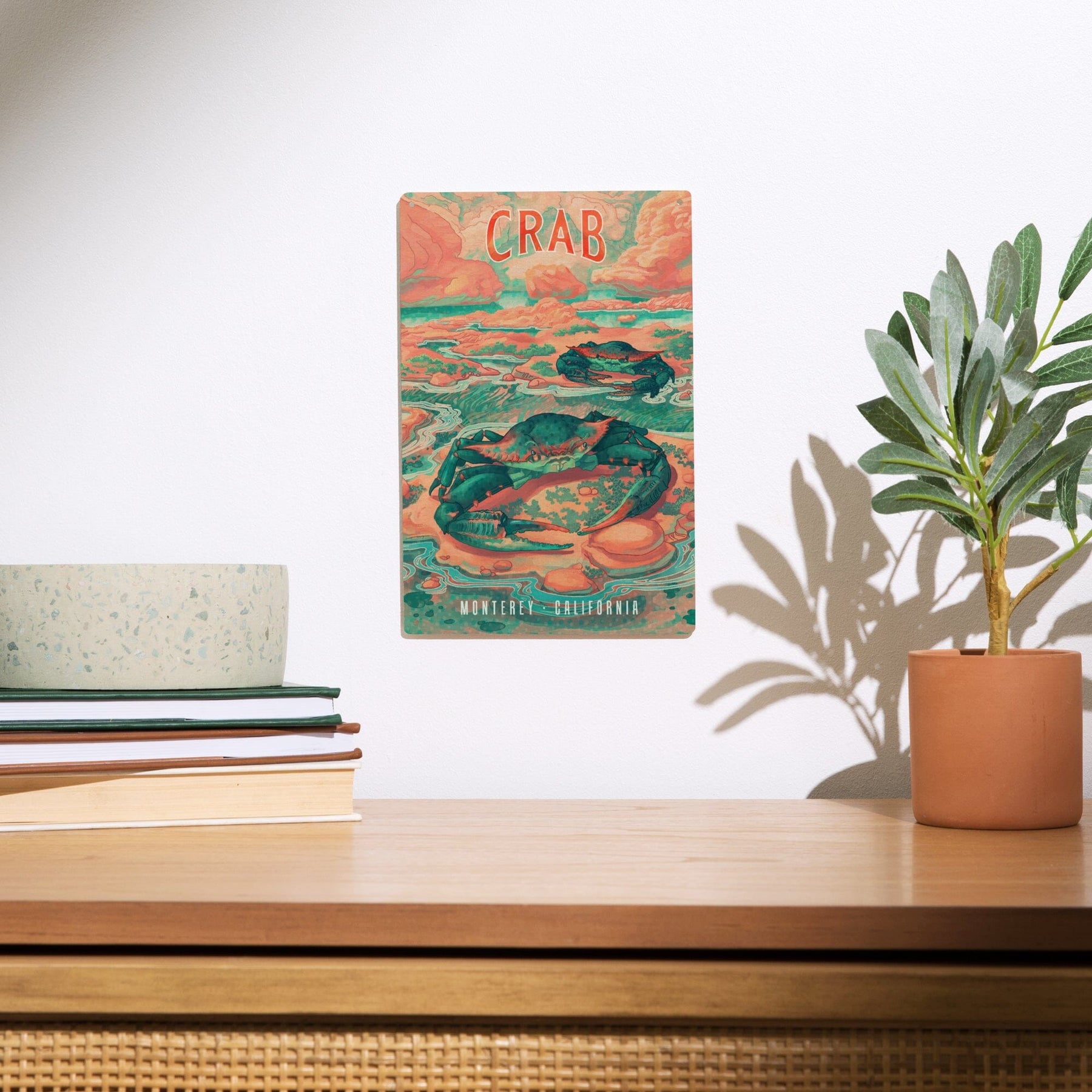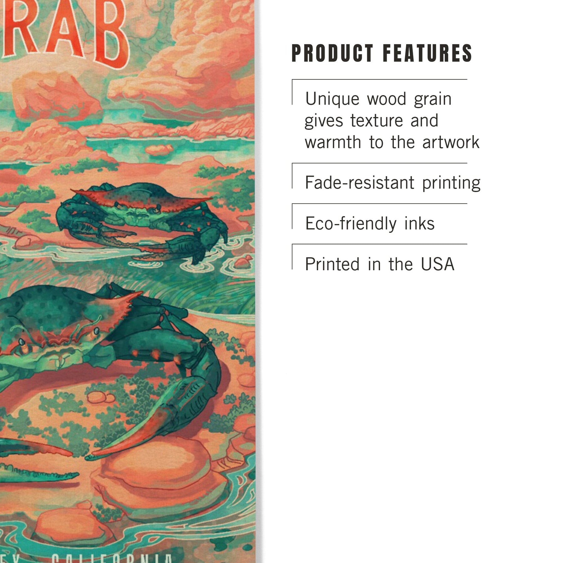 Monterey, California, Fluid Linework, Crab, Wood Signs and Postcards Wood Lantern Press