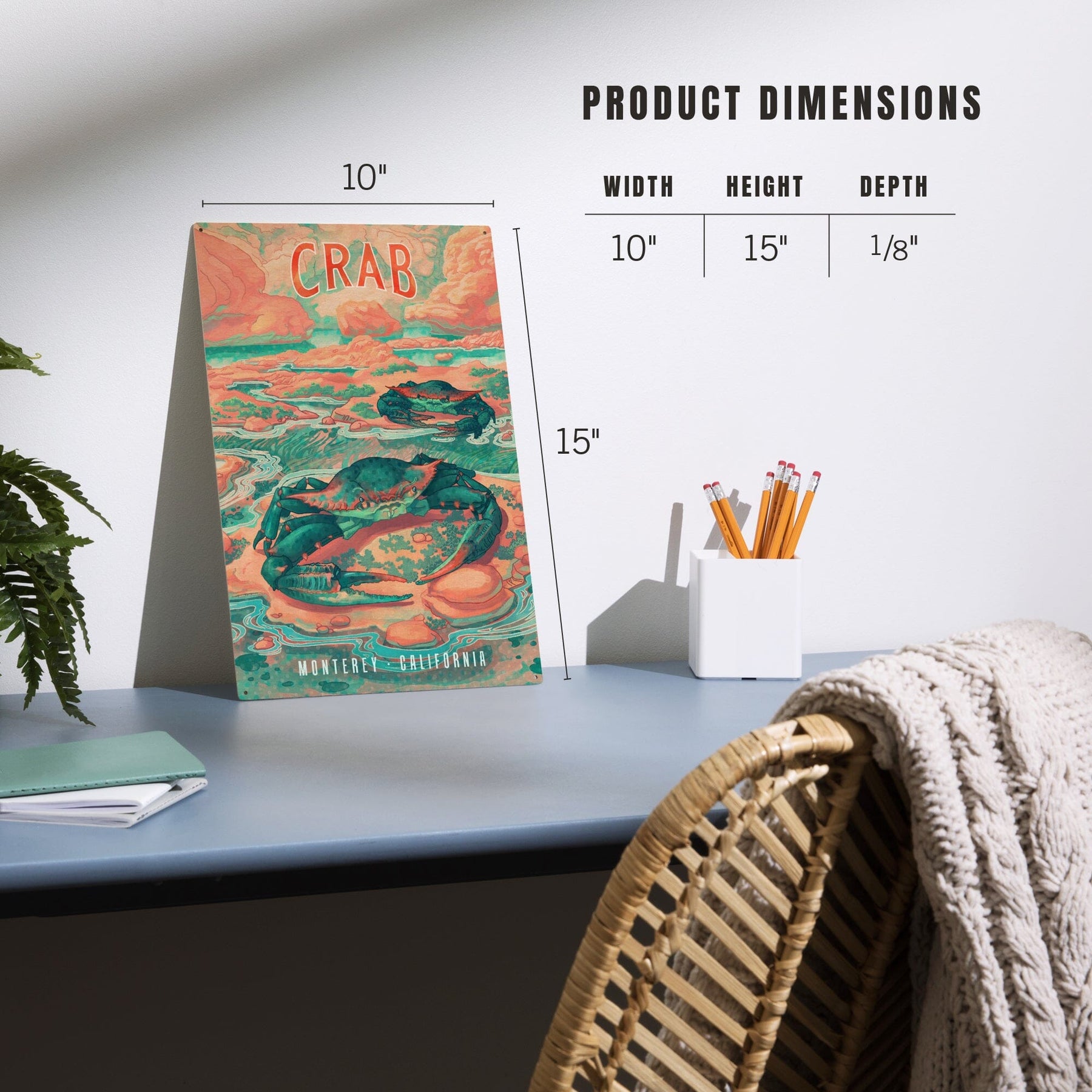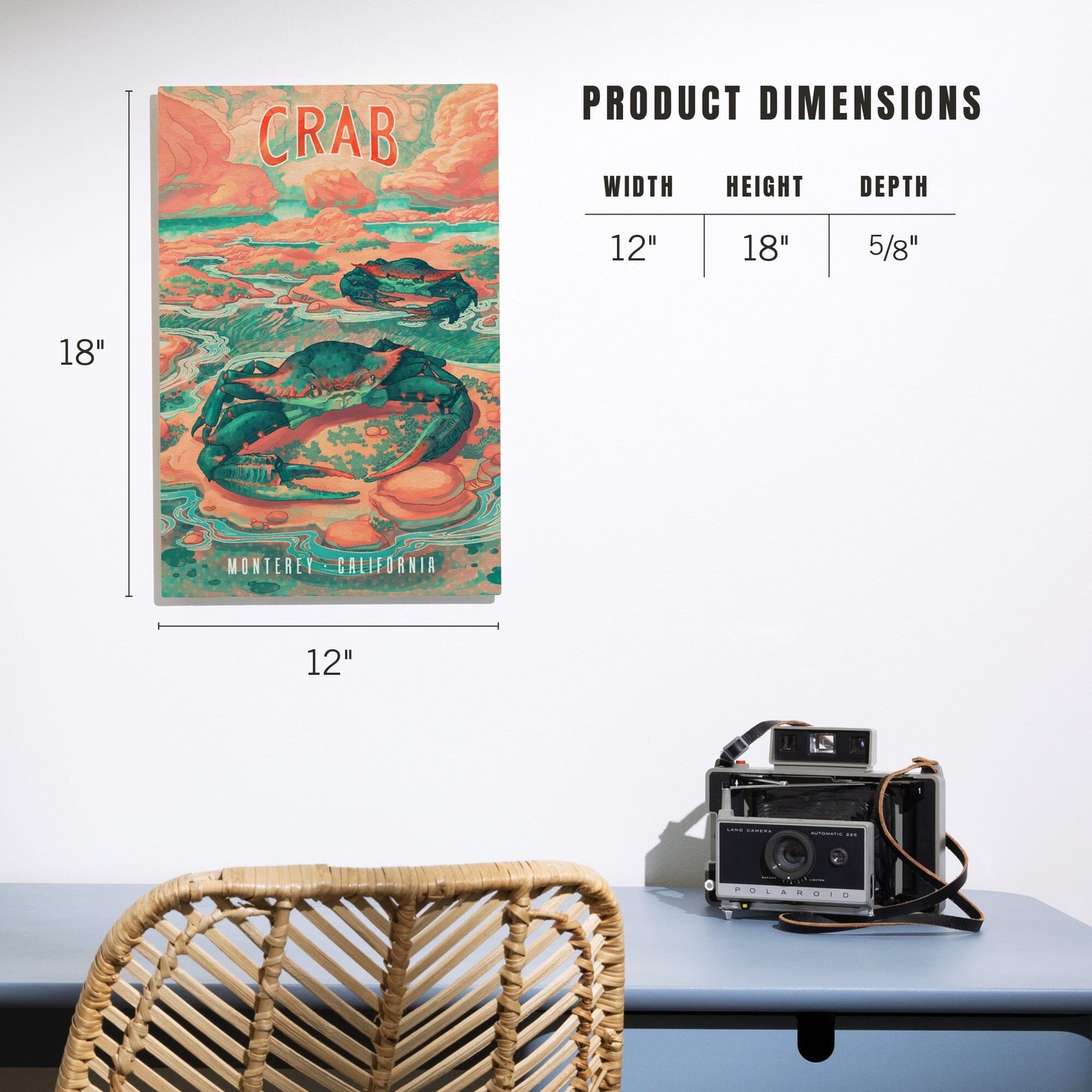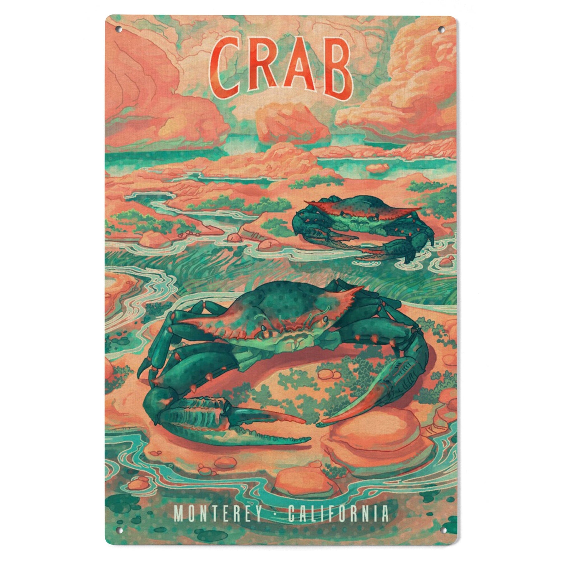 Monterey, California, Fluid Linework, Crab, Wood Signs and Postcards Wood Lantern Press